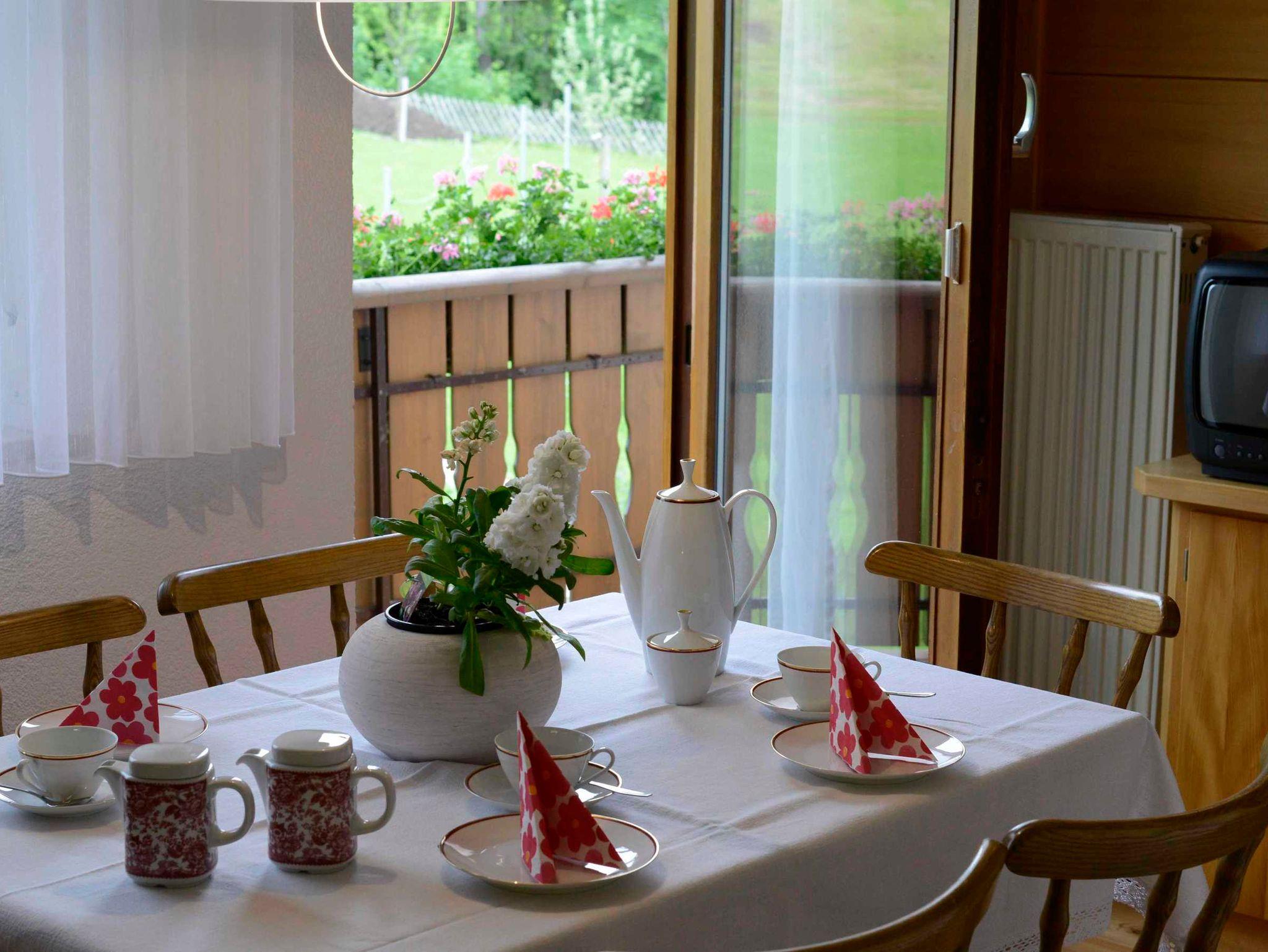 Unsere Wohnungen/Zimmer (20-80qm) sind liebevoll eingerichtet und haben fast alle den wunderschönen Blick auf den Berg Sorgschrofen und die umliegende Winterwelt. Alle Wohnungen/Zimmer verfügen über einen Südbalkon bzw. eine Südterrasse. (Fewo Maiglöckchen hat einen Ostbalkon).