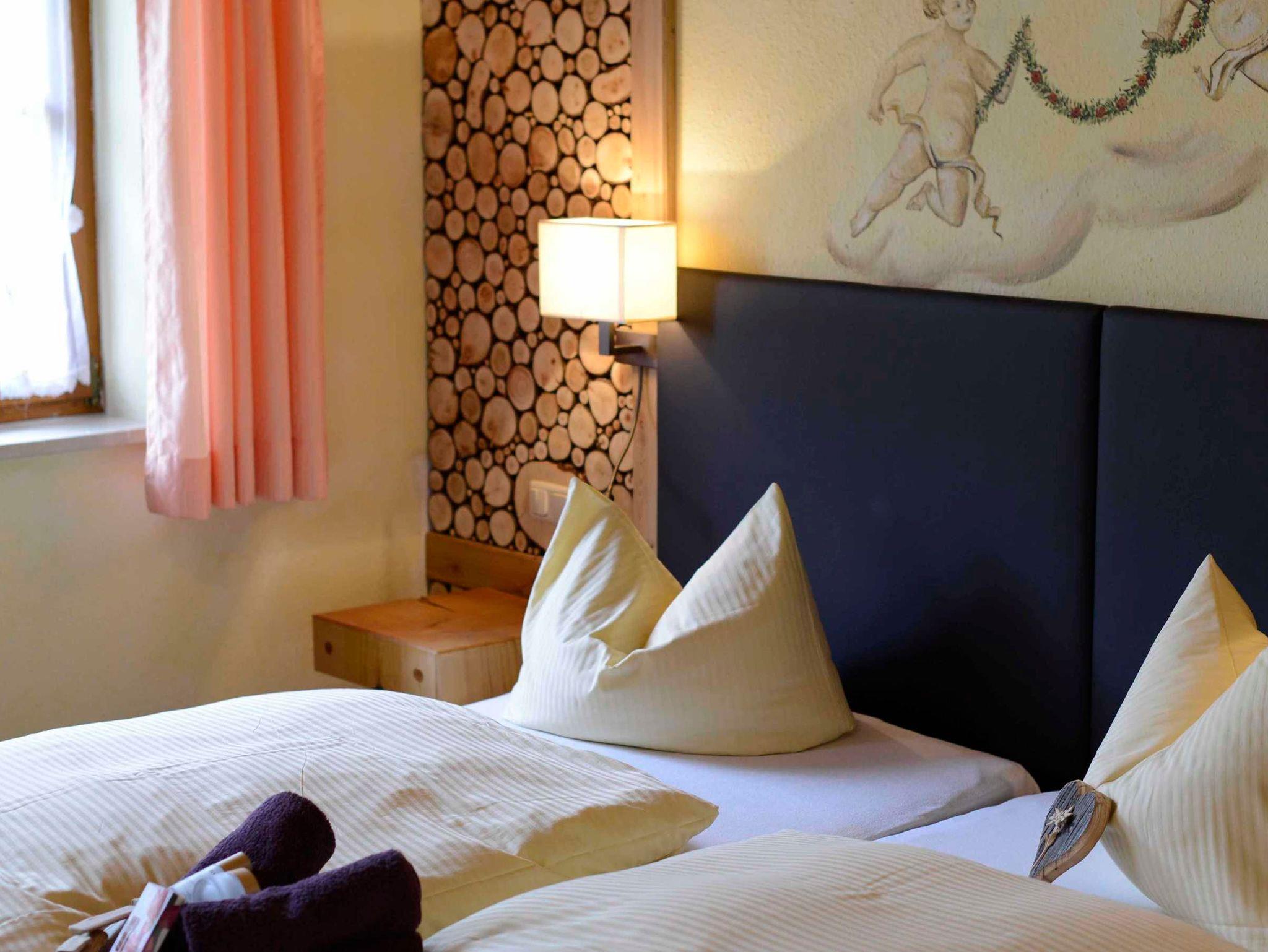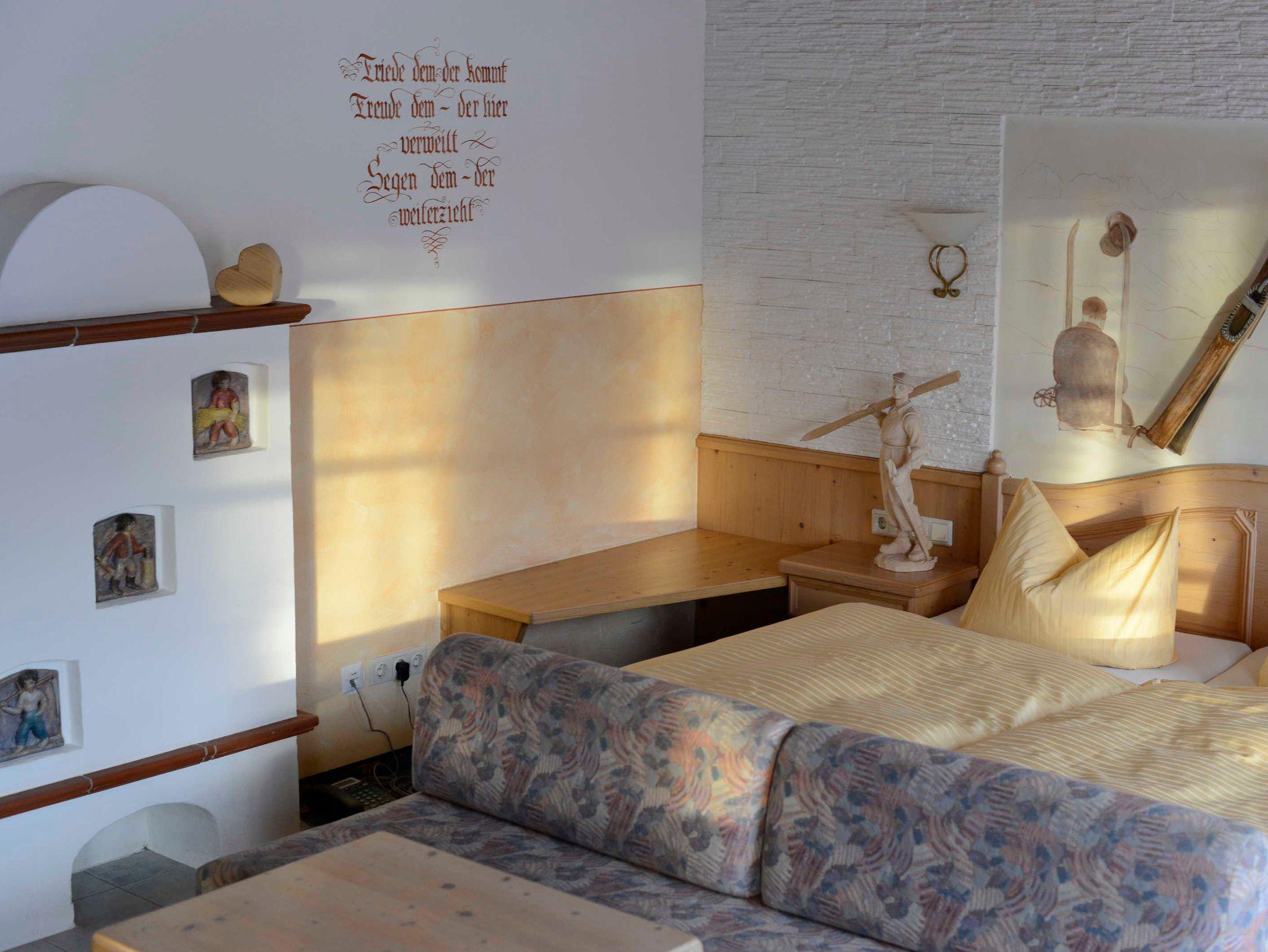 Gemeinsam mit den großen Südbalkonen oder der Südterrasse stehen Ihnen 4 Wohnungen von 50 bis 70 qm für jeweils 2 Personen zur Verfügung. Nach Voranmeldung können Sie einen Frühstückskorb mit regionalen und hausgemachten Produkten bestellen. Einen besonderen Akzent setzen die vielen Wandmalereien und Holzschnitzarbeiten, einzigartig in Jungholz. Gemütliche Zierkachelöfen runden das Ambiente ab.