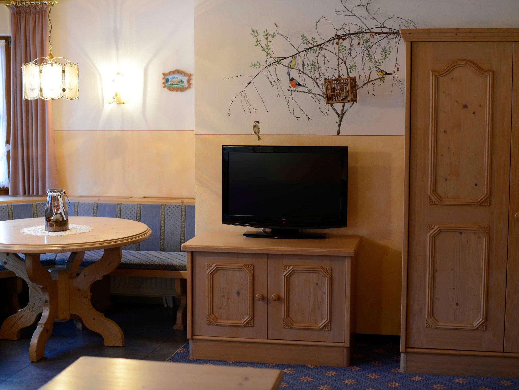 Geschmackvolle Naturmöbel und farblich aufeinander abgestimmte Stoffe und Bodenbeläge bestimmen das einladende Ambiente. Ganz neu ist unser gemütlicher Zierkachelofen. DVD-Player und großer Flat-TV mit Sat-Empfang machen die Unterhaltung noch angenehmer. Der möblierter Sonnenbalkon mit Rundumsicht in die Bergwelt läßt Urlaubsherzen höher schlagen.