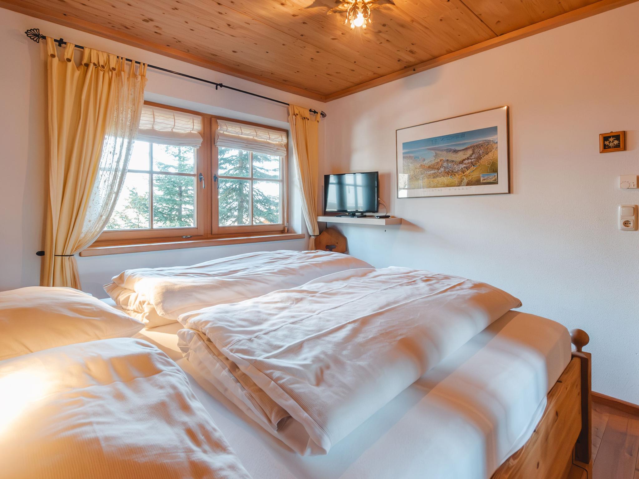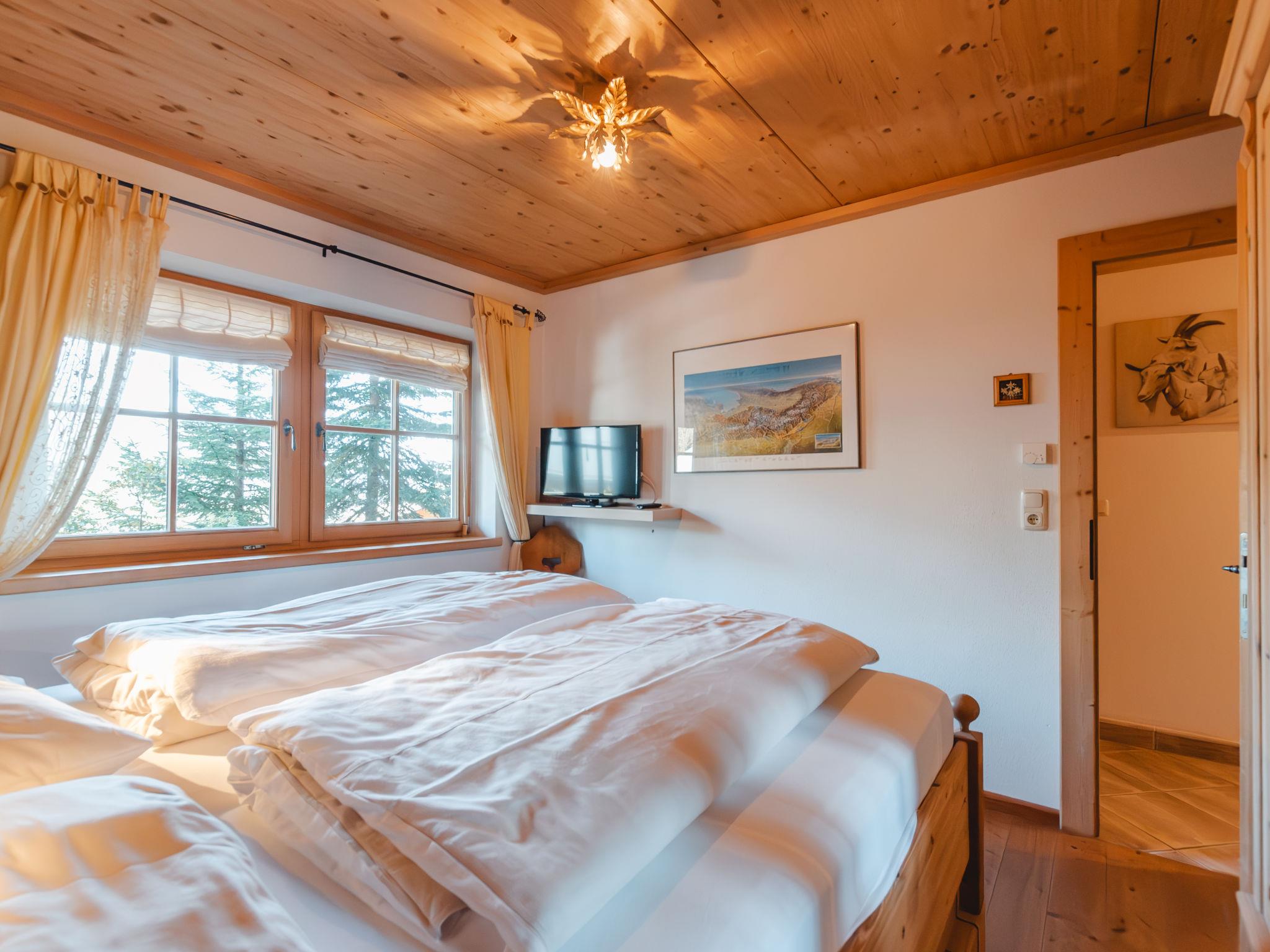 6-room house 110 m2. Luxurious and wooden furniture furnishings: 2 double bedrooms, each room with flat screen. 1 double bedroom with cable TV. Bath/WC, sep. WC. Upper floor: 1 double bedroom with hand-basin, Hammam-Shower and flat screen. Large living/dining room with open-hearth fireplace and cable TV (flat screen), video and radio. Exit to the balcony. Large, open kitchen (oven, dishwasher, 4 ceramic glass hob hotplates, microwave, freezer) with dining nook. Shower/WC. Top floor: 1 room with sloping ceilings with 2 beds (110 cm, length 200 cm). Large balcony, large terrace 120 m2, 2 small terraces. Barbecue, deck chairs. Beautiful view of the mountains. Facilities: washing machine, dryer, children's high chair, hair dryer. Internet (WiFi, free). Parking. Please note: non-smokers only. Smoke alarm. The luxurious bathroom has a large bathtub. 50626-006179-2020