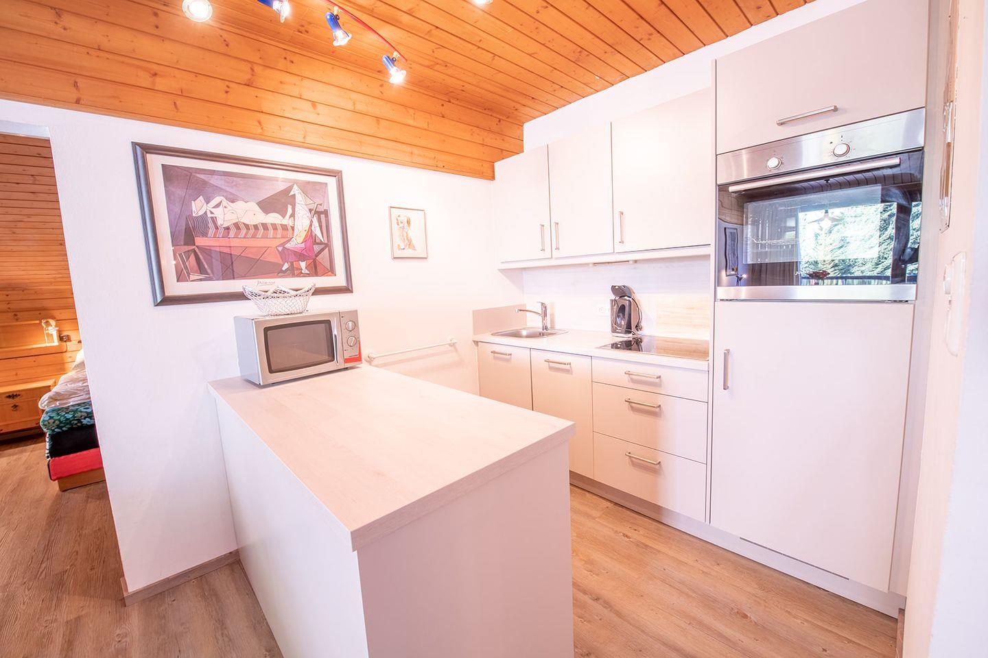 1 Wohnzimmer mit Kabel-TV, Radio und Schlafcouch gemütlicher Sitzecke. Neue Einbauküche mit Ceranfeld, Backofen, Kaffeemaschine, Mikrowelle, Spülmaschine, Kühlschrank mit Gefrierfach. 1 kl. Schlafzimmer mit 2 Einzelbetten( kleine Betten - 90 x 170 cm), sowie ein gr. Schlafzimmer mit 1 Doppelbett und einem Einzelbett. 1 Badezimmer mit WC und Badewanne.