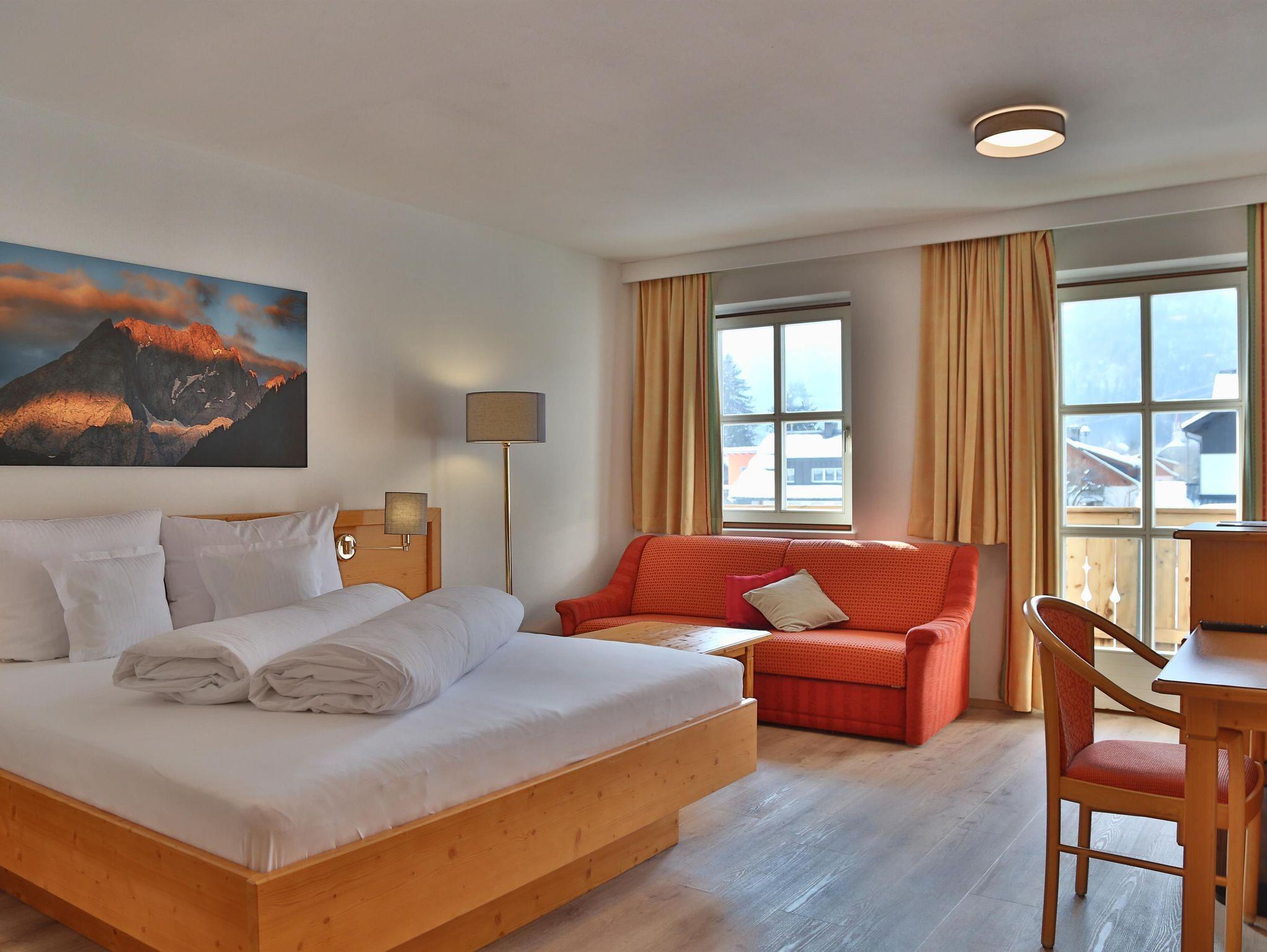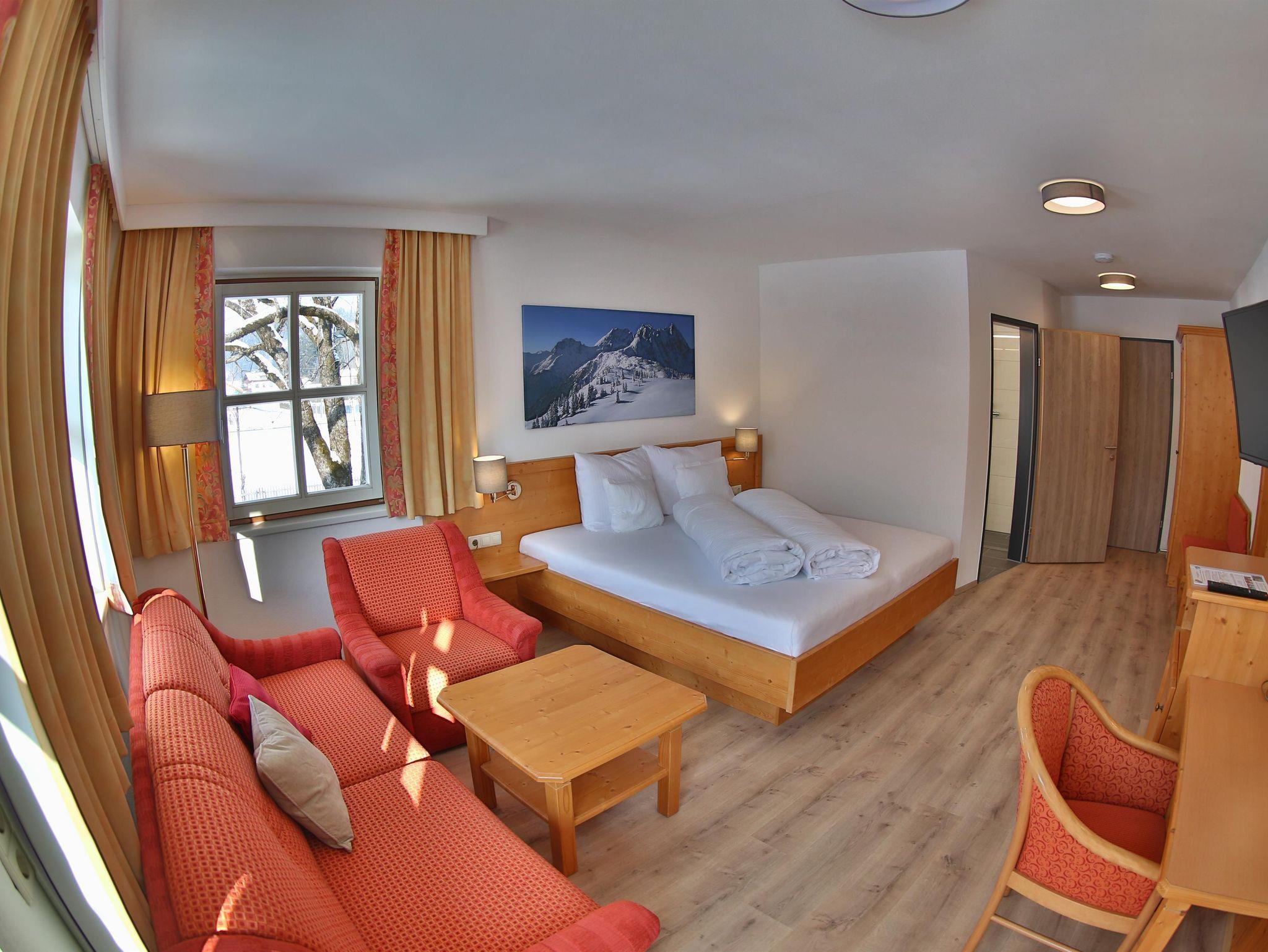 Das Haus wurde im Jahr 2017 total renoviert. Die neu errichteten und sehr geräumigen Zimmer und Apartment sind mit Vollholzmöbel eingerichtet und verfügen über Flachbild-TV, Zimmersafe, Bad mit Dusche, Haarföhn, Kosmetikspiegel, Wohncouch, Schreibtisch und kostenfreies WLAN. Fast alle Zimmer haben einen Balkon mit freiem Blick auf die faszinierende umliegende Bergwelt.