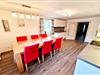 På 1. etage: (Stue(sofahjørne), Køkken(spisebord, komfur, ovn, køleskab), soveværelse(dobbeltseng, Fjernsyn), soveværelse(dobbeltseng, dobbeltsovesofa, Fjernsyn), badeværelse(bruser, håndvask, toilet), toilet(håndvask)) Fjernsyn, kaffemaskine, mikrobølgeovn, opvaskemaskine , varme, terrasse(deles med andre gæster), havemøbler, parkering, Parasol