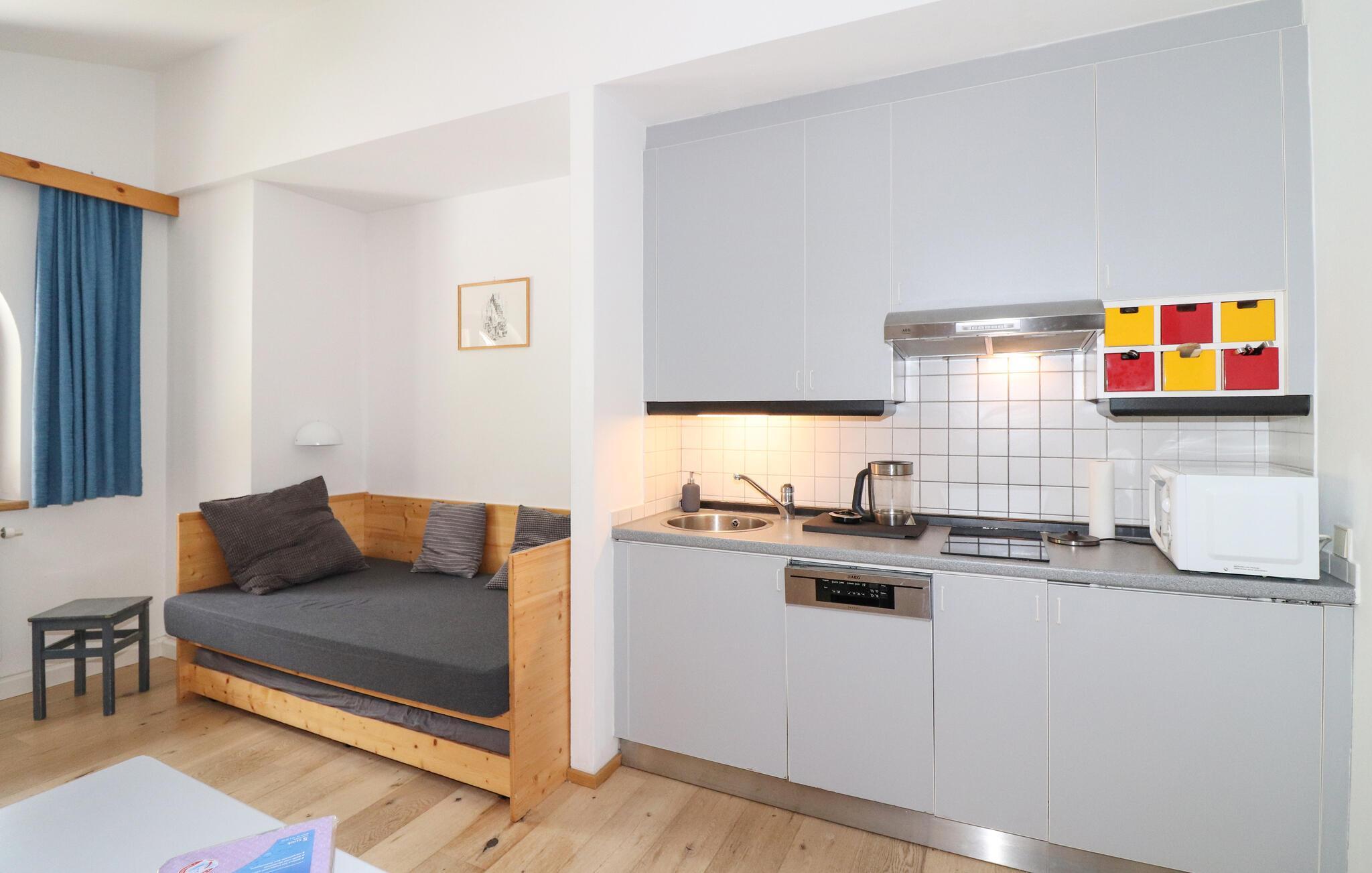 Oplev afslappende dage midt i de tyrolske alper med direkte adgang til naturen og bjergene. Nyd jeres ophold i denne funktionelt indrettede ferielejlighed, beliggende midt i et alpelandskab. Jeres bolig er et ideelt udgangspunkt for både sommer- og vintereventyr. Opholdsstuens siddeområde inviterer jer til at læse, spille spil eller slappe af. Tilbered jeres måltider i tekøkkenet og server dem i den tilstødende spisestue, som tilbyder plads til fælles måltider eller hyggelige aftener foran tv'et. Udnyt husets særlige beliggenhed. Herfra kan I gå til vandrestier eller skiløjper. Det omkringliggende område byder på grønne bjergskråninger, blomstrende alpine enge og klar bjergluft om sommeren og et sneparadis om vinteren. Oplev en række aktiviteter i Kühtai. Vandr til bjergsøer som Finstertal-dammestuen, udforsk alpine højdestier, eller prøv kræfter med klatring. Om vinteren venter perfekt præparerede pister, kælkebakker og langrendsløjper på jer. Oplev bjergenes ro og naturens kraft i et af Østrigs højest beliggende samfund.