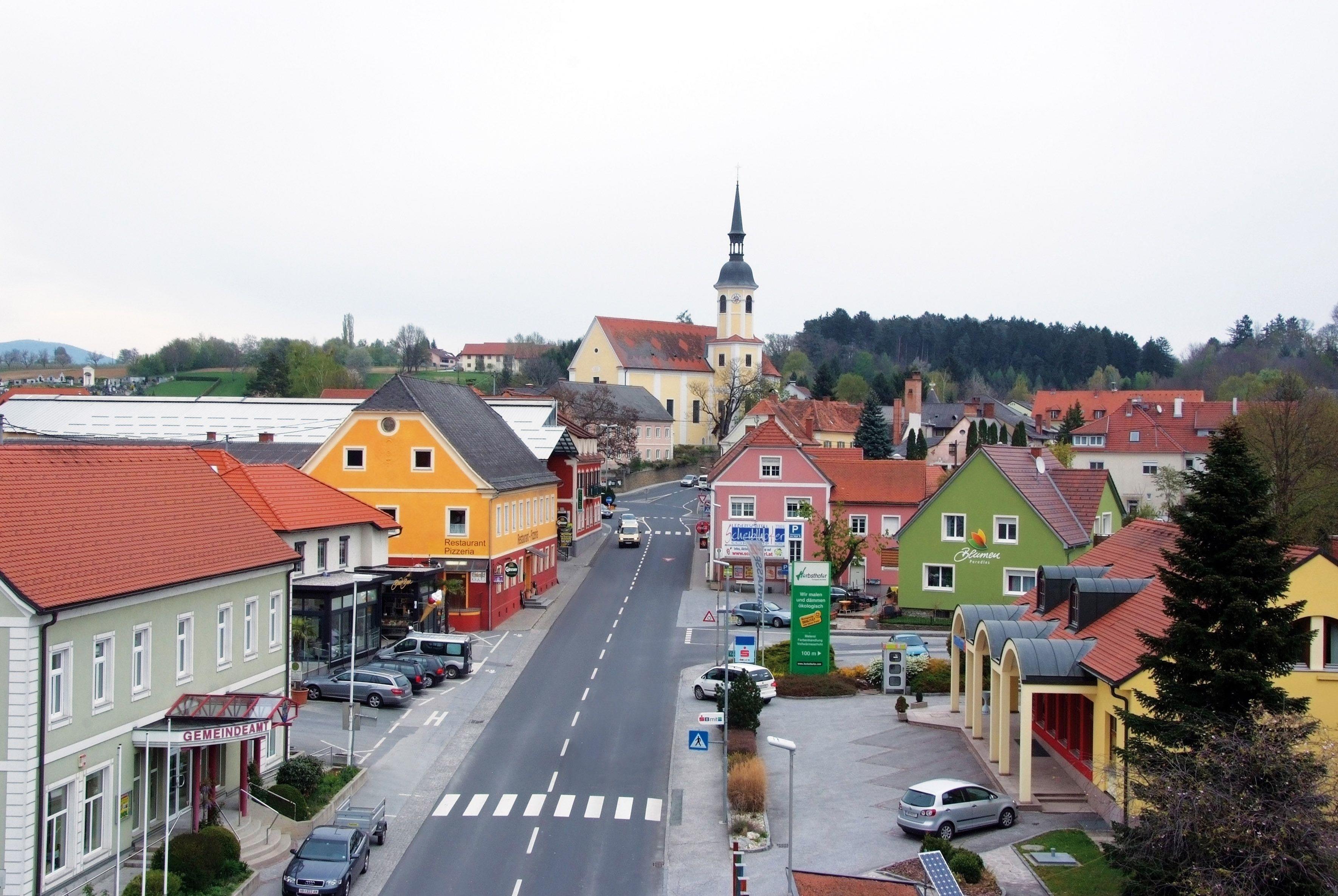 Caffee, Frisör, Spar, Lagerhaus Ölmühle, Tankstelle, Kosmetik, Frisör, Energiebehandlung im Haus, Apotheke, Brillen, Arzt, Post, Schuhgeschäft. In 45 Minuten nach Graz.