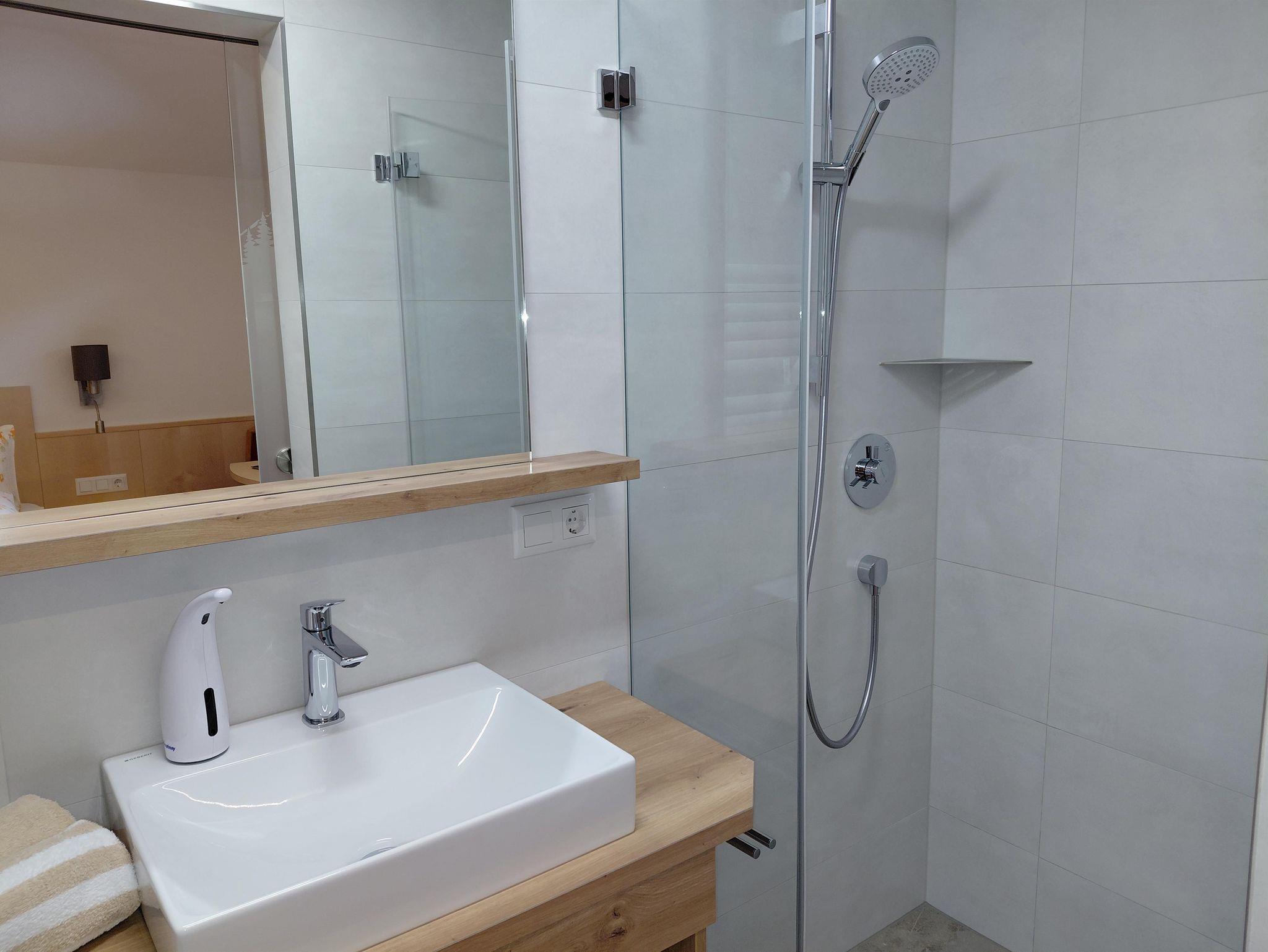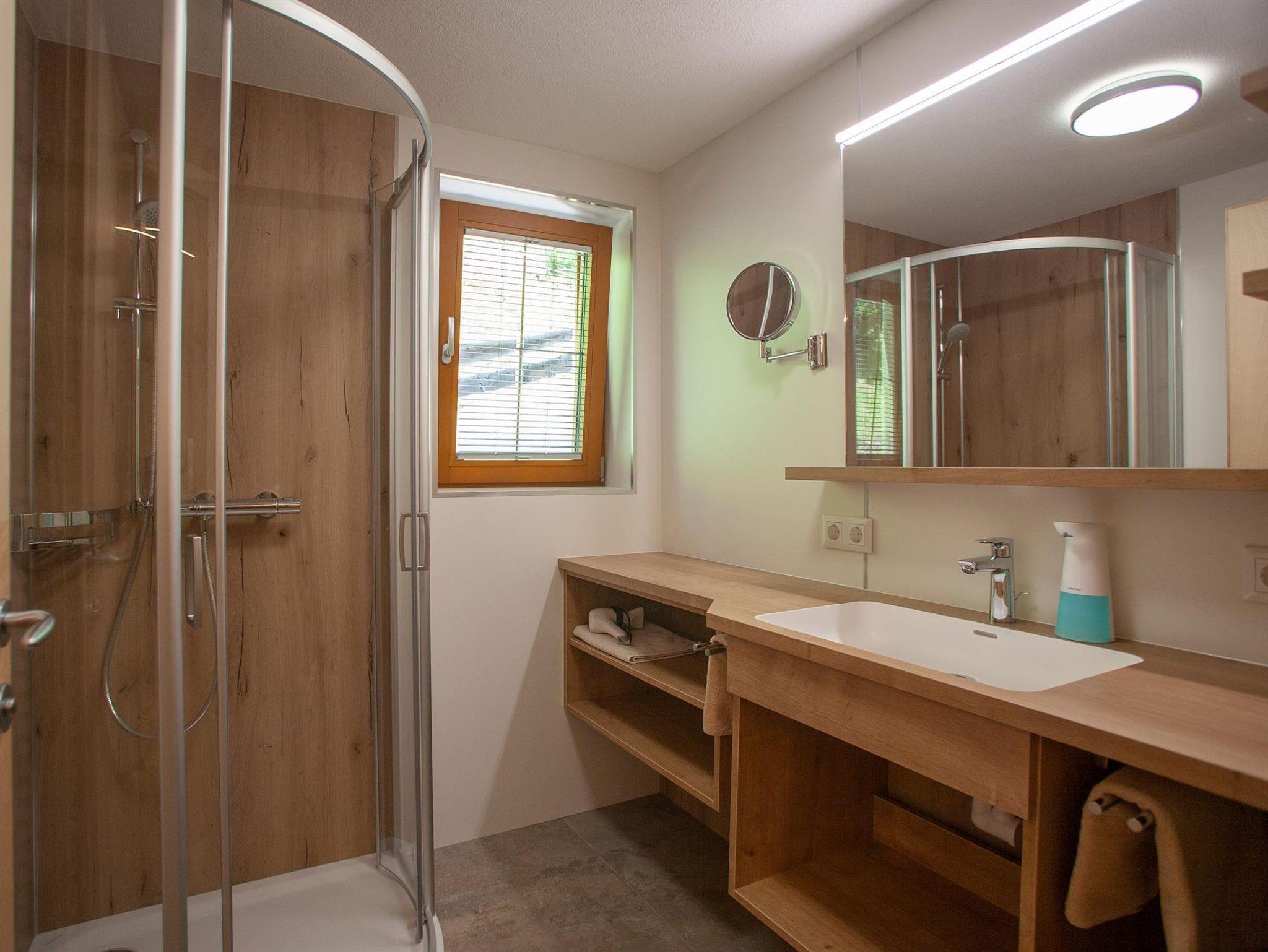 Komplett ausgestattete Nichtraucherferienwohnung Naturblick mit Schlafzimmer, Wohnschlafzimmer, Küchenblock, Badezimmer, WC, Balkon und Sat-TV.