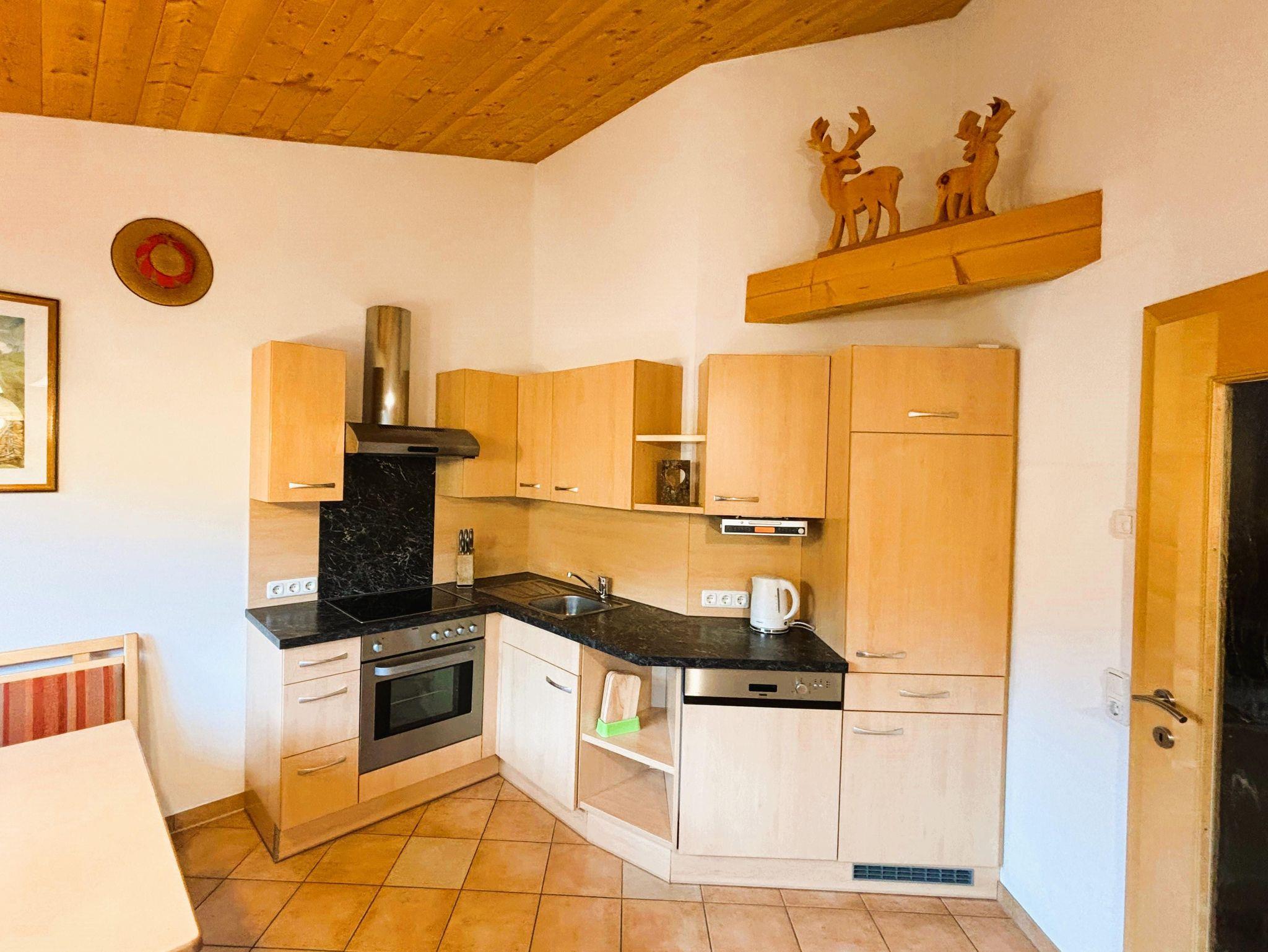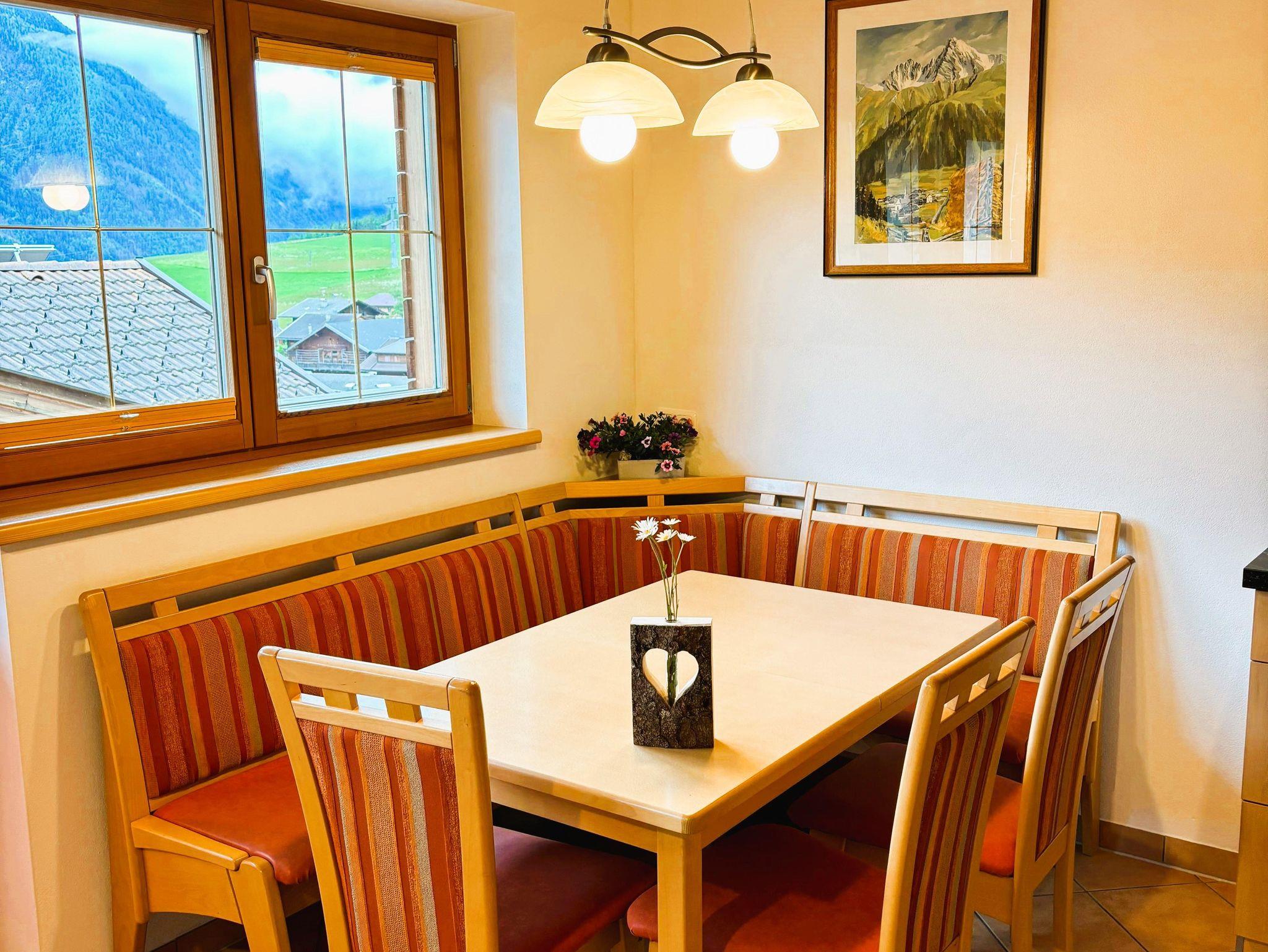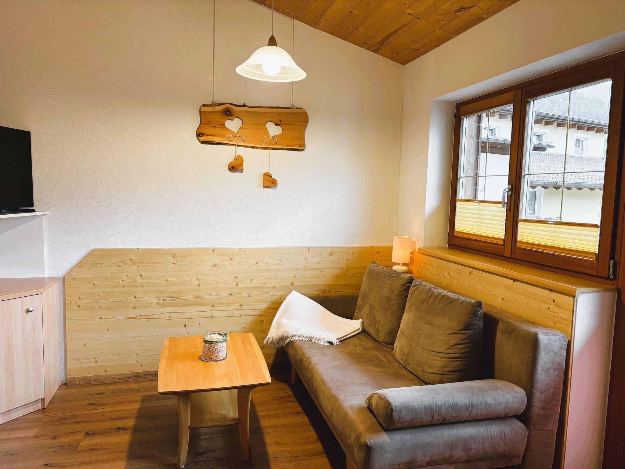 2 Ferienwohnungen für 4 - 6 Personen (60 - 77 m²), zweigeschossig mit zwei geräumigen Schlafzimmern und südseitig gelegenem Balkon mit hohem Ausstattungsstandard. 1 Ferienwohnung für 2-4 Personen (40 m²) mit Einrichtung in Vollholz, Liegewiese und Sonnenterrasse. Ruhige, sonnige Lage in direkter Liftnähe.
