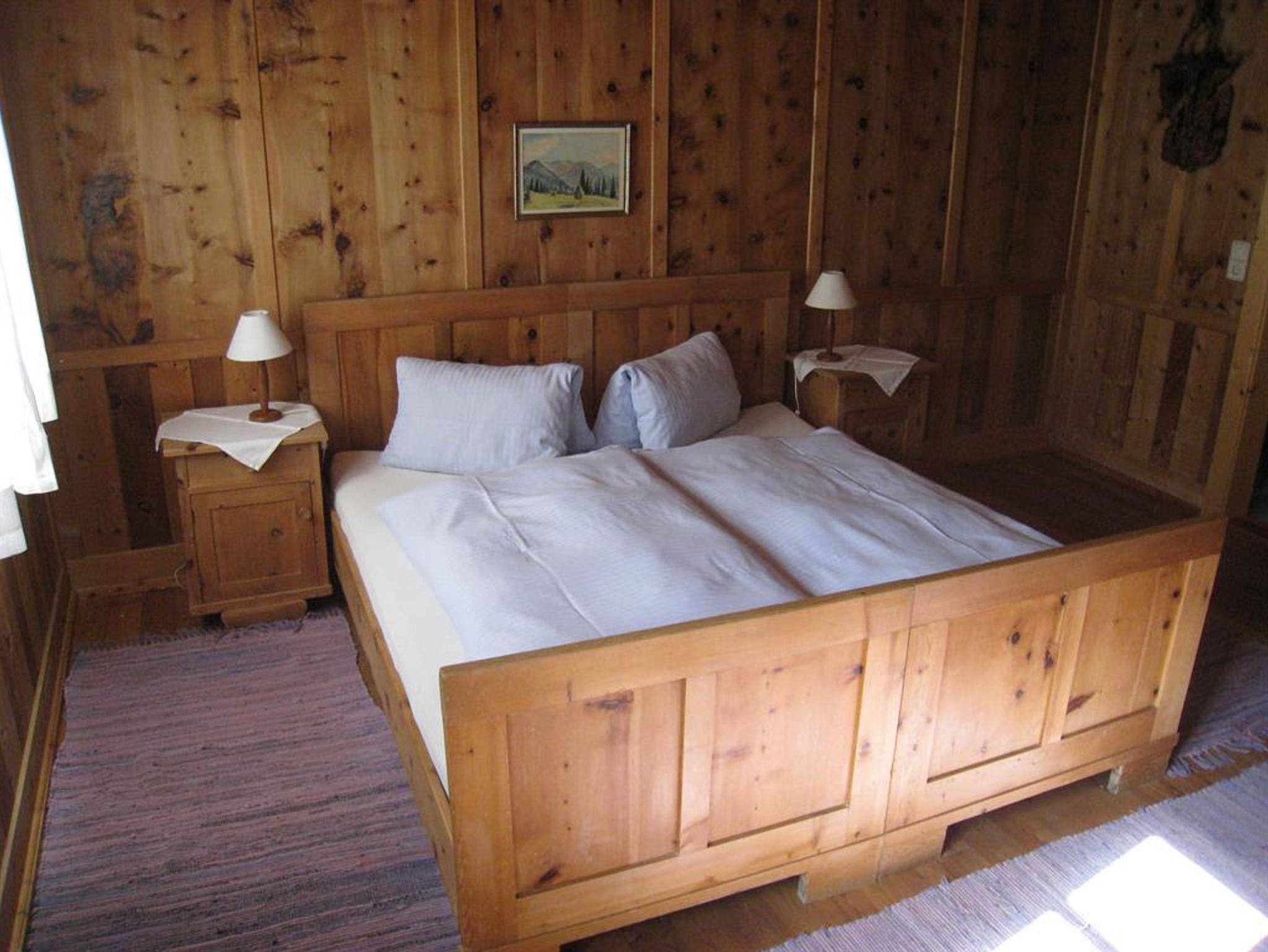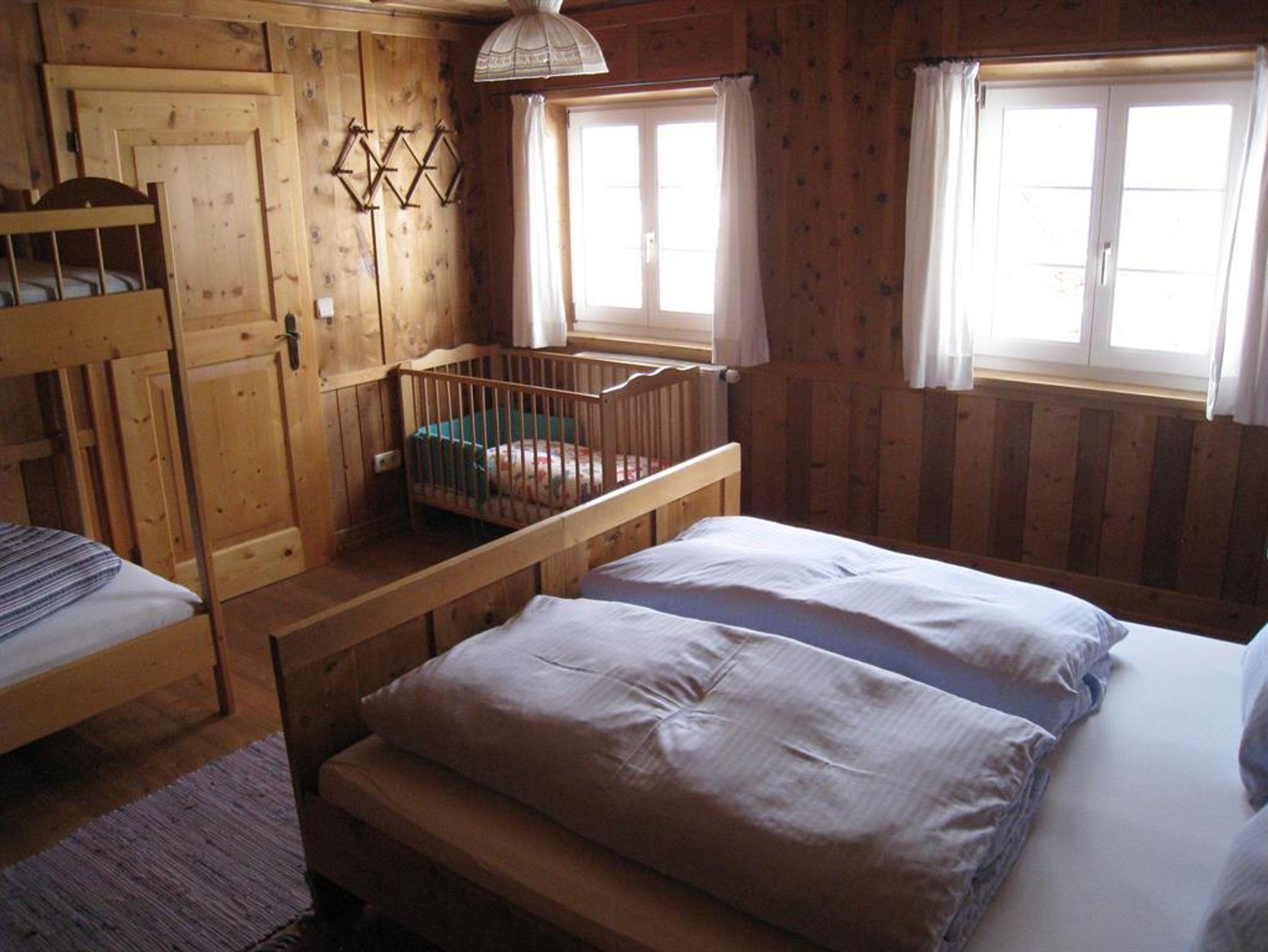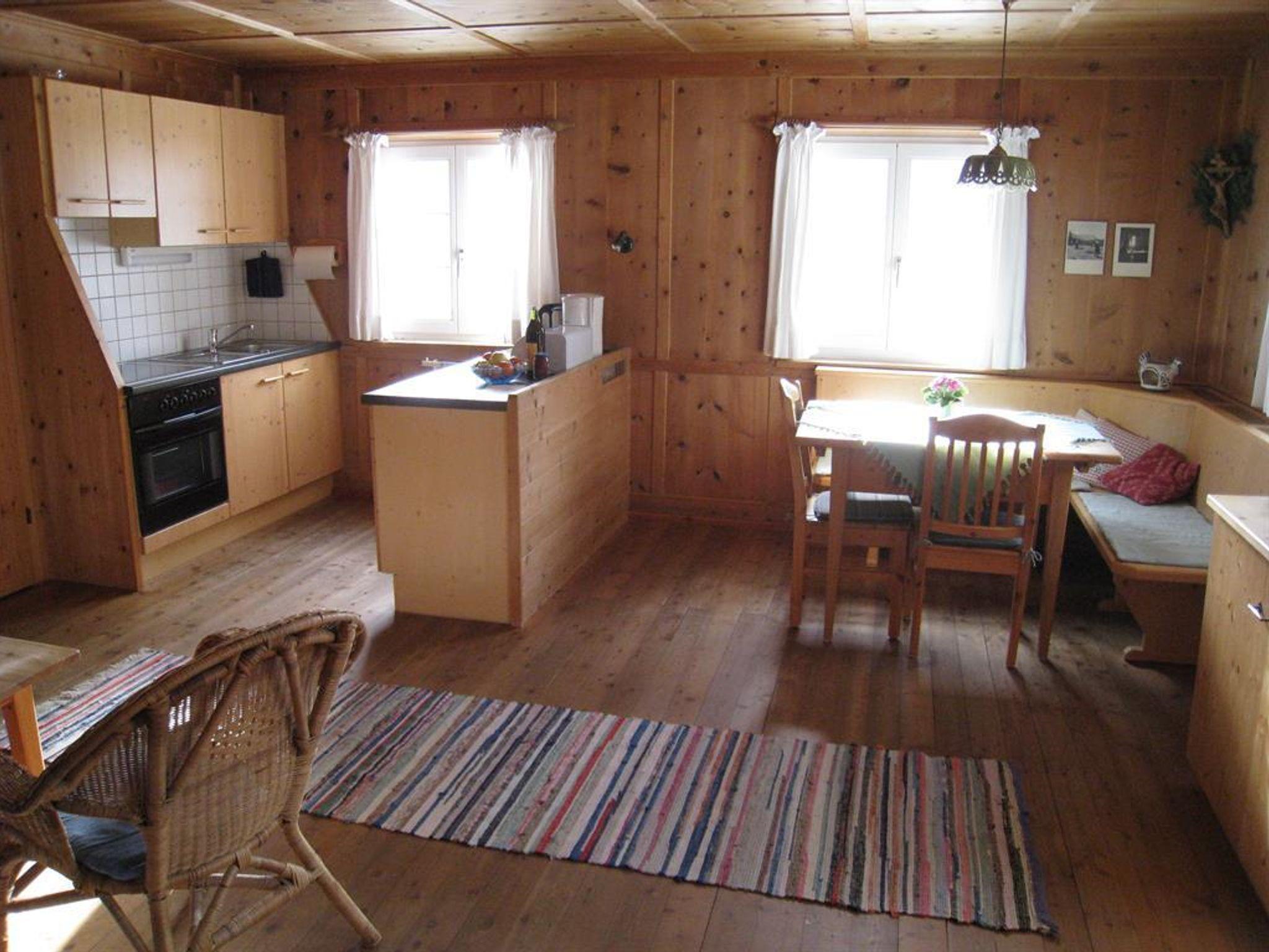 Unsere Wohnungen Blauspitz und Wald liegen im Obergeschoss mit großem Balkon nach Süden und gemütlicher Einrichtung. Alte Zirbengetäfle.