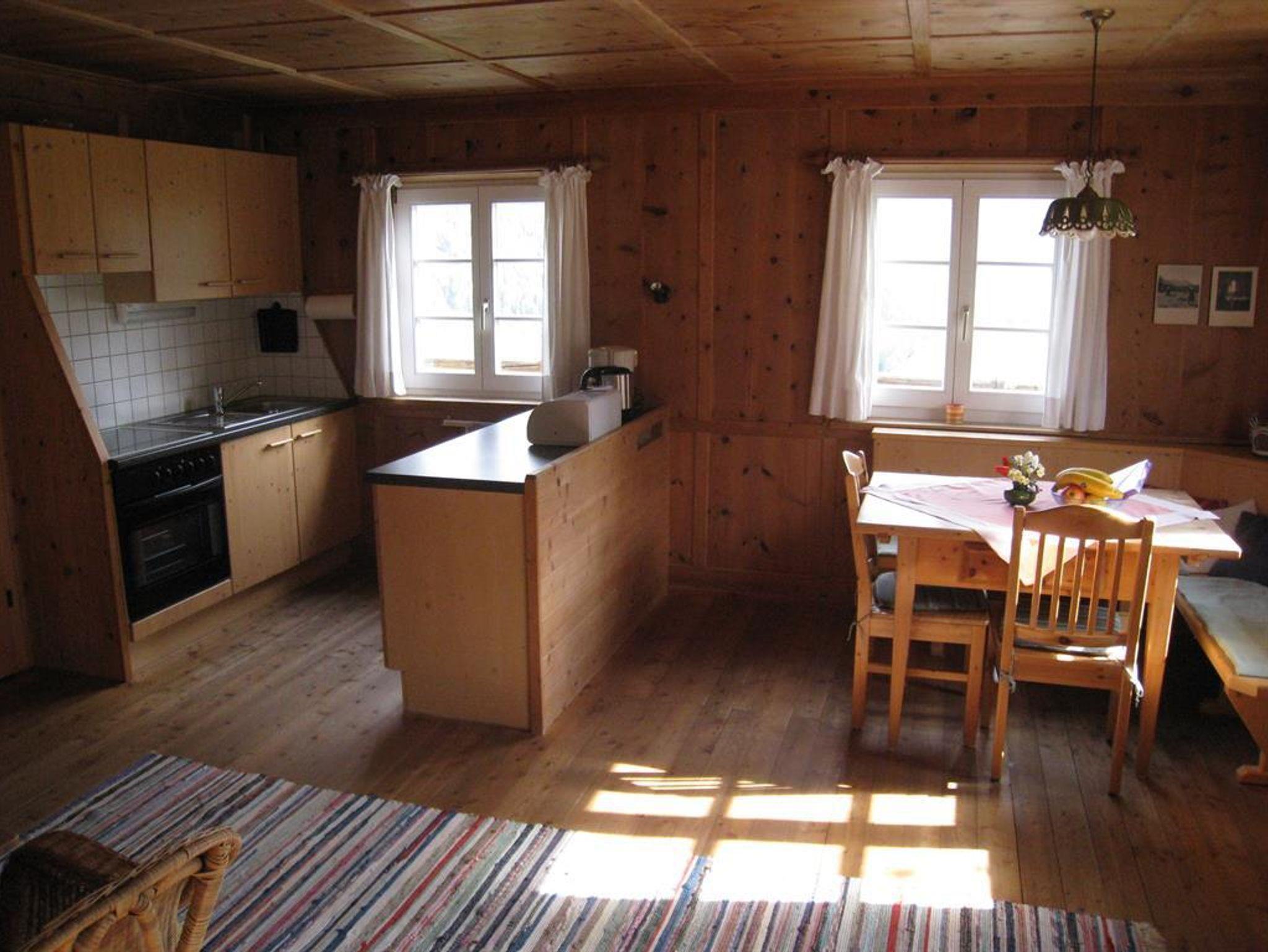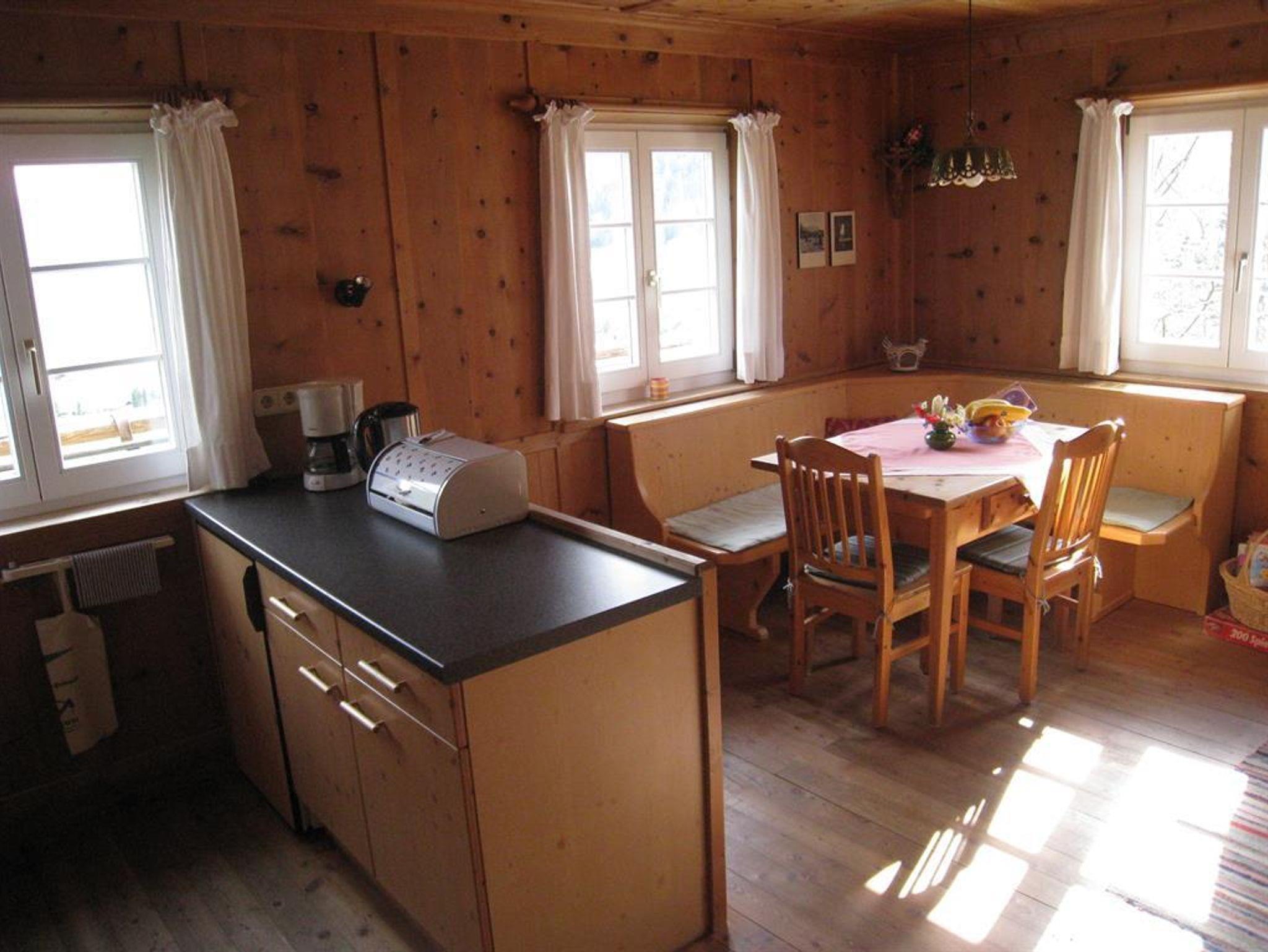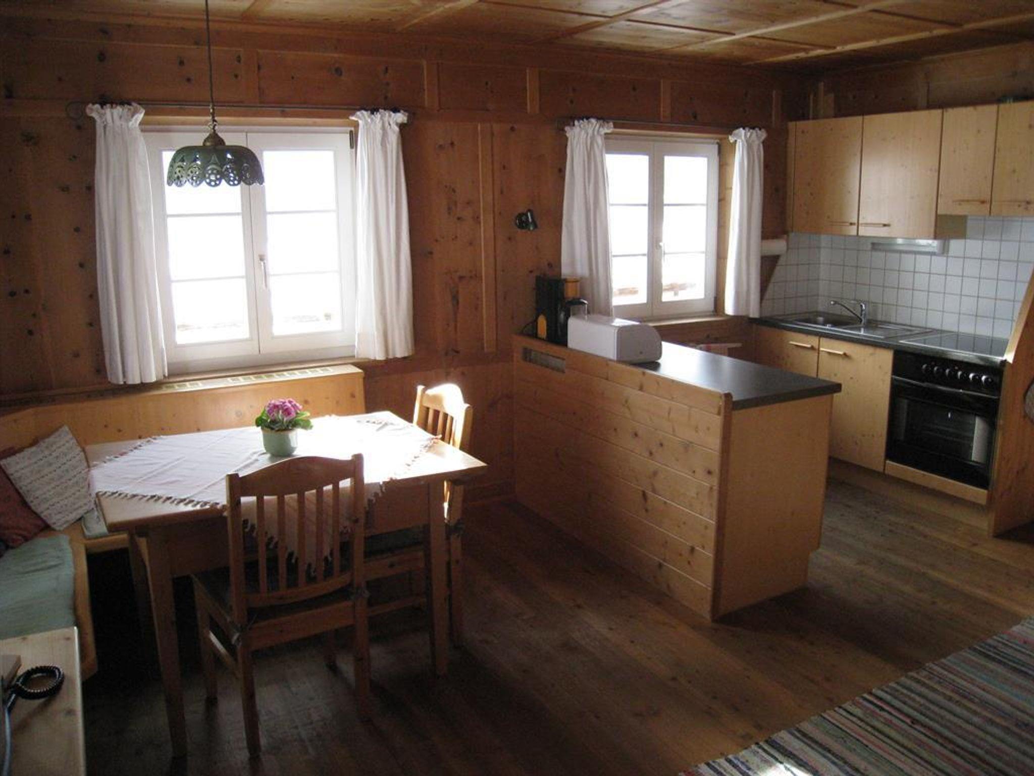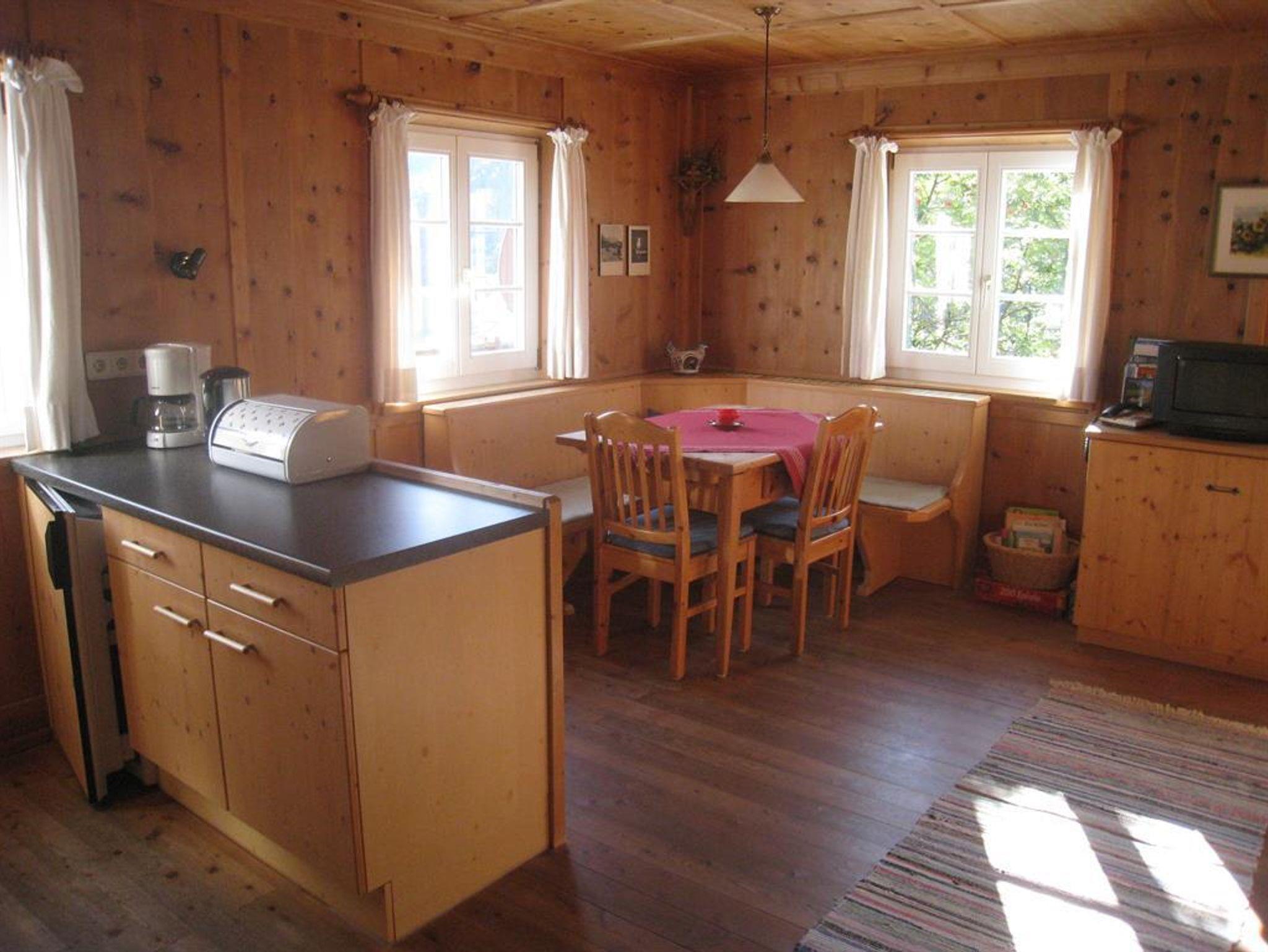 Unsere Wohnungen Blauspitz und Wald liegen im Obergeschoss mit großem Balkon nach Süden und gemütlicher Einrichtung. Alte Zirbengetäfle.