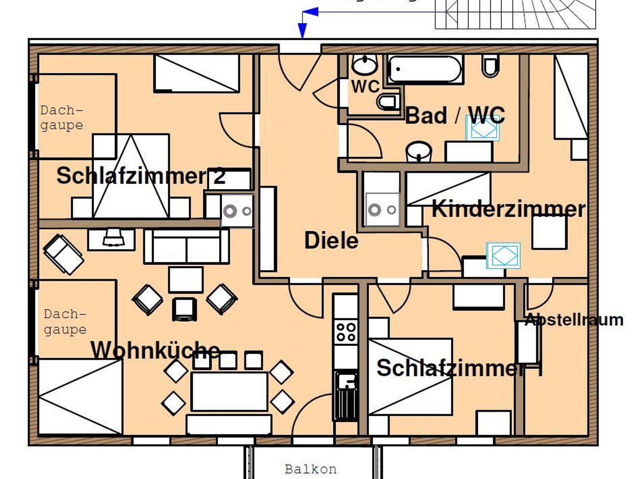 Unsere Wohnung Großfamilie eignet sich ideal für Gruppen und Großfamilienurlaube. Geräumige Wohnung in gemütlicher Atmosphäre.