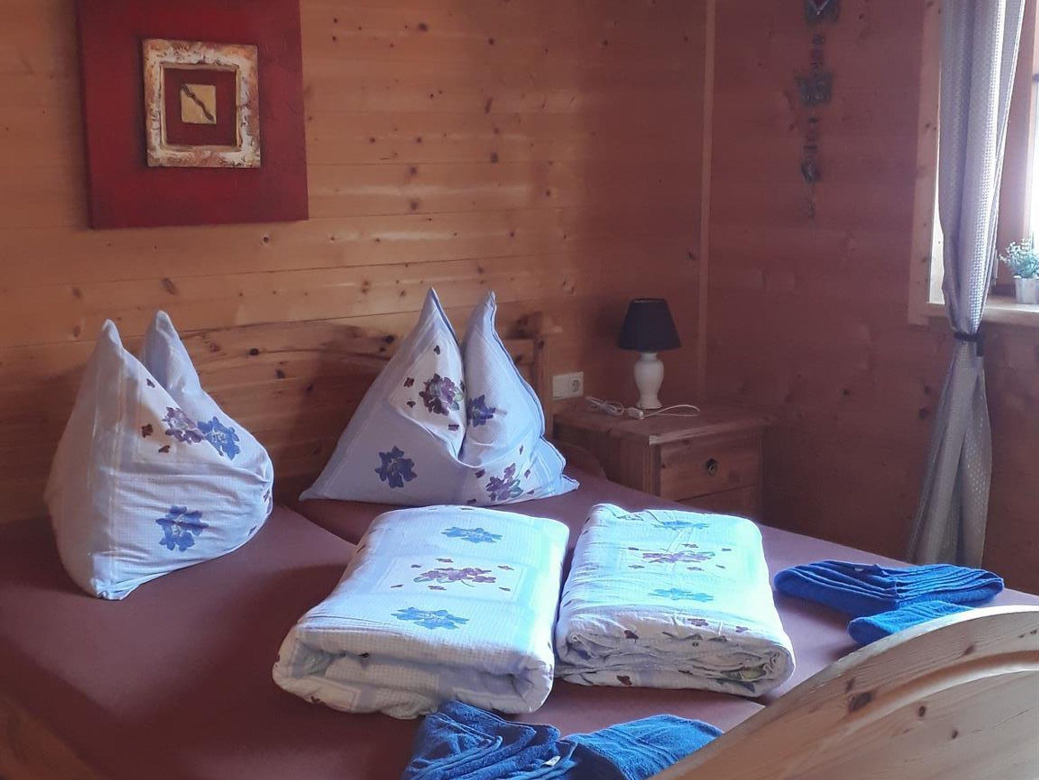 In gemütlicher Holzhausatmosphäre gelegene geräumige Ferienwohnung (95 m²) mit 3 Schlafzimmer, Duschbad mit WC, Gästetoilette, großer Wohn/Essbereich mit vollständig eingerichteter Einbauküche, Liegewiese, TV, Internetanschluß, 3 Balkone.