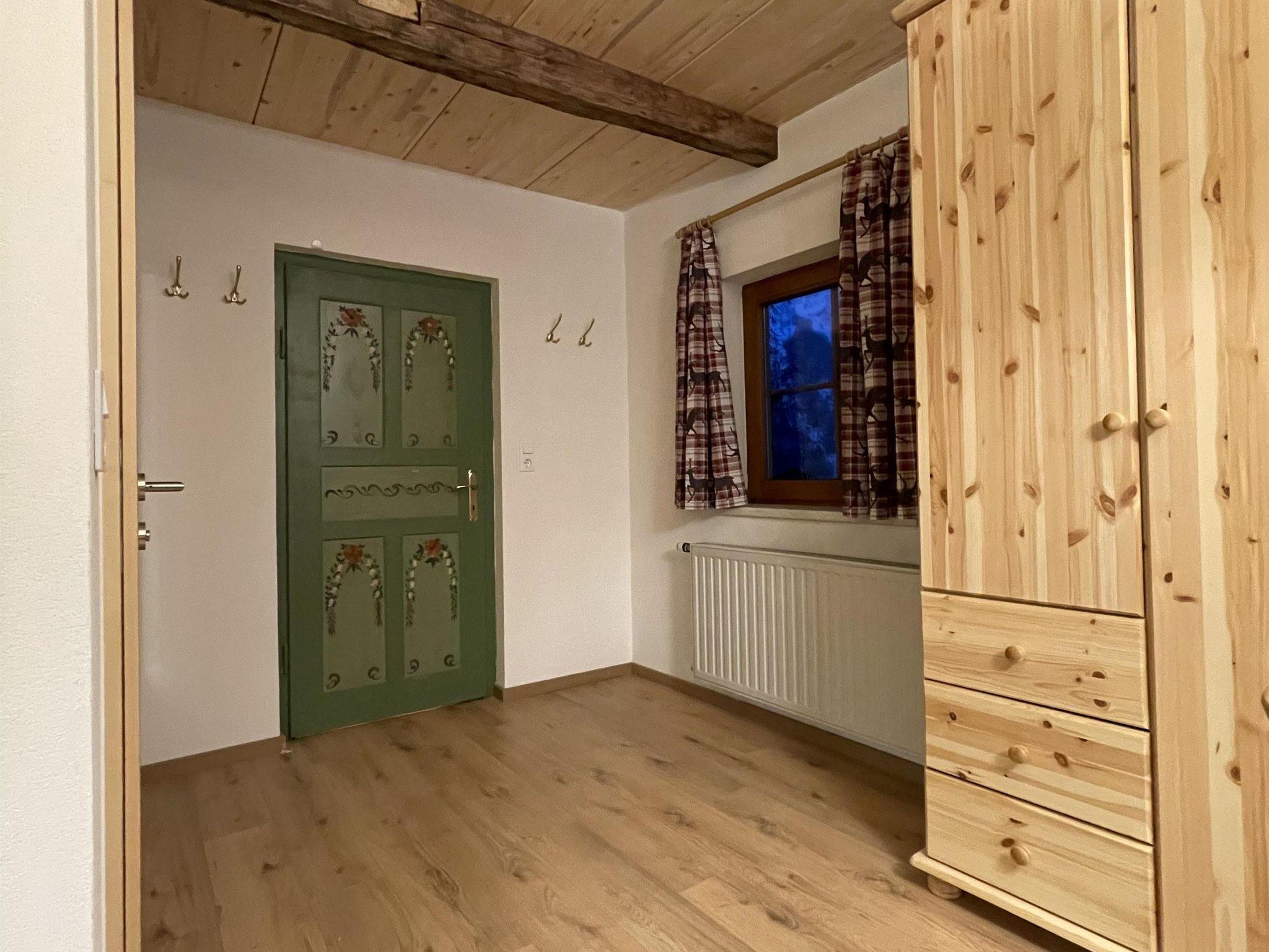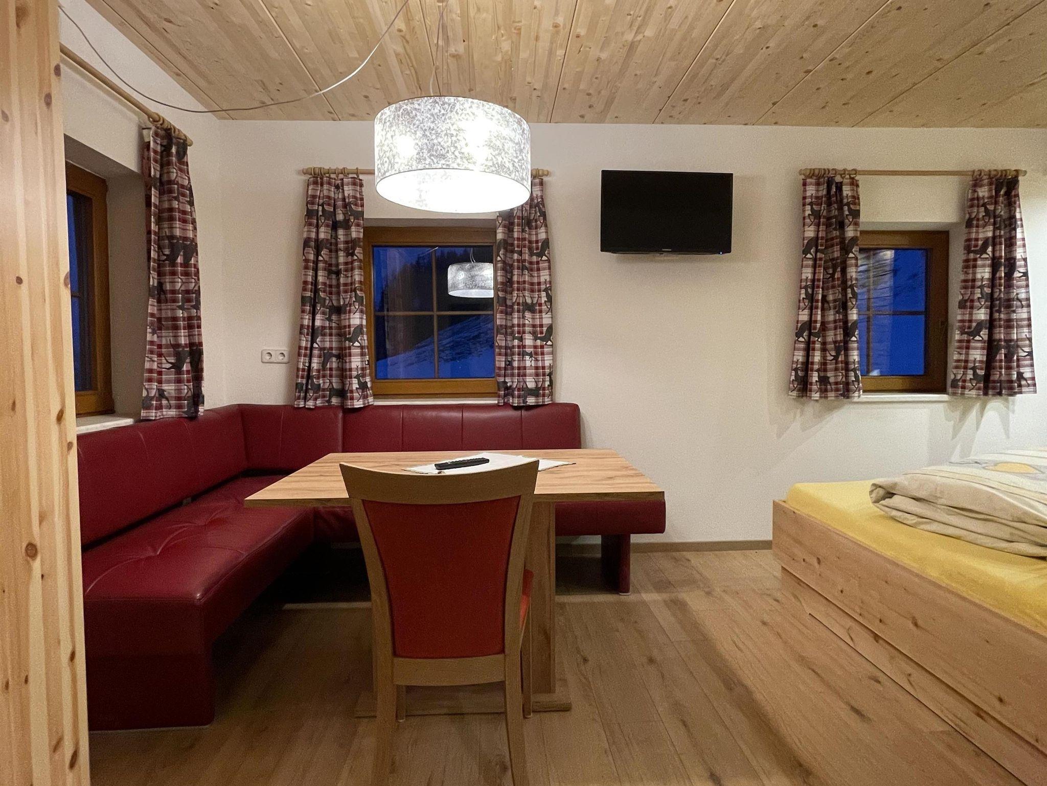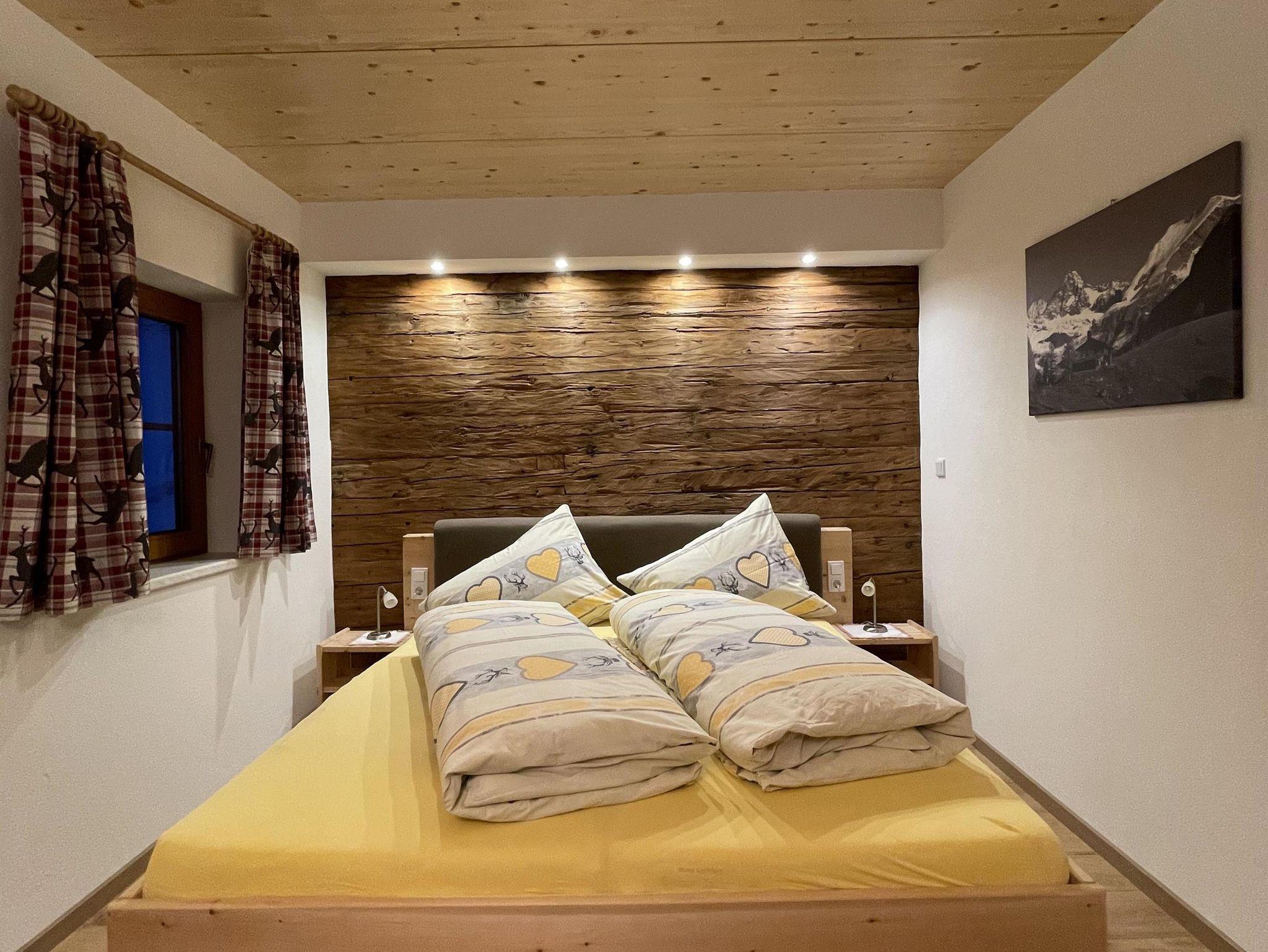 Neu renoviertes Zimmer mit einer Naturbelassener Altholzwand. Verfügt über ein Zirbenbett.