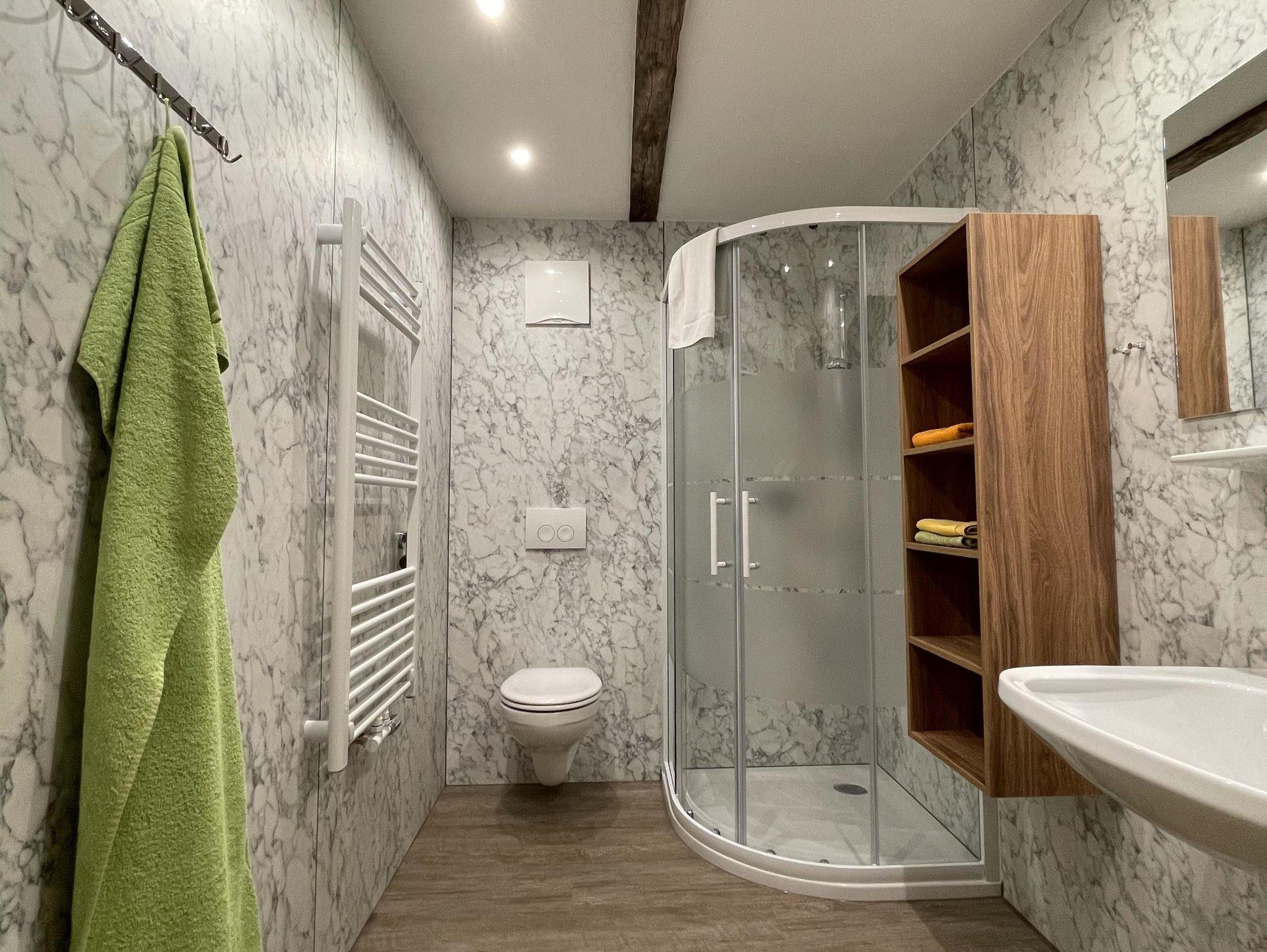 Dusche/WC im Zimmer vorhanden. Fernseher.