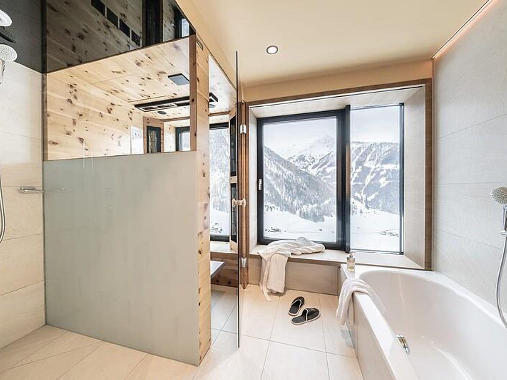 mindestens 55 m² - Panorama InfrarotTiefenwärmekabine, Schlafzimmer und Wohnzimmer getrennt jeweils mit Flatscreen. Espressomaschine und Teekocher, großzügige Badelandschaft mit Badewanne, Dusche und Doppelwaschbecken. Panoramaterrasse mit Liegen