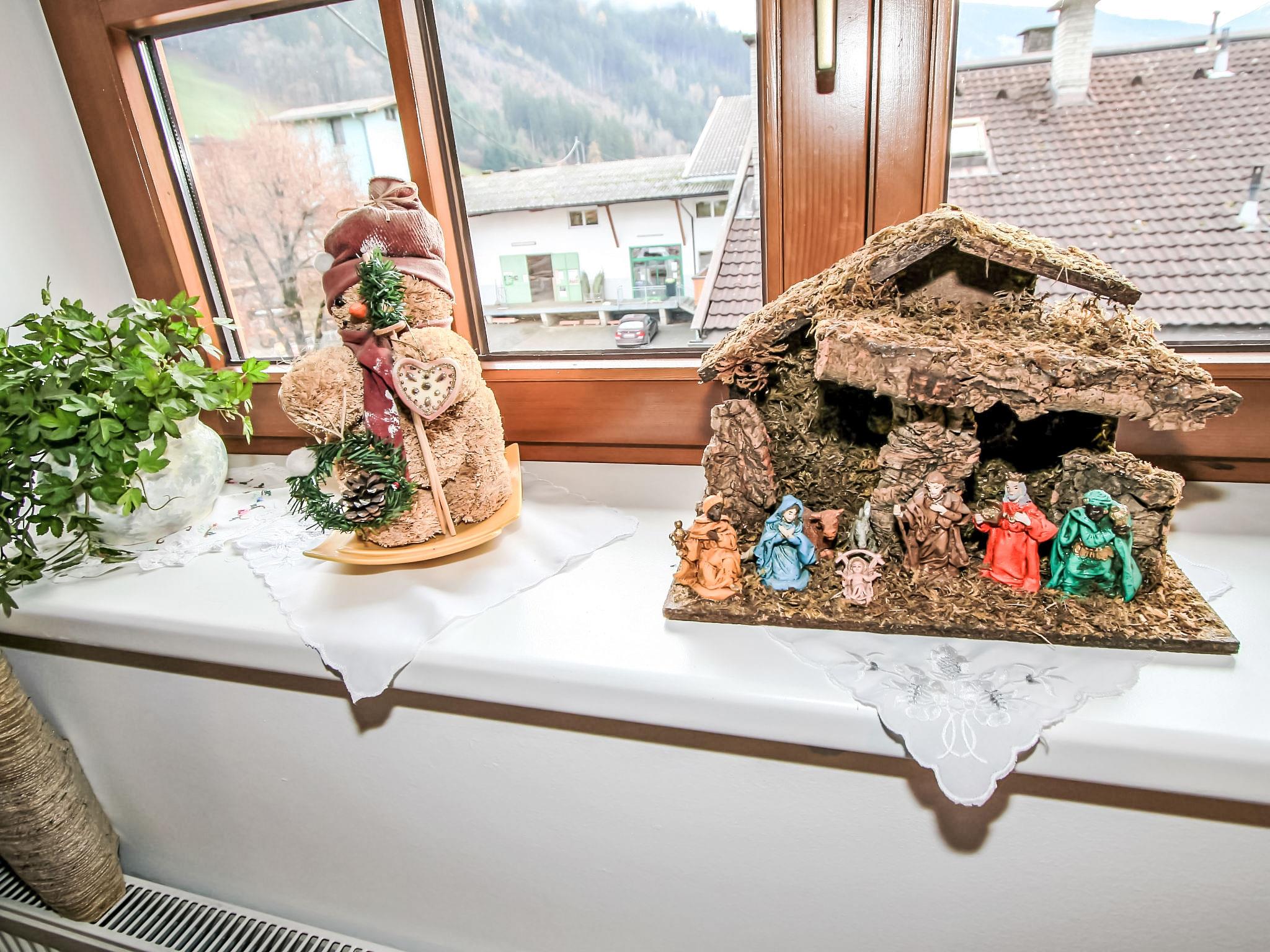 3-room apartment 60 m2 on 2nd floor. Partly with sloping ceilings, rustic and cosy furnishings: entrance hall. 1 double bedroom with hand-basin. Exit to the balcony. Living/sleeping room with 1 double sofabed and satellite TV (flat screen), tiled stove. Kitchen-/living room (oven, dishwasher, 4 ceramic glass hob hotplates, microwave) with 1 sofabed, dining nook and radio. Exit to the balcony. Shower/WC. Balcony. Beautiful view of the mountains. Facilities: Internet (WiFi). 1 closet room. From the living/bedroom you can access the kitchen (through room). Parquet floors.