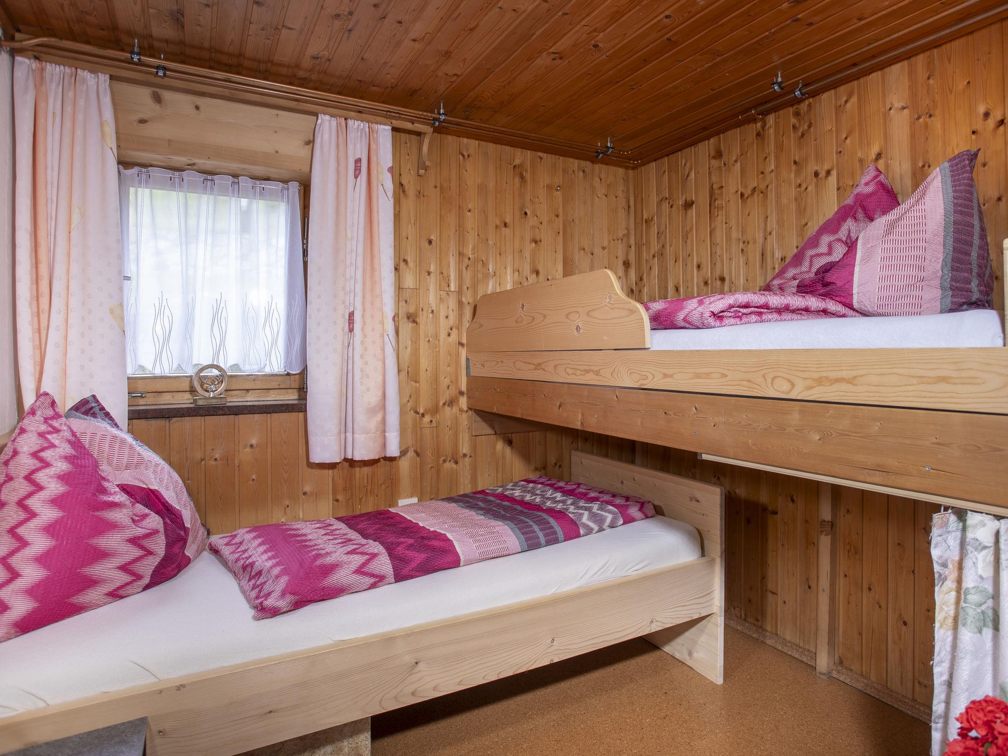 5-room chalet 93 m2 on 2 levels. Simple and cosy furnishings: 1 double bedroom with shower. Living/dining room with dining nook and satellite TV (flat screen), radio. Open kitchen (oven, dishwasher, 4 ceramic glass hob hotplates, microwave). Sep. WC. On the lower ground floor: 2 double bedrooms. 1 small room with 2 beds. Shower, sep. WC. Balcony, terrace roofed. Marvellous view of the mountains and the valley. Please note: maximum 2 pets/ dogs allowed. Smoke alarm.