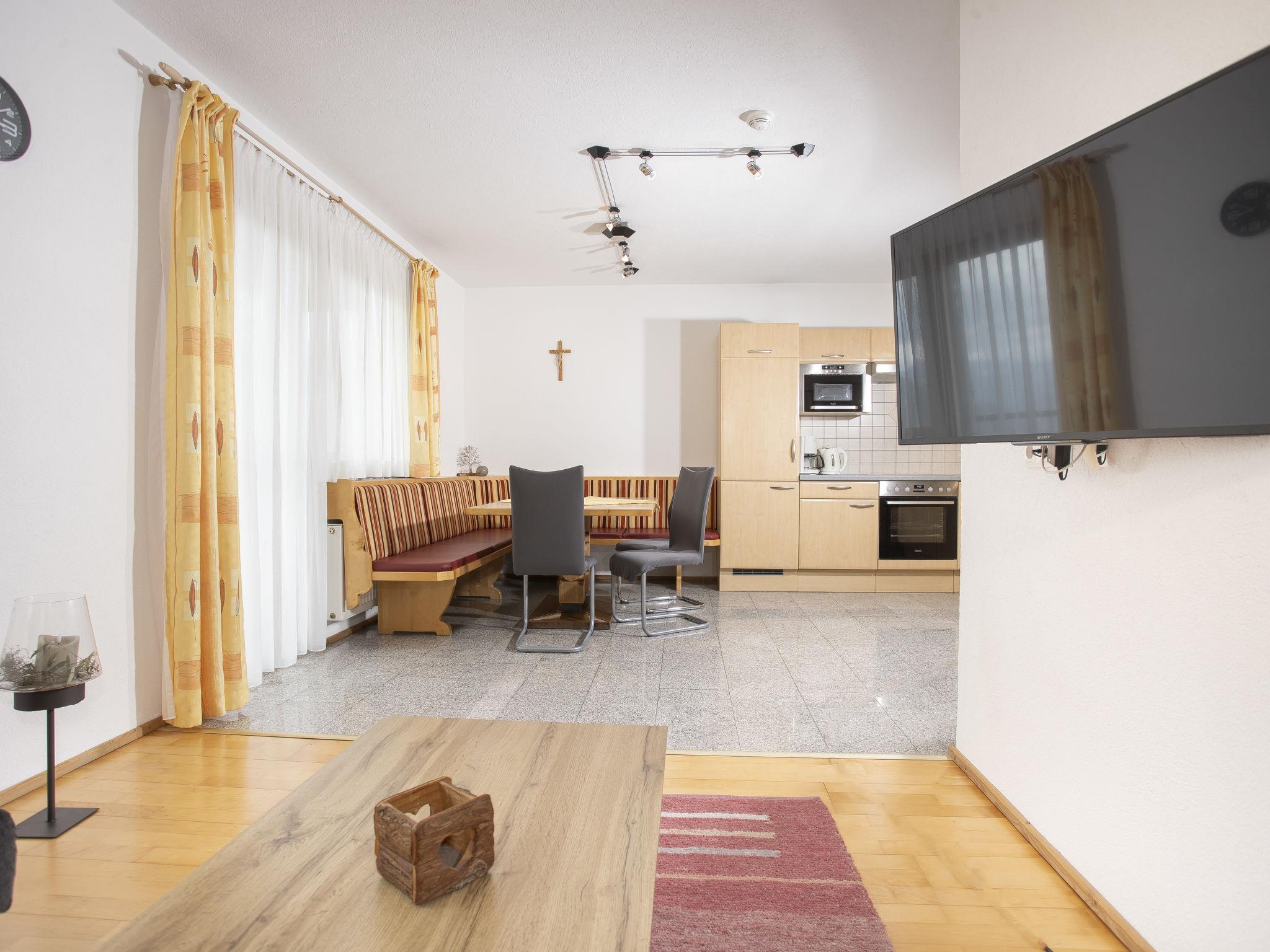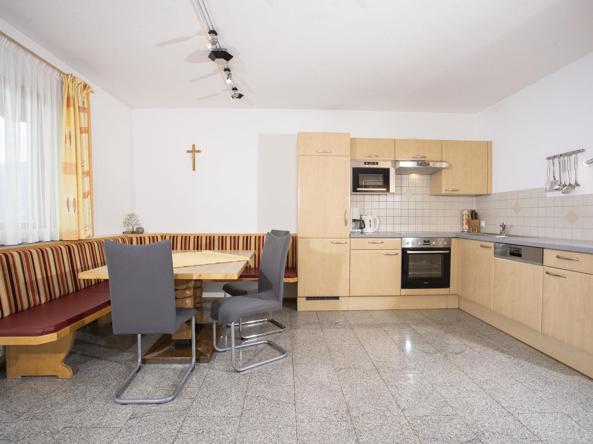 4-room apartment 80 m2 on 1st floor. Very tasteful and cosy furnishings: entrance hall. 2 double bedrooms. 1 room with 1 x 2 bunk beds. Living room with satellite TV (flat screen). Open kitchen (oven, dishwasher, 4 ceramic glass hob hotplates, microwave) with dining nook. Exit to the balcony. Shower, sep. WC. Balcony. Balcony furniture. Marvellous panoramic view of the mountains and the countryside. Facilities: Internet (WiFi, free). Please note: smoke alarm.