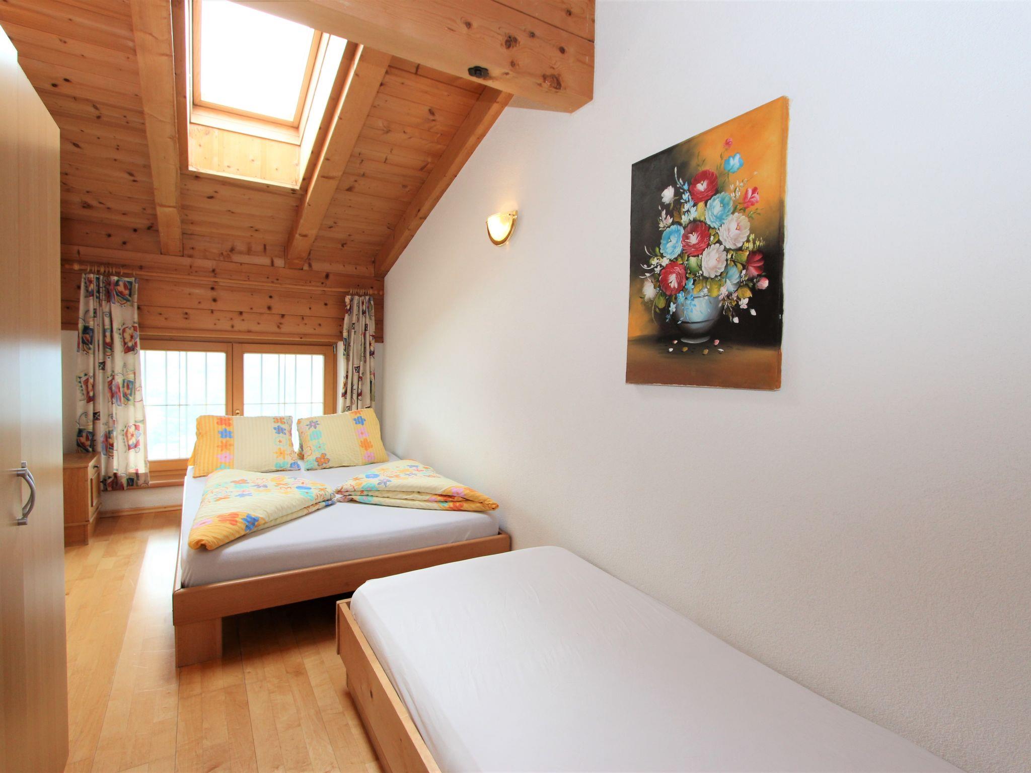 4-room apartment 86 m2, on the top floor. Tasteful and cosy furnishings: entrance hall. 1 room with 1 bed and 1 french bed (140 cm). 2 double bedrooms. Living room with satellite TV (flat screen). Exit to the balcony. Open kitchen (oven, dishwasher, 4 ceramic glass hob hotplates) with dining nook. Exit to the balcony. Bath/WC. Balcony. Marvellous panoramic view of the mountains, the valley and the countryside. Facilities: Internet (WiFi, extra). Please note: smoke alarm. High ceilings, visible beams.