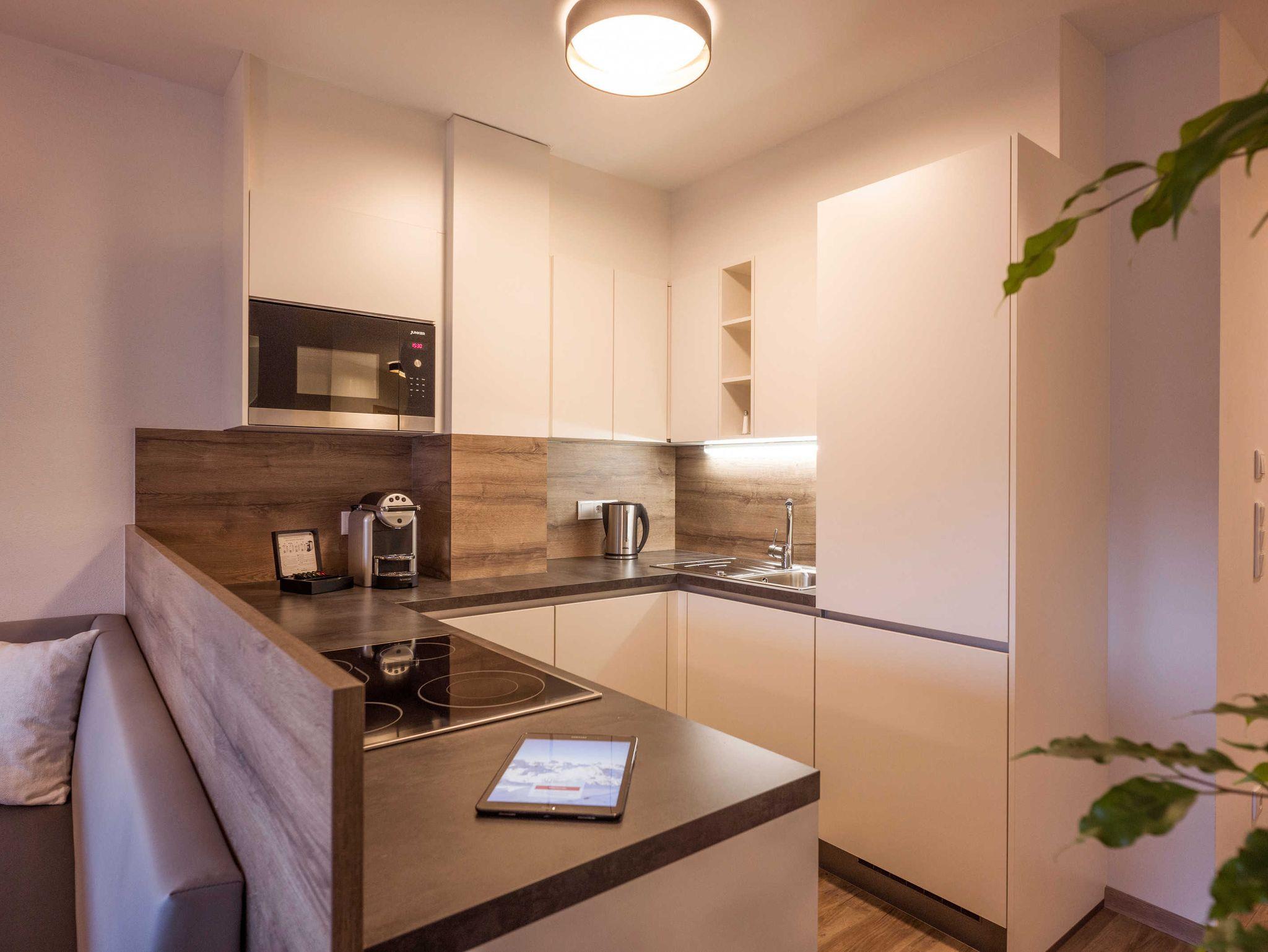 Mit 2 Schlafzimmern und superflauschigen Boxspringbetten bietet die Wohnung genügend Platz für 4 Personen. Das technische Equipment in der Küche reicht von einer Nespresso Kaffeemaschine und einem Wasserkocher, über Kühlschrank mit Gefrierfach, bis hin zu High-Tech Ceranherd. Wohn-/Aufenthaltsraum, Schlafcouch für 2 Personen, Safe, Suite-Pads, Wi-Fi, Flat- TV, Badezimmer mit Dusche/WC, 1 separates WC, Schrankraum und Terrasse.