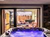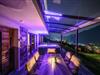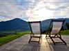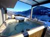 Die zur Suite gehörende Terrasse erstreckt sich über 55 Quadratmeter. Durch ihre Überdachung lässt es sich hier das ganze Jahr über auf den vorhandenen Wellnessliegen entspannen oder vom auf 38 Grad erwärmten Whirlpool aus der wunderschöne Panoramablick genossen werden.