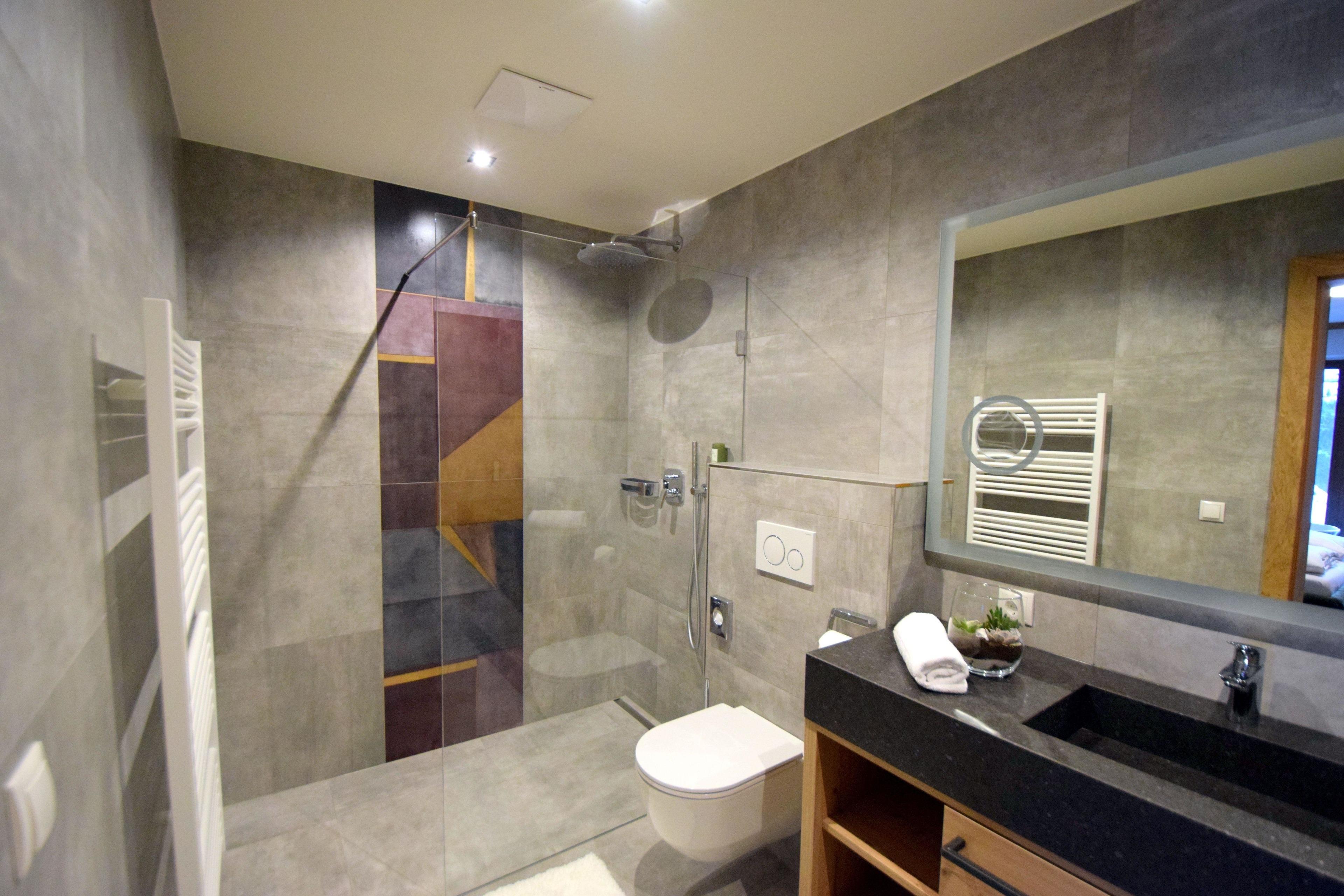 Unmittelbar neben der Haustür befindet sich ein privater Skiraum, in welchem neben einem Schuhtrockner auch eine Waschmaschine sowie ein Trockner untergebracht sind.
