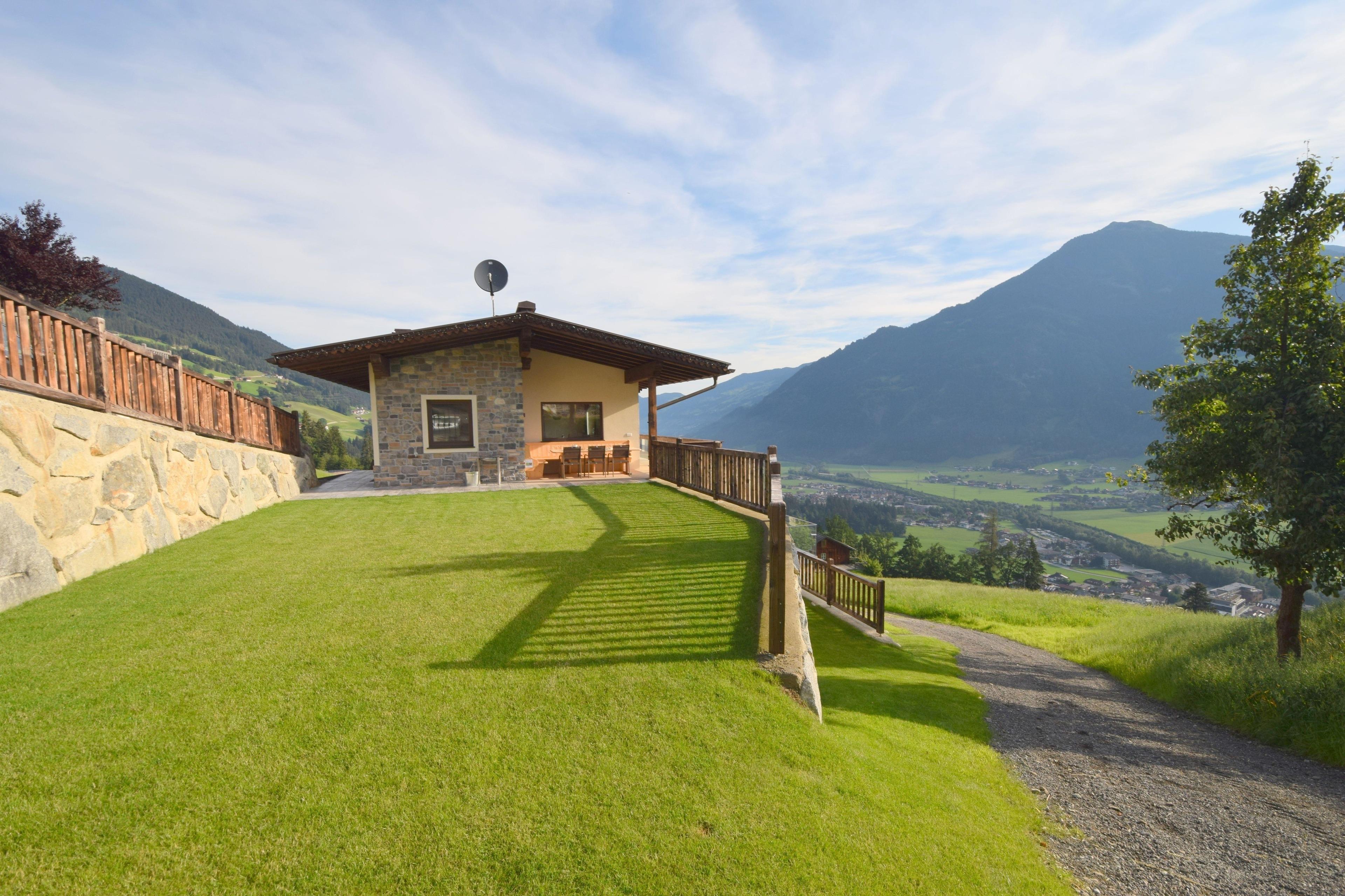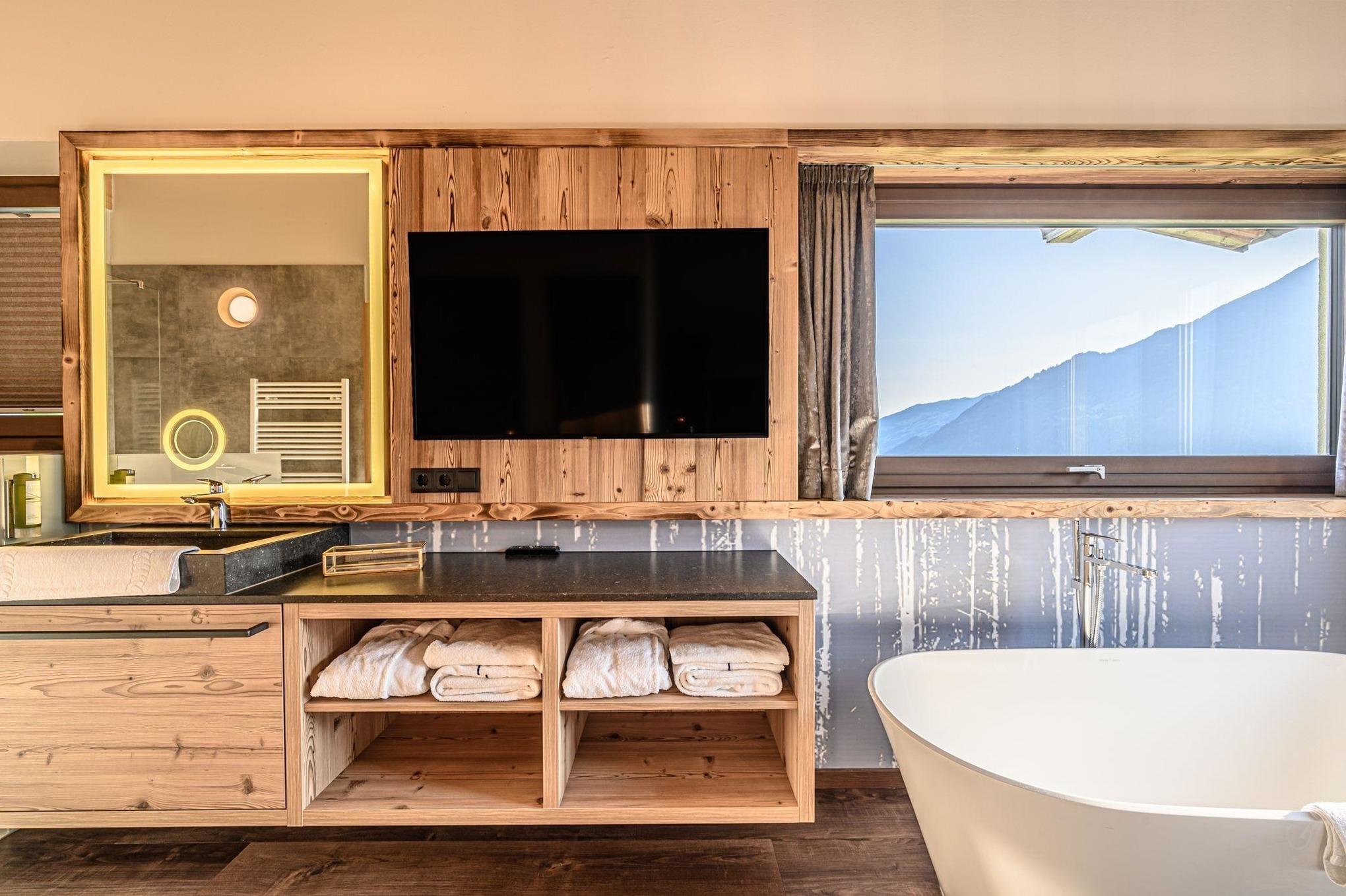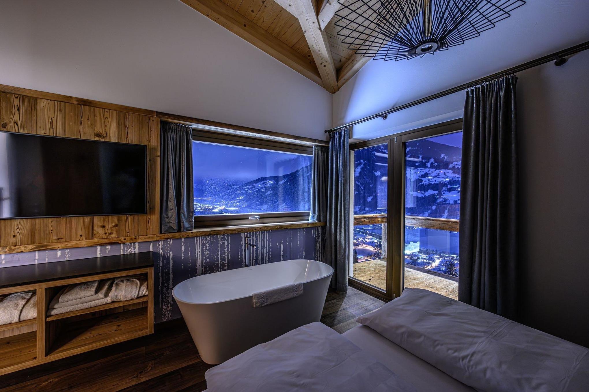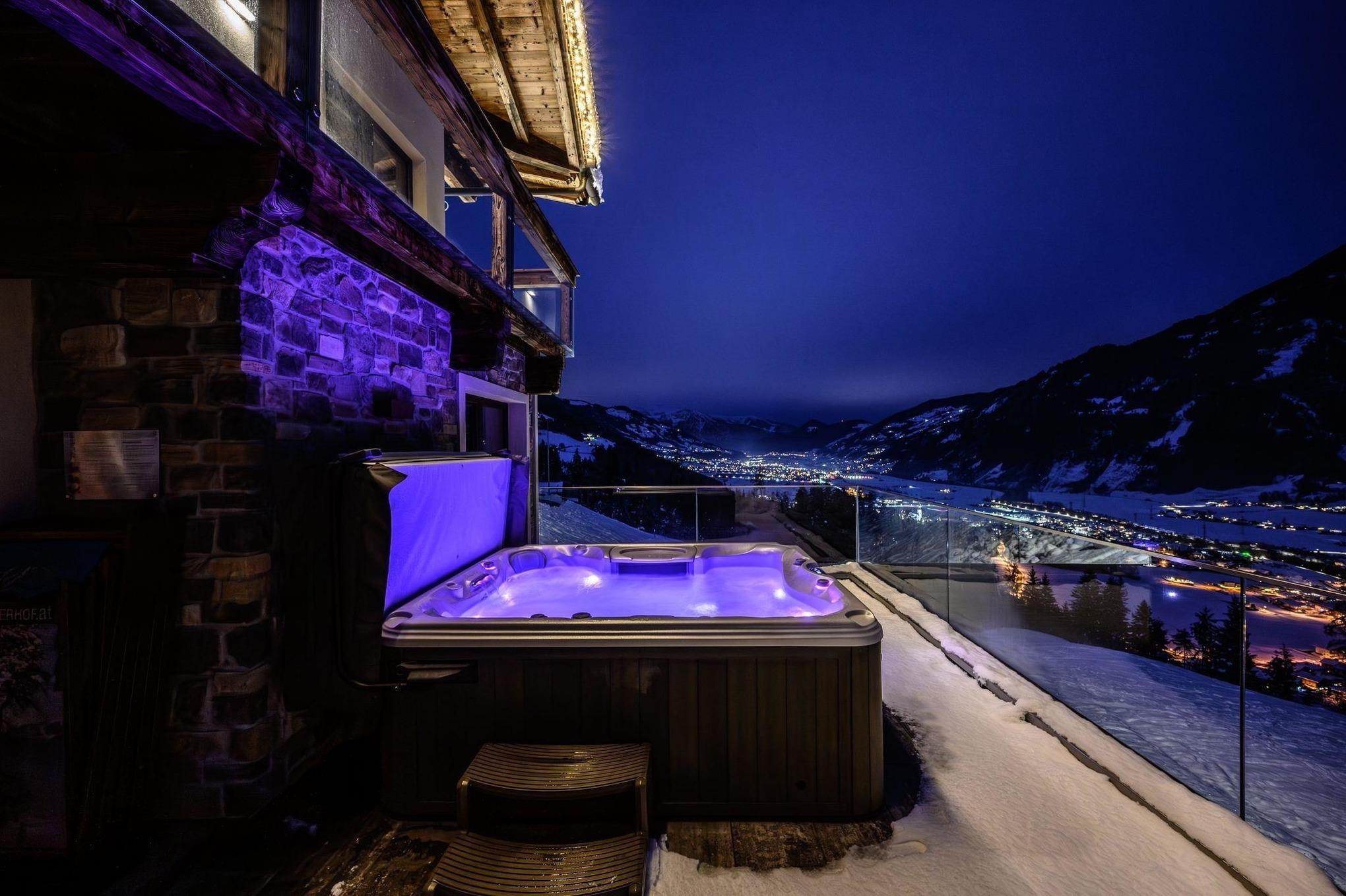 Neben einem atemberaubenden Panoramablick über das Zillertal gehören zum Alpinloft Goldsun auch zwei Terrassen. Ein eigener, auf 38 Grad erwärmter Whirlpool und die vorhandenen Wellnessliegen laden dazu ein den Ausblick besonders entspannt zu genießen.