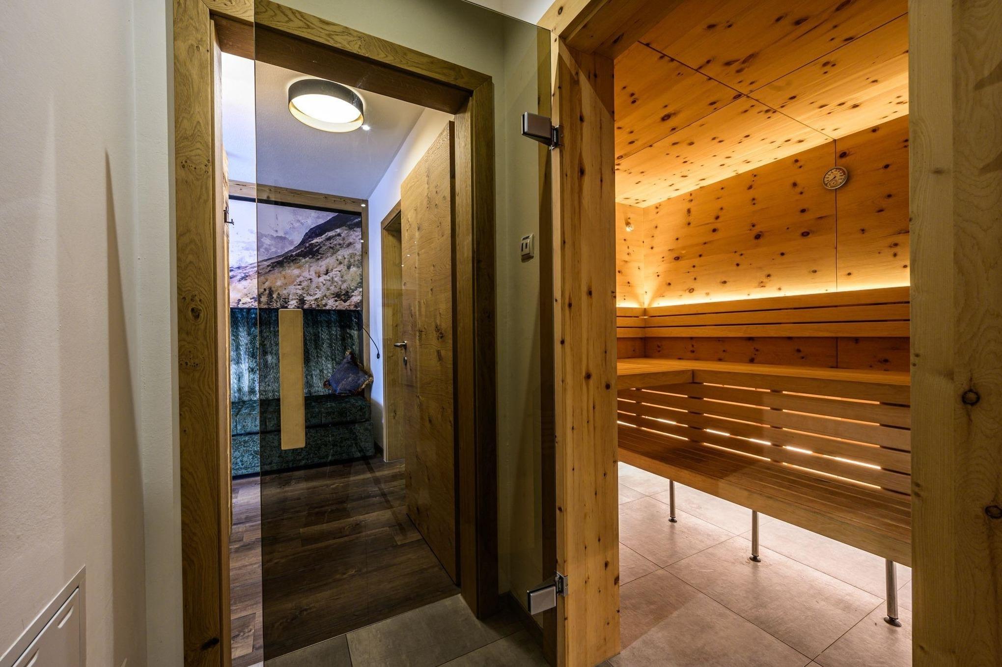 Die Zirbenholzsauna gehört zu den unbestreitbaren Highlights des Alpinlofts Goldsun. Sowohl der Betrieb als finnisch, als auch als Biosauna ist hier möglich, so dass in absolut privatem Umfeld herrliche Wellnessmomente erlebt werden können.