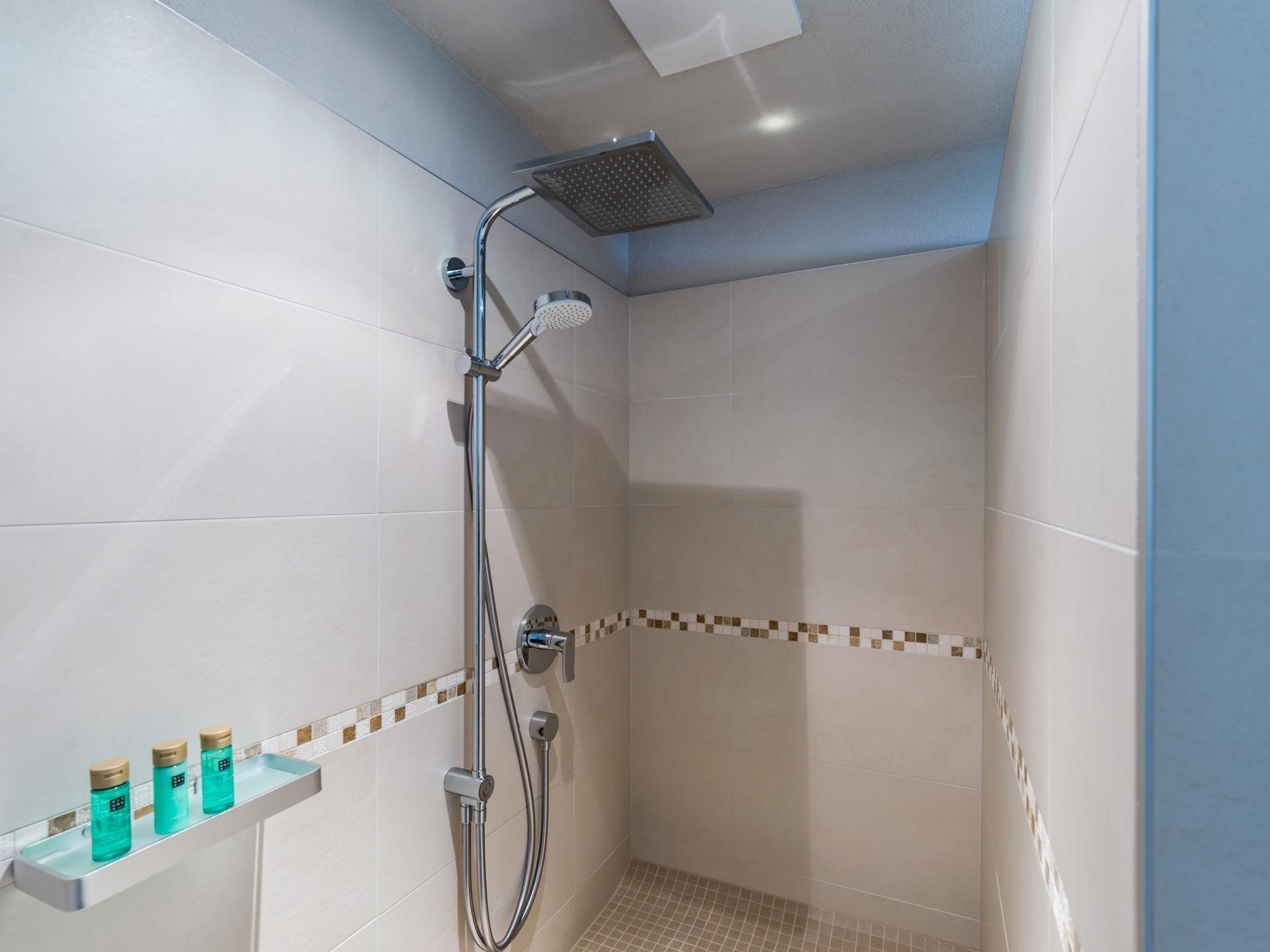 Komfortfaciliteter på badeværelset (hårtørrer, shampoo, hårbalsam, håndsæbe og brusegel)