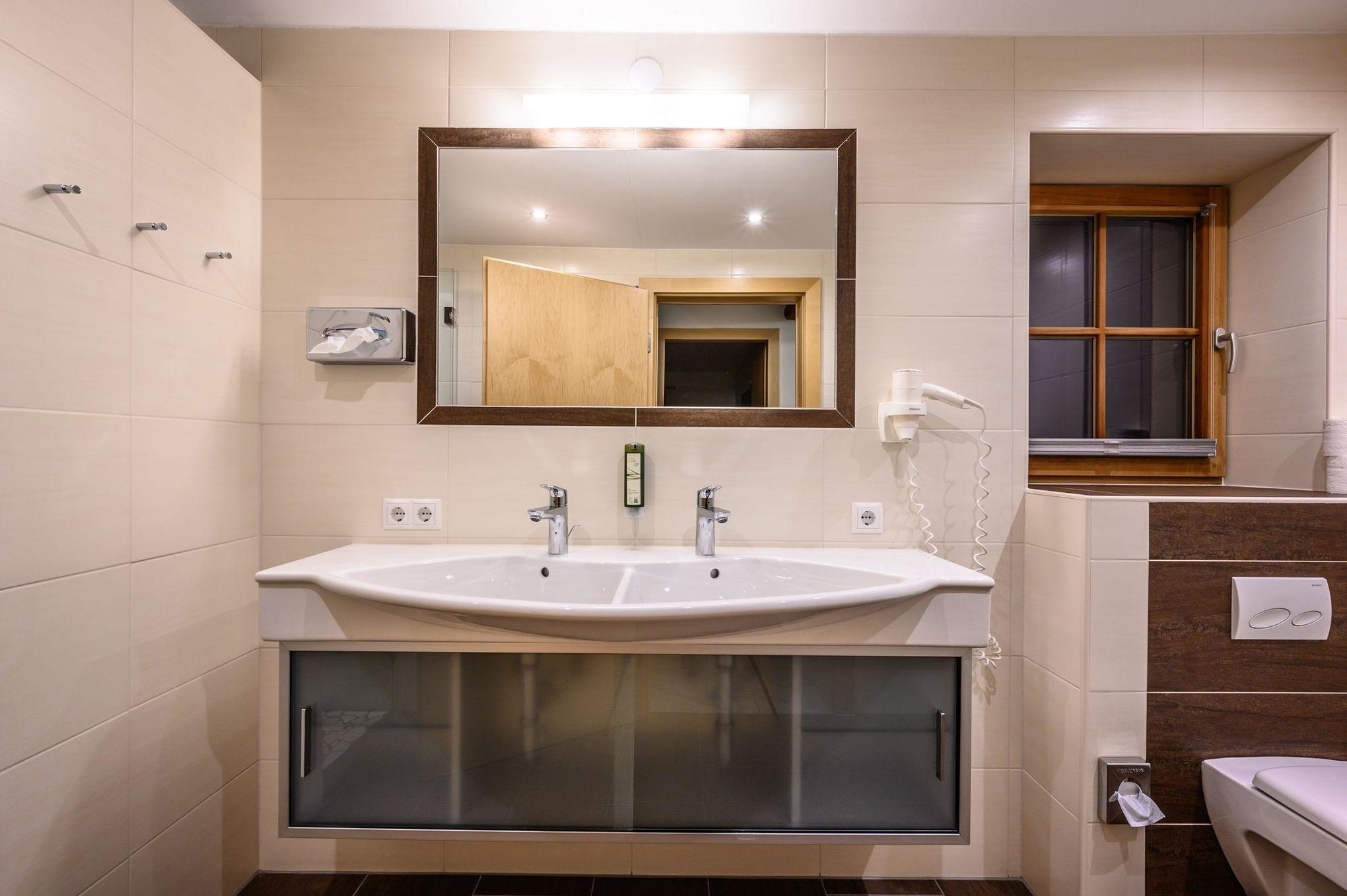 Zudem haben Sie ein großes Badezimmer mit einer bodengleichen Dusche, WC und Doppelwaschtisch sowie ein kleines Bad mit Dusche und WC.