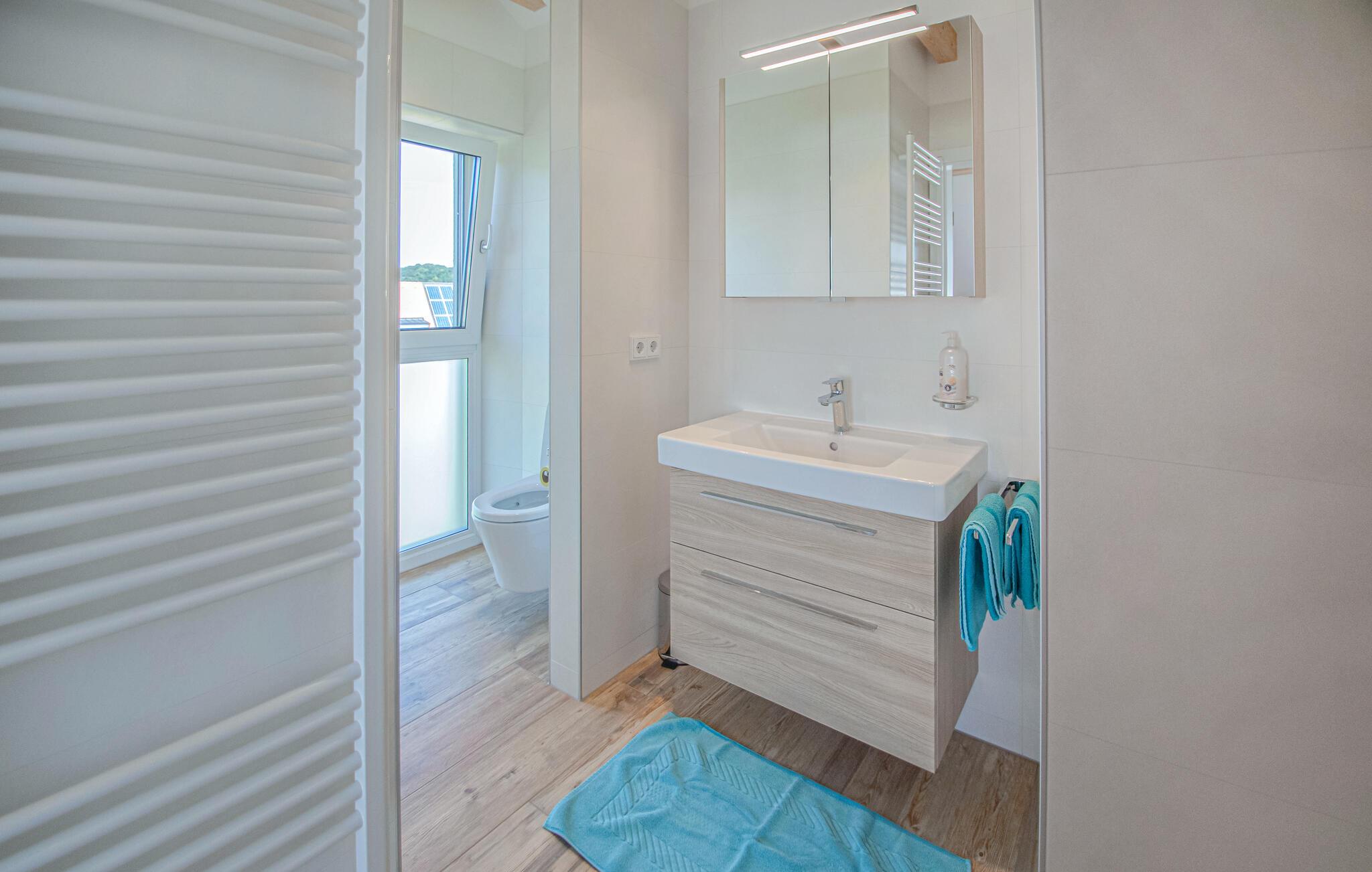Badeværelse (nr. 1) - WC. Varmt og koldt vand. Bruser