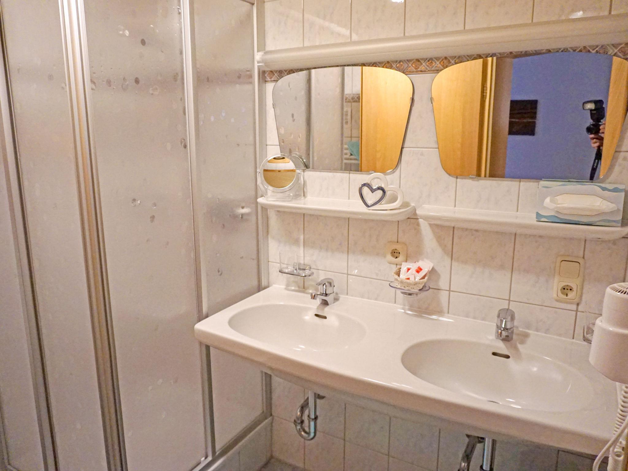 "Apart 107 Wiesenhof", 3-room apartment 55 m2 on 3rd floor. Modern and cosy furnishings: entrance hall. 2 double bedrooms. Kitchen-/living room (4 hot plates, oven, dishwasher, toaster, kettle, electric coffee machine) with dining nook, satellite TV, flat screen and radio. Shower, sep. WC, double hand-basin. Facilities: safe, hair dryer. Please note: non-smokers only. No lift. No pets allowed. Only 1 parking space!