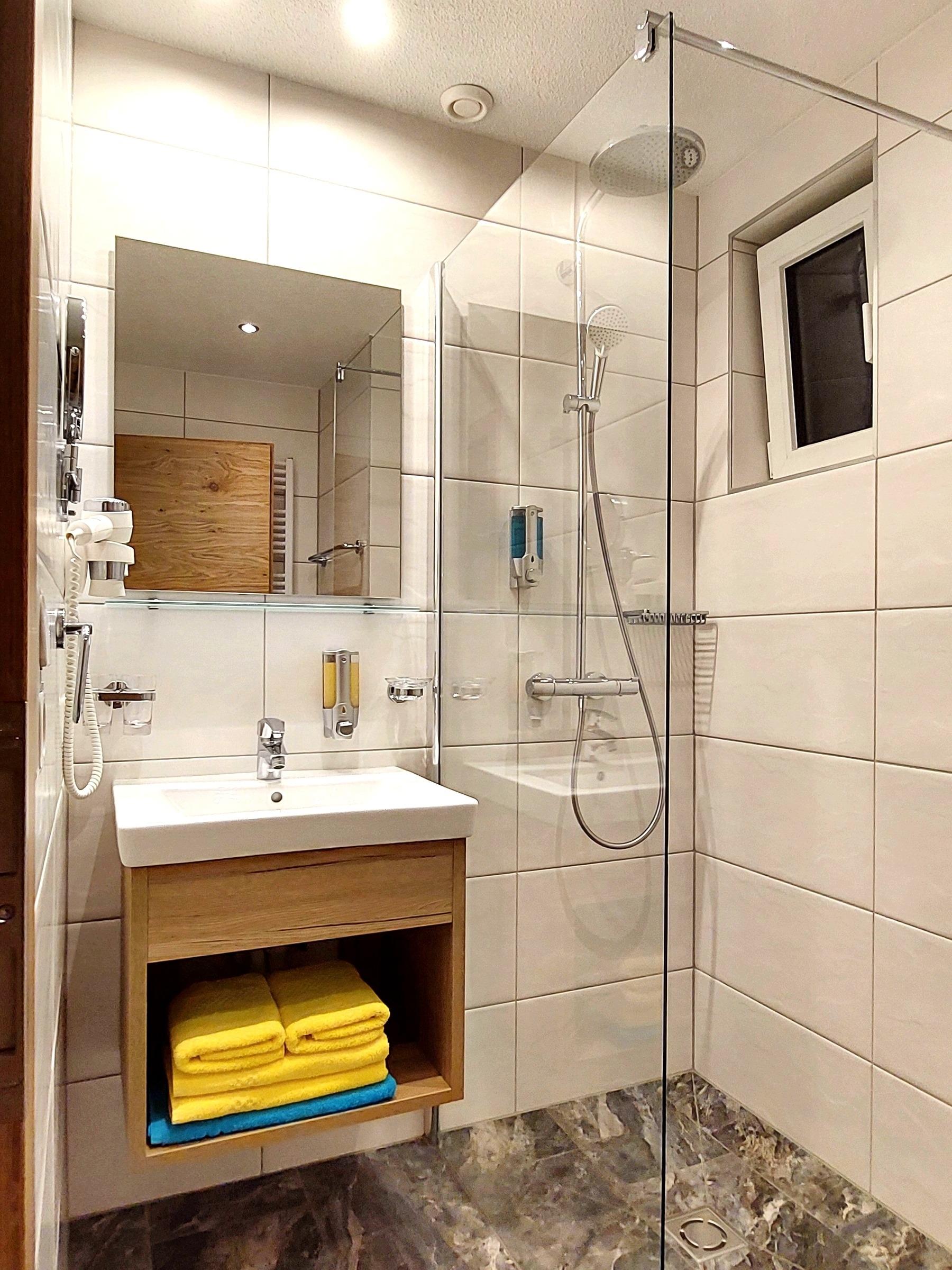 - 1 Badezimmer mit Dusche / Regendusche, WC, Haarfön, Kosmetikspiegel