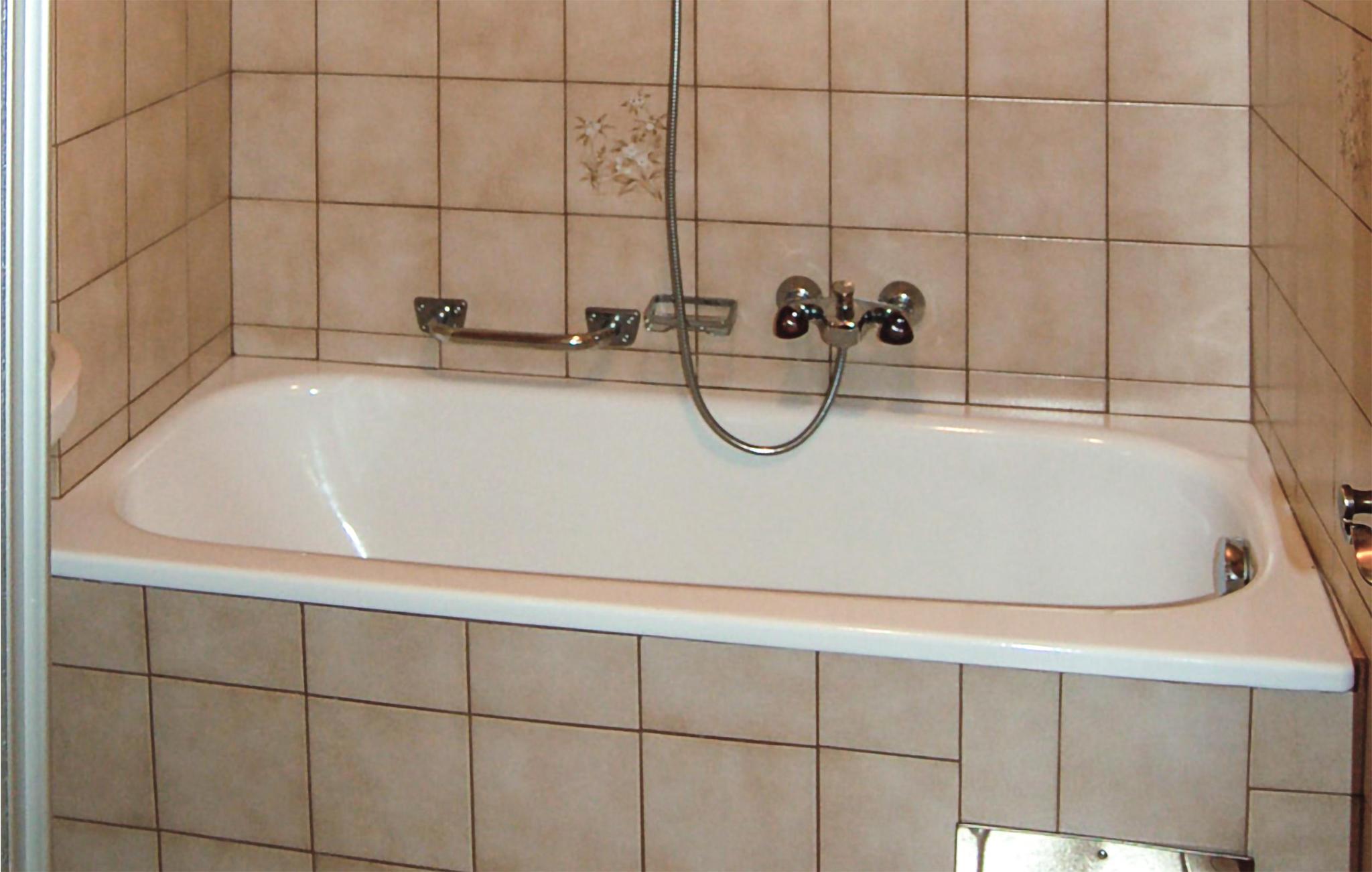 Badeværelse (nr. 1) - Varmt og koldt vand. Bruser og badekar