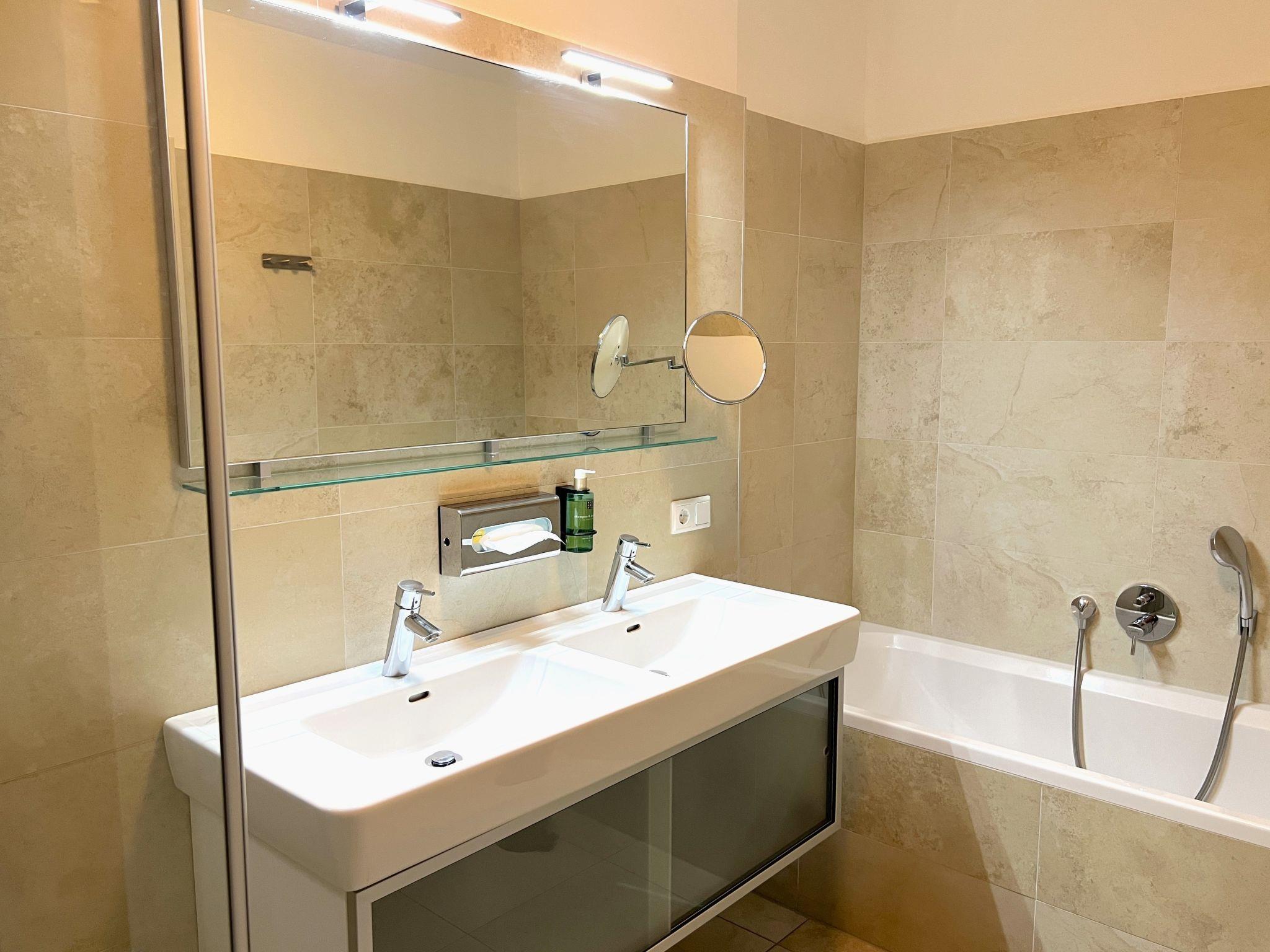 "Mountain Resort Kaprun", 3-room apartment 75 m2 on 1st floor. Comfortable and modern furnishings: entrance hall. Large living/sleeping room with 1 double sofabed, open-hearth fireplace and TV (flat screen). 1 double bedroom with TV. 1 double bedroom with shower/WC and TV. Open kitchen (oven, 4 ceramic glass hob hotplates, toaster, kettle, electric coffee machine). Bathroom, sep. WC. Heating. 2 balconies. Balcony furniture. Very beautiful panoramic view of the mountains. Facilities: Internet (WiFi, free). Please note: non-smokers only. Smoke alarm. 50606-007661-2025