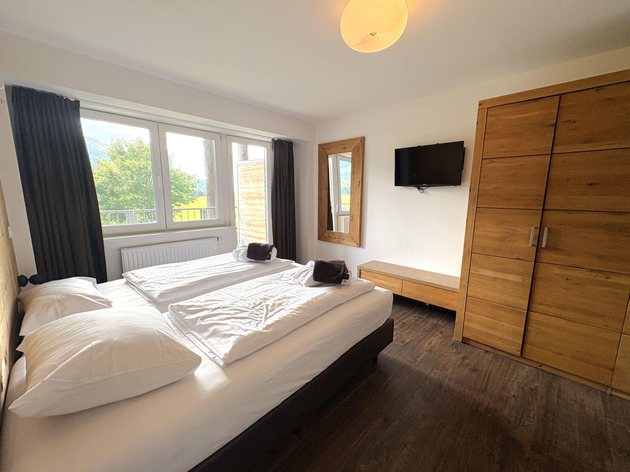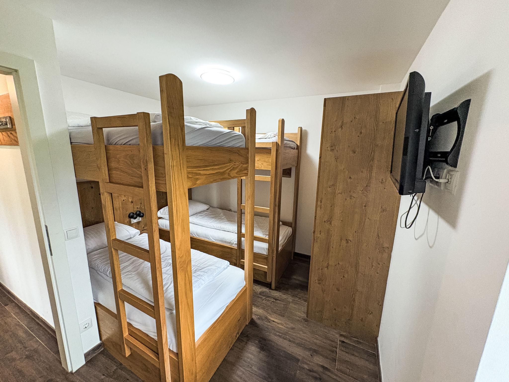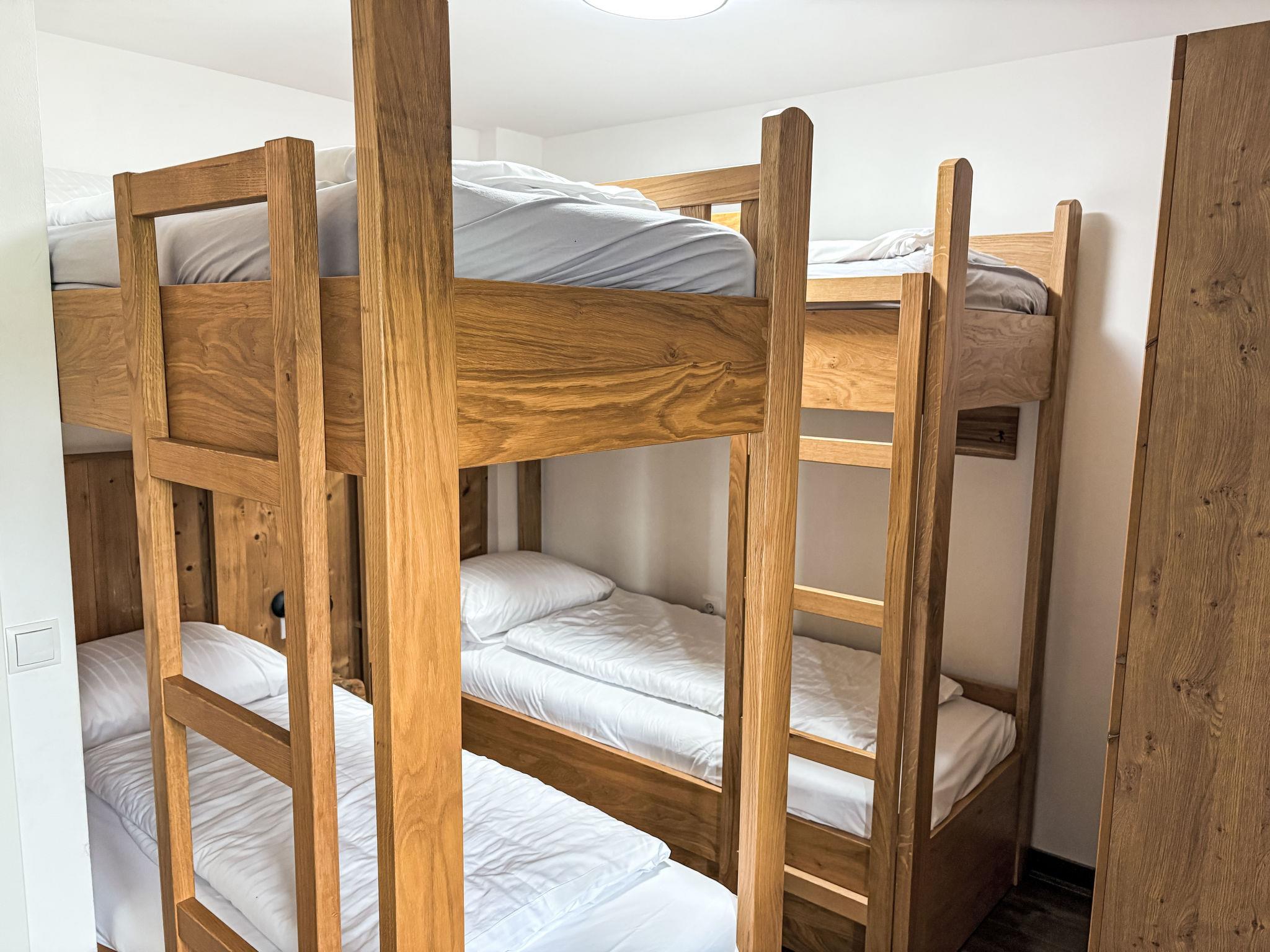 "Oskar (Top 4)", 4-room apartment 87 m2 on 1st floor. Comfortable and cosy furnishings: entrance hall. Large living/dining room with dining table and TV (flat screen). 1 double bedroom with bath/shower/WC and TV. 1 double bedroom with TV. 1 room with 2 x 2 bunk beds, TV. Open kitchen (oven, dishwasher, 4 ceramic glass hob hotplates, toaster, kettle, microwave, electric coffee machine). Shower, sep. WC, Sauna. Electric heating. Balcony. Balcony furniture. Beautiful view of the mountains and the ski run. Facilities: Internet (WiFi, free). Parking (1 car). Please note: non-smokers only. Maximum 1 pet/ dog allowed. Smoke alarm. The sauna is an infrared cabin. 50606-007646-2025