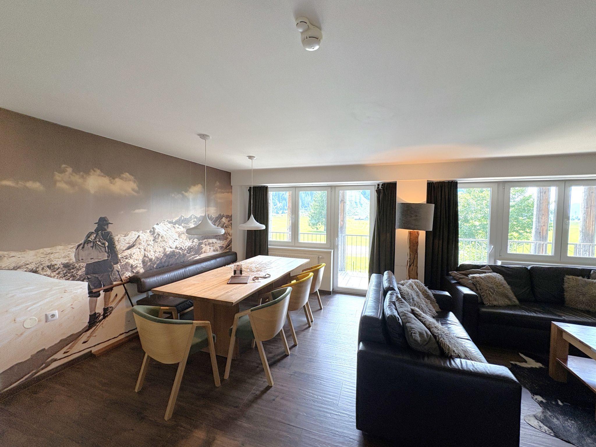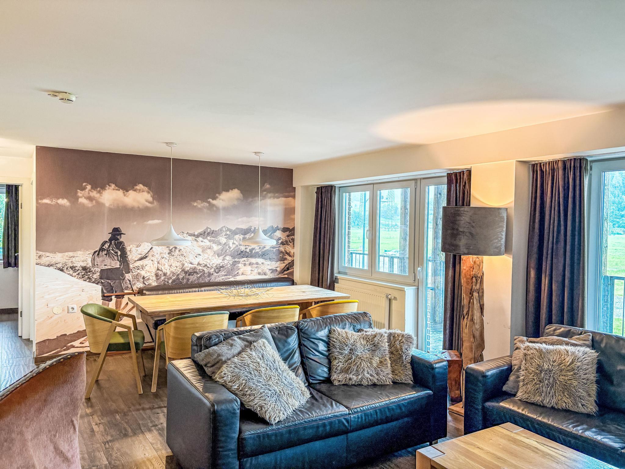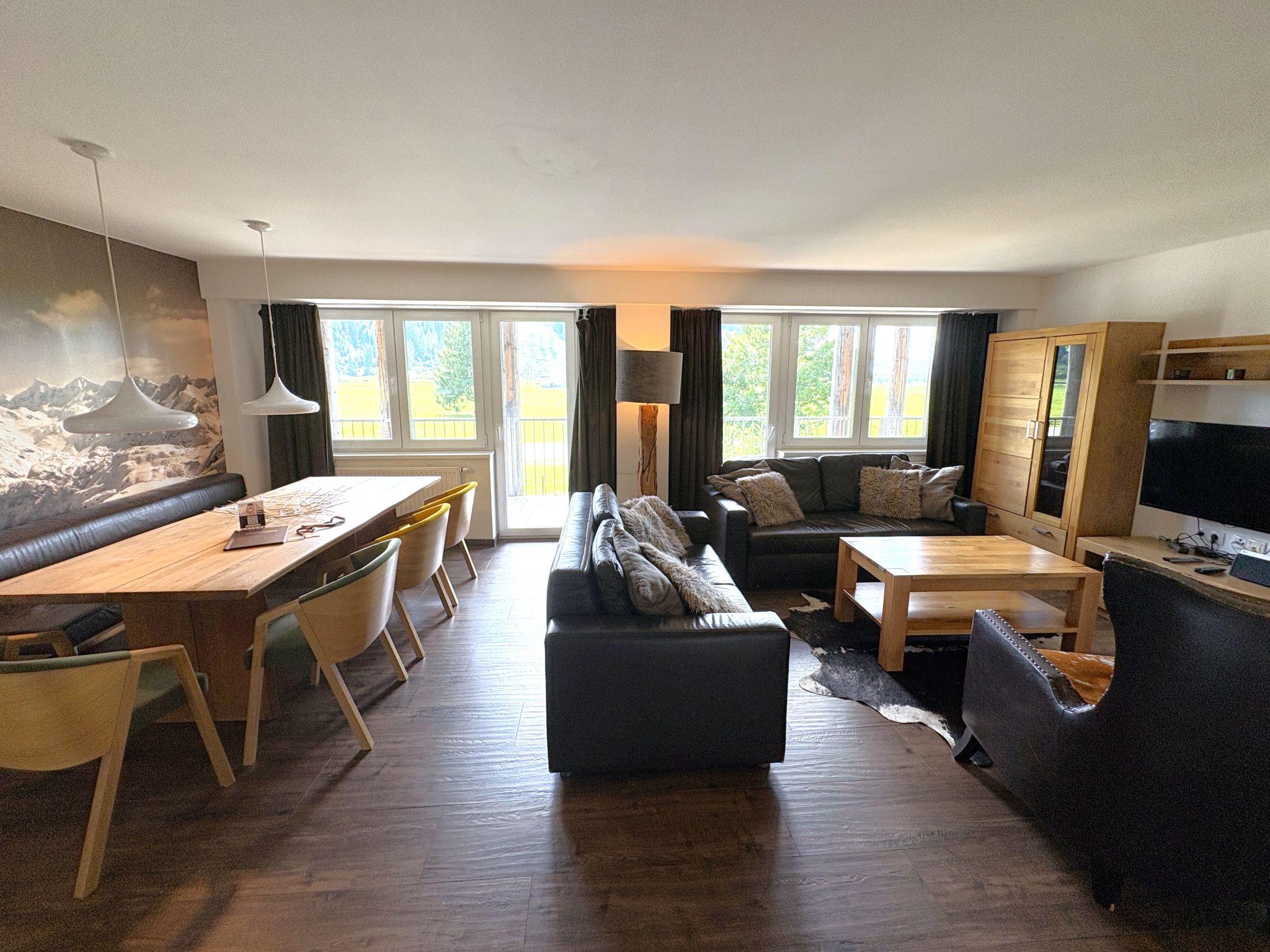 "Oskar (Top 4)", 4-room apartment 87 m2 on 1st floor. Comfortable and cosy furnishings: entrance hall. Large living/dining room with dining table and TV (flat screen). 1 double bedroom with bath/shower/WC and TV. 1 double bedroom with TV. 1 room with 2 x 2 bunk beds, TV. Open kitchen (oven, dishwasher, 4 ceramic glass hob hotplates, toaster, kettle, microwave, electric coffee machine). Shower, sep. WC, Sauna. Electric heating. Balcony. Balcony furniture. Beautiful view of the mountains and the ski run. Facilities: Internet (WiFi, free). Parking (1 car). Please note: non-smokers only. Maximum 1 pet/ dog allowed. Smoke alarm. The sauna is an infrared cabin. 50606-007646-2025