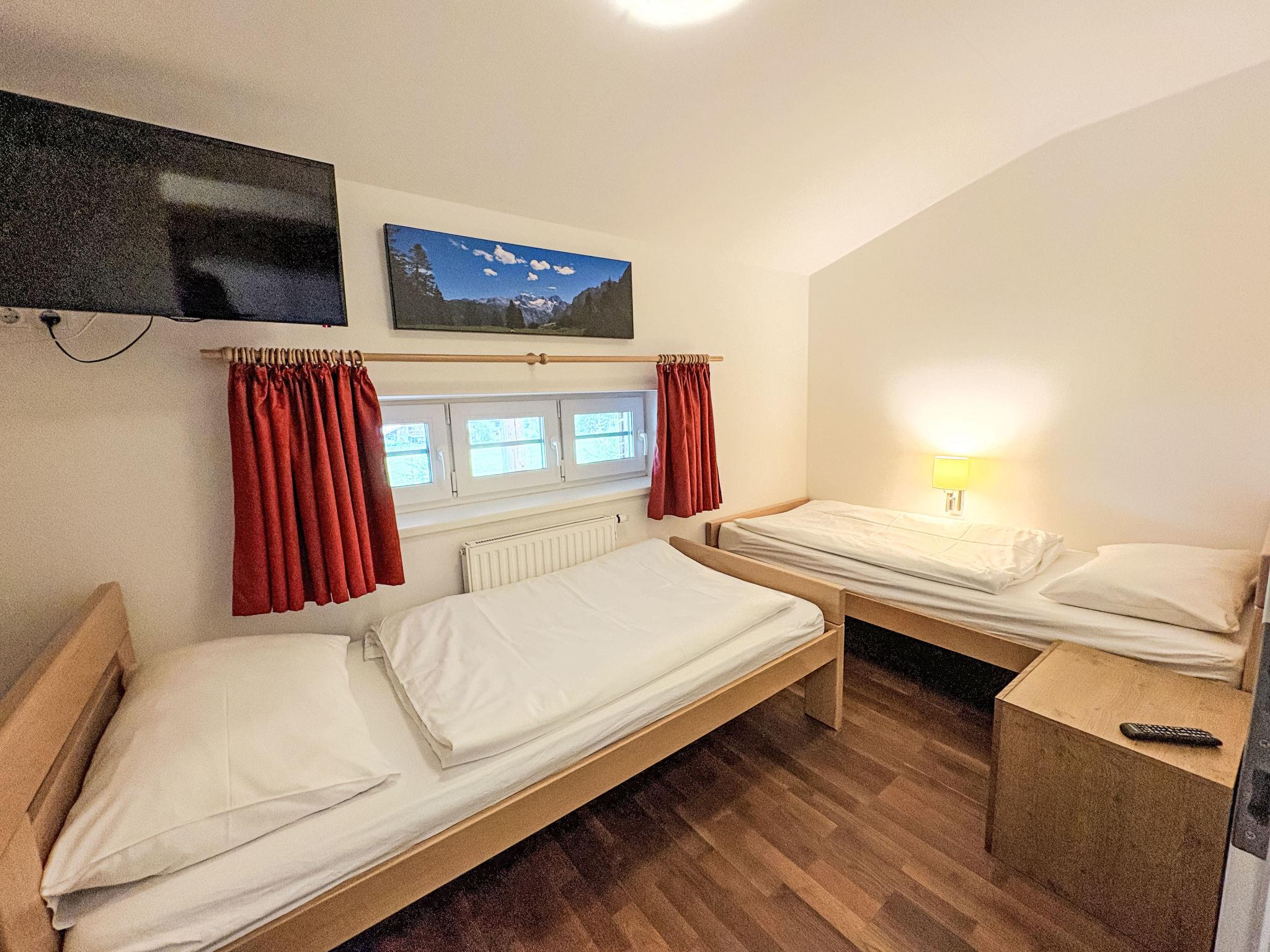 "Justine (Top 9)", 3-room apartment 49 m2 on 2nd floor. Comfortable and cosy furnishings: entrance hall. Living/dining room with dining table and TV (flat screen). 1 room with 2 beds. 1 double bedroom. Open kitchen (oven, dishwasher, 4 ceramic glass hob hotplates, toaster, kettle, microwave, electric coffee machine). Shower/WC. Electric heating. 2 balconies 10 m2. Balcony furniture. Beautiful, of the mountains and the ski run. Facilities: Internet (WiFi, free). Parking (1 car). Please note: non-smokers only. Maximum 1 pet/ dog allowed. Smoke alarm. 50606-007645-2025