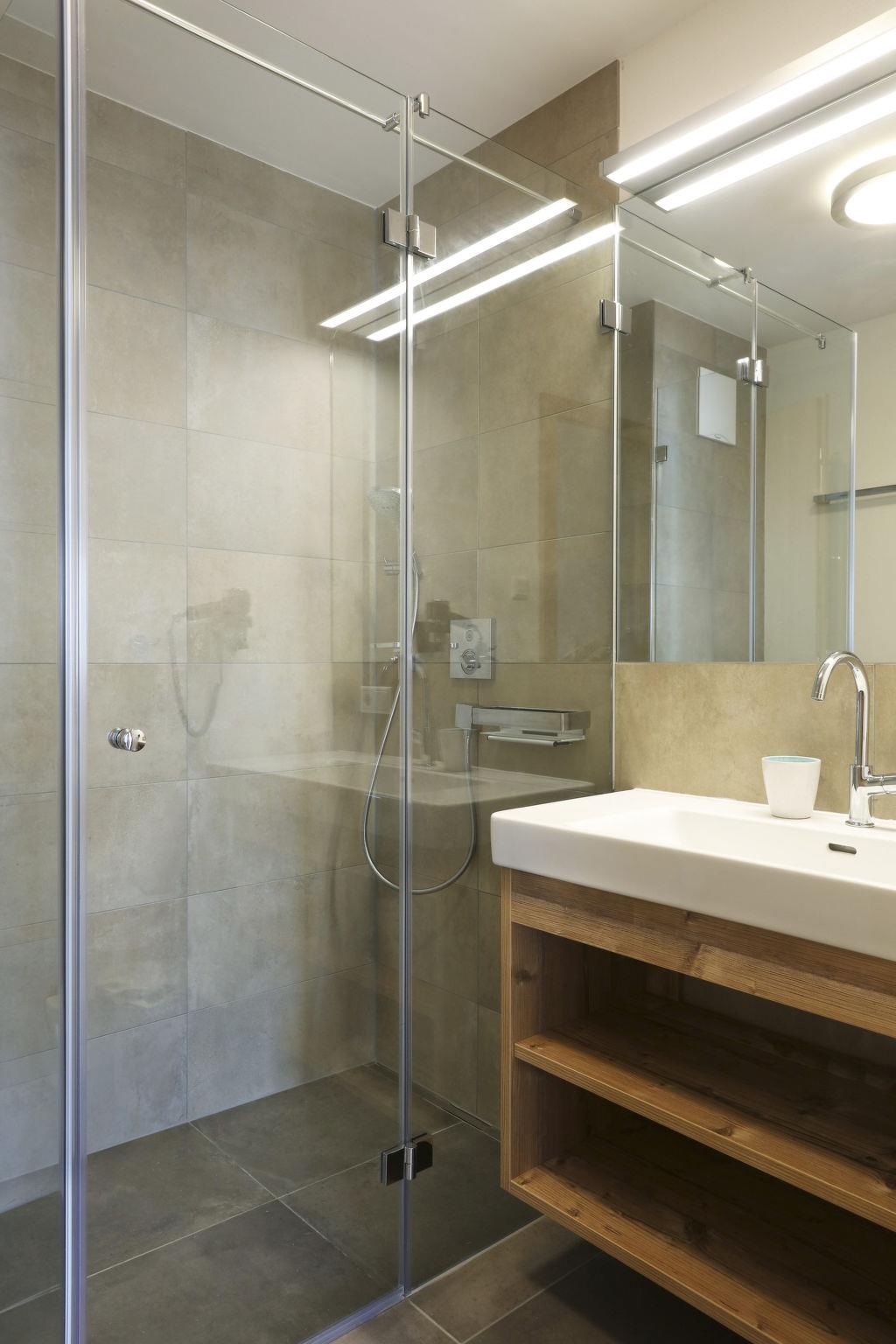 "Superior 202 für bis 6 Personen", 3-room apartment 73 m2, on the ground floor. Bright, tasteful furnishings: living/sleeping room with 1 double sofabed, dining nook, satellite TV and CD-player. 2 double bedrooms, each room with satellite TV (flat screen). Open kitchen (oven, dishwasher, 4 ceramic glass hob hotplates, toaster, kettle, microwave, electric coffee machine). 2 showers/WC. Terrace. Terrace furniture. Beautiful view of the mountains. Facilities: hair dryer. Internet (WiFi, free). Please note: non-smokers only. 50616-001305-2020