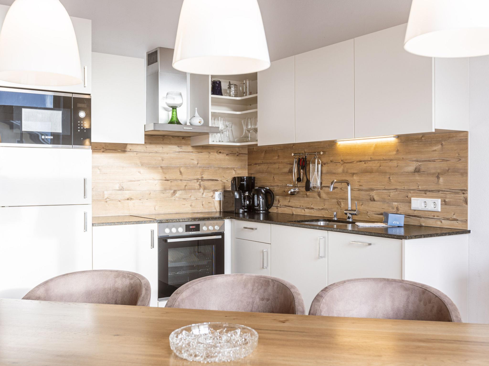 "Premium 324 für bis zu 8 Personen", 5-room apartment 104 m2. Bright, comfortable and tasteful furnishings: living room with dining nook and satellite TV (flat screen). 1 double bedroom with shower/WC and satellite TV (flat screen). 3 double bedrooms, each room with satellite TV (flat screen). Open kitchen (oven, dishwasher, 4 ceramic glass hob hotplates, toaster, kettle, microwave, electric coffee machine). 2 showers/WC. Balcony. Balcony furniture. Beautiful view. Facilities: hair dryer. Internet (WiFi, free). Please note: non-smokers only. 50616-001305-2020