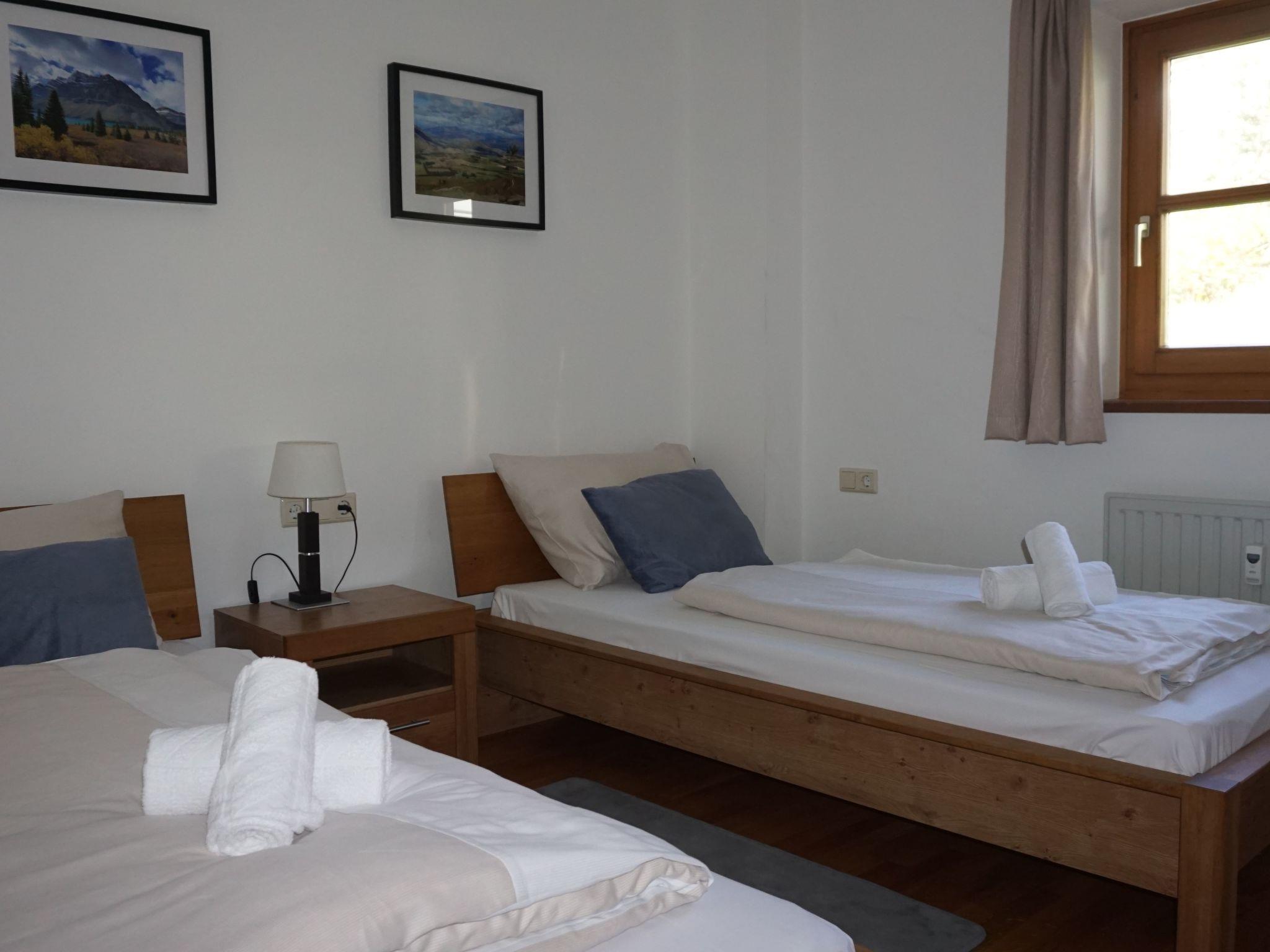 The flat has a living and dining room with open-plan kitchen as well as two bedrooms with two single beds each, one bedroom with a double bed and one bedroom with a double bed and a pull-out double sofa bed. Each bedroom has its own bathroom. From the living room and one bedroom you have access to the balcony with a fantastic panoramic view of the Kaprun mountains and the Kitzsteinhorn.