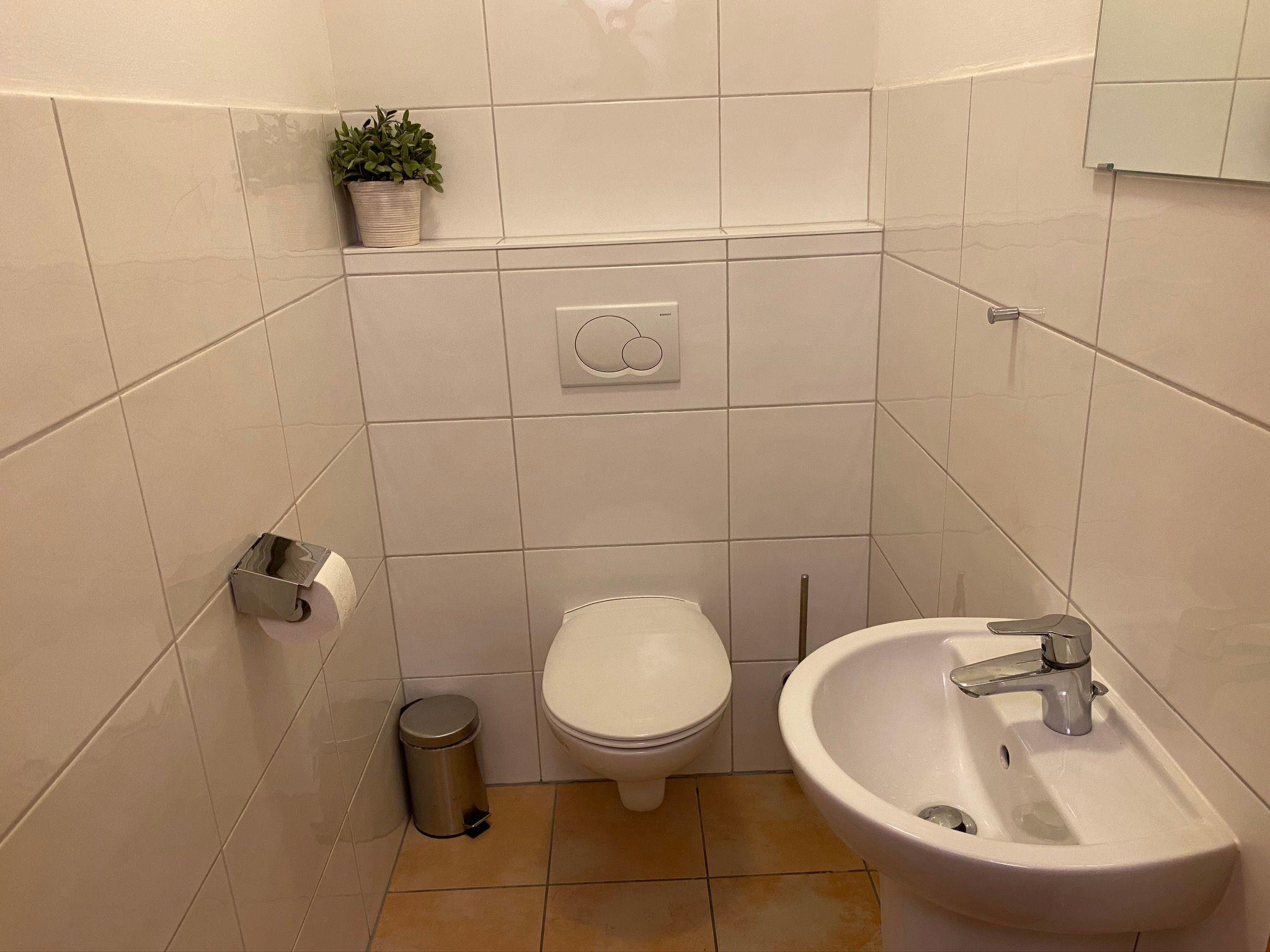 The flat's outdoor space is equally inviting. The balcony offers a nice spot to start or end the day. For cycling enthusiasts, there is covered bicycle storage, making the apartment an excellent choice for those who like to explore the area on two wheels.