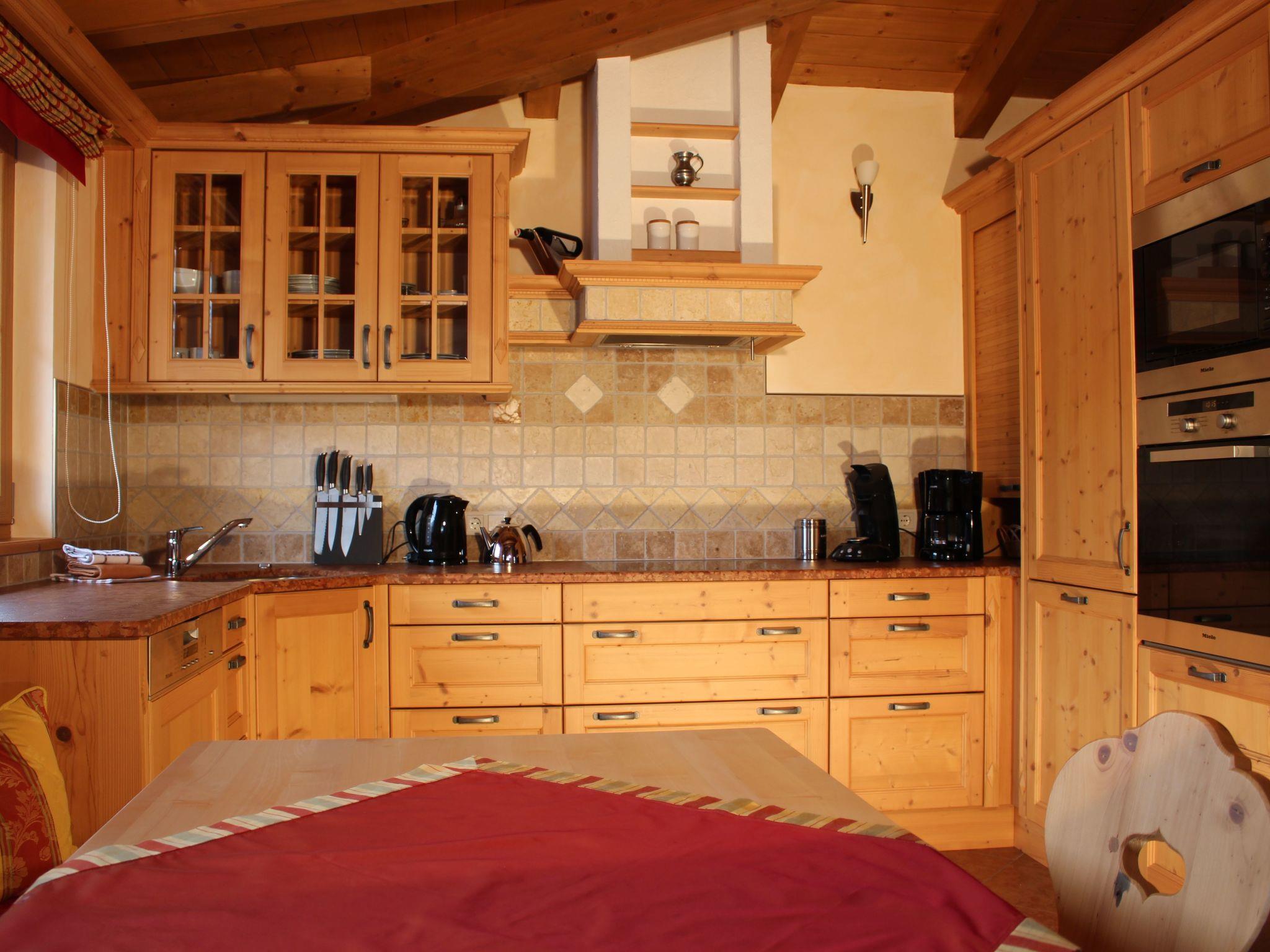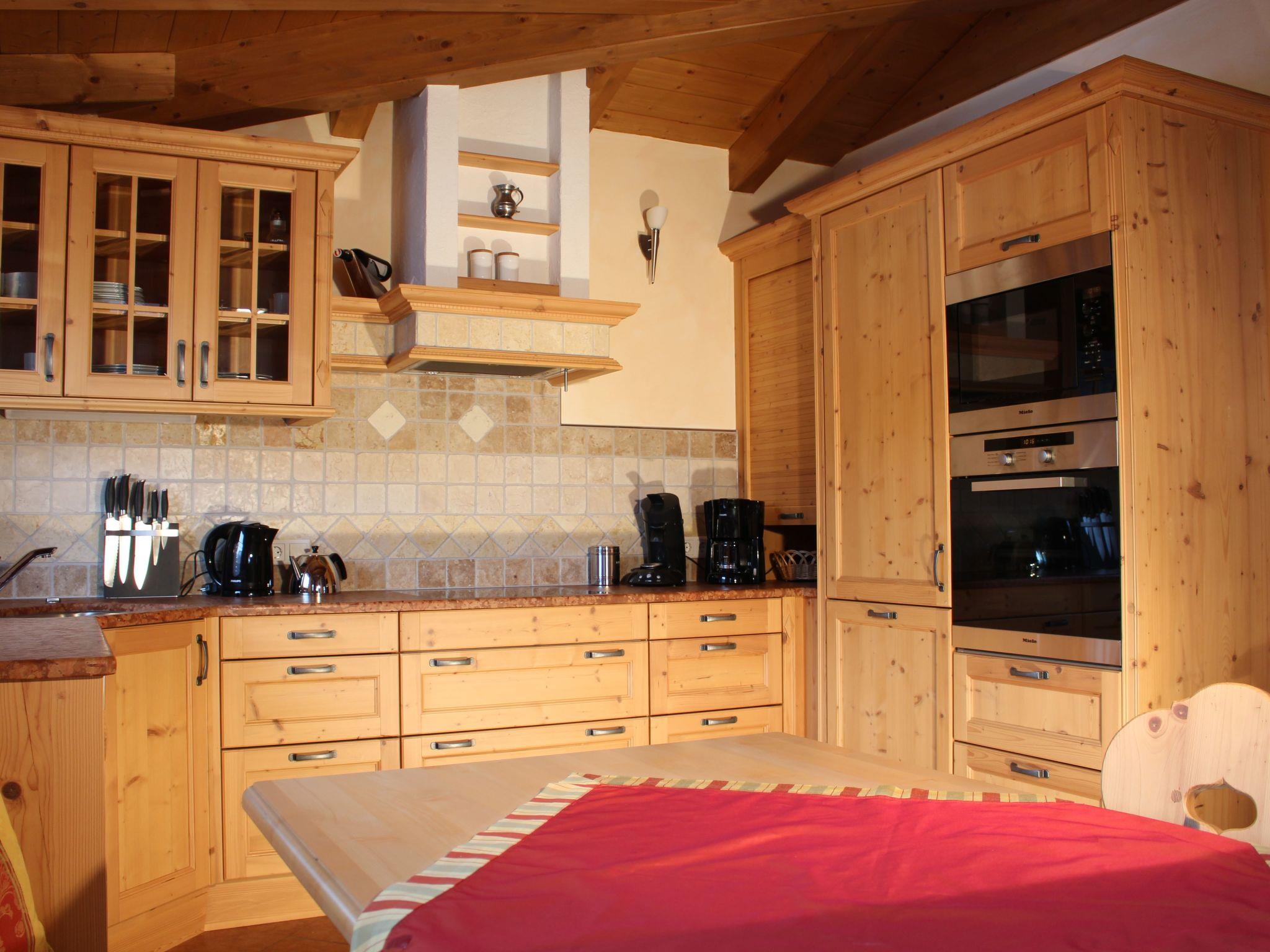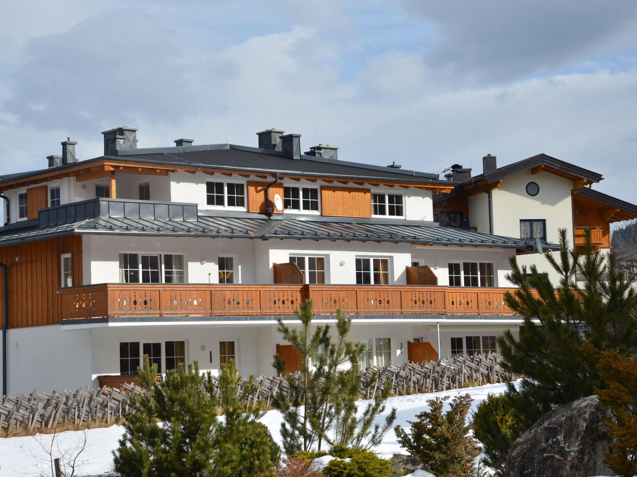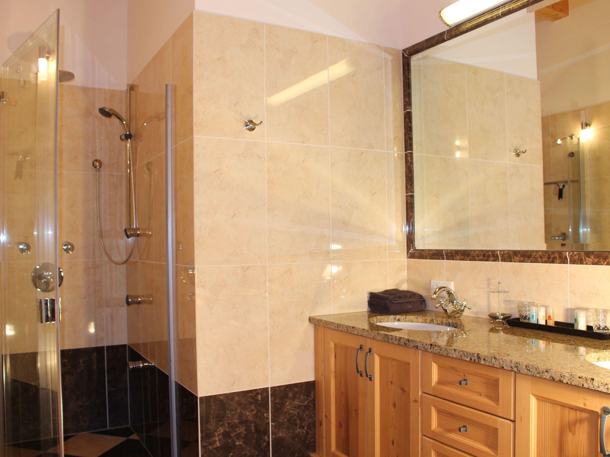 A floor all to yourself! The penthouse flat is very luxuriously furnished with solid wood furniture in a subtle alpine design, which gives this flat an inviting and cosy character. The lift takes you directly to the entrance hall of the flat. From there you enter the spacious living room, which creates a cosy atmosphere with its comfortable seating and fireplace. From the living room you can access the open-plan kitchen, the bathroom and the flat's two bedrooms. The kitchen is fully equipped and has high-quality kitchen appliances. A cosy dining area is the ideal place to enjoy meals. The bathroom is very large and has two washbasins, an exclusive whirlpool and a large rainforest shower. The two bedrooms are very spacious and equipped with large wardrobes and flat-screen TVs. One room also has an extra washbasin. The many large windows and the south-facing terrace offer a fantastic view of the Kitzsteinhorn and the Maiskogel. The flat also has an underground car park and its own cellar compartment with ski boot dryer. If you value luxury, natural, high quality and a cosy atmosphere - you will feel at home here! Facilities 1 bedroom with double bed, TV 1 bedroom with double bed, washbasin, TV 1 large living room, seating area, sofa bed, fireplace, TV, DVD 1 open-plan kitchen with Miele appliances, dining table 1 bathroom with double washbasin, whirlpool, rainforest shower, hairdryer 1 south-facing terrace with table, armchairs, radiant heater 1 separate WC 1 storage room with washing machine, tumble dryer 1 lift directly to the entrance hall of the flat 1 private ski room with ski boot dryer 1 bicycle room 1 underground car park, outdoor parking space free W-LAN Please note The penthouse flat is barrier-free and suitable for allergy sufferers (no pets allowed). Non-smoking flat!
