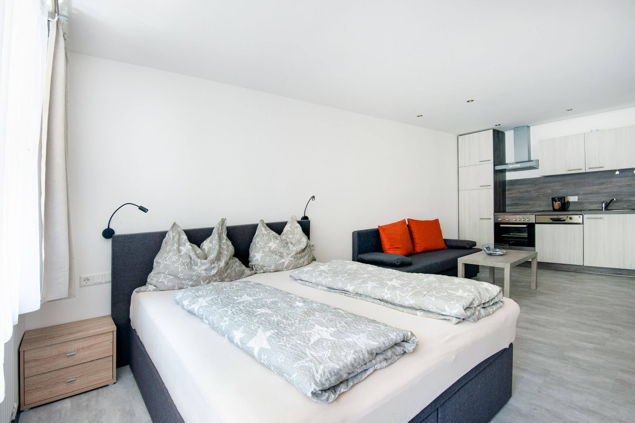 På 2. etage: (tekøkken(kogeplade, kaffemaskine, ovn, opvaskemaskine , køleskab, fryser), Stue/soveværelse(dobbeltseng, dobbeltsovesofa, Fjernsyn), badeværelse(bruser, håndvask, toilet), balkon, elevator)