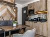Unser Studio eignet sich perfekt für den Urlaub zu zweit. Die Einrichtung im modernen alpinen Stil schafft eine helle Atmosphäre. Eine kleine Kochnische und eine gemütliche Sitzbank machen den Raum neben einem komfortablen Bett und einem Bad mit Dusche und WC komplett. Der private Balkon lädt dazu ein, den Abend bei einem guten Glas Wein ausklingen zu lassen.