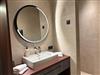 • offenes Badezimmer mit Dusche, Handtuchtrockner und Haarföhn