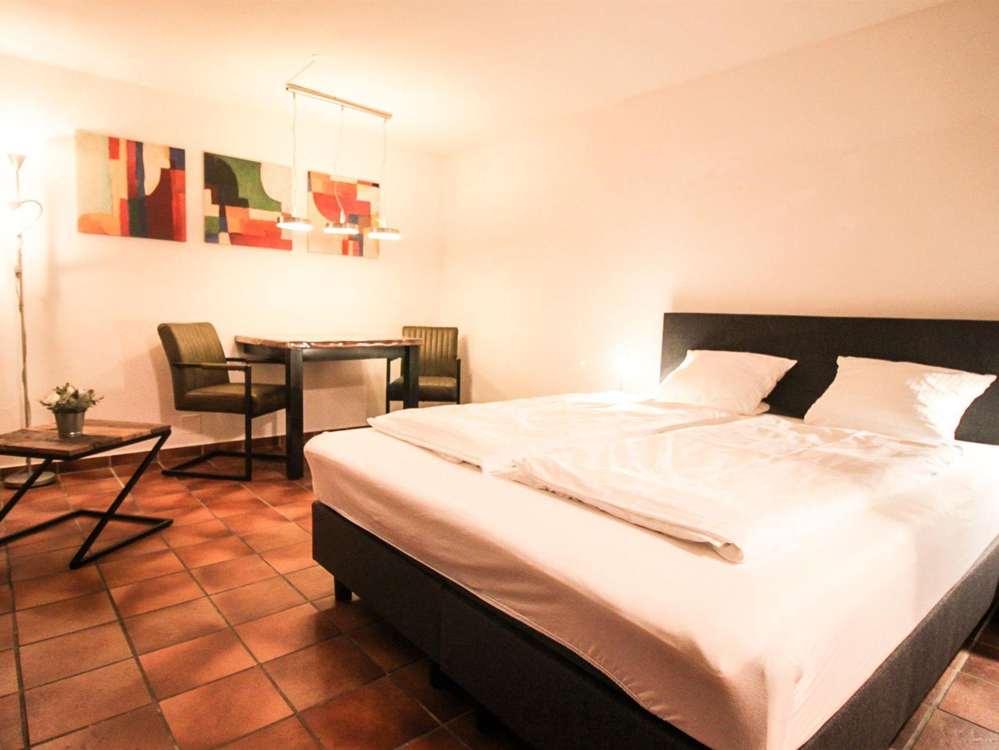 In unserem Studio Apartment übernachten in der Regel zwei Personen. Reist du mit Nachwuchs an, können wir diesen gerne auf Anfrage einbuchen. Über den Balkon gelangt man direkt in den Garten, wo man in unseren Liegen am Aussichtspool die ein oder andere Sonnenstunde genießen kann. Natürlich bieten wir für unsere Gäste kostenfreies Parken und free Wifi.