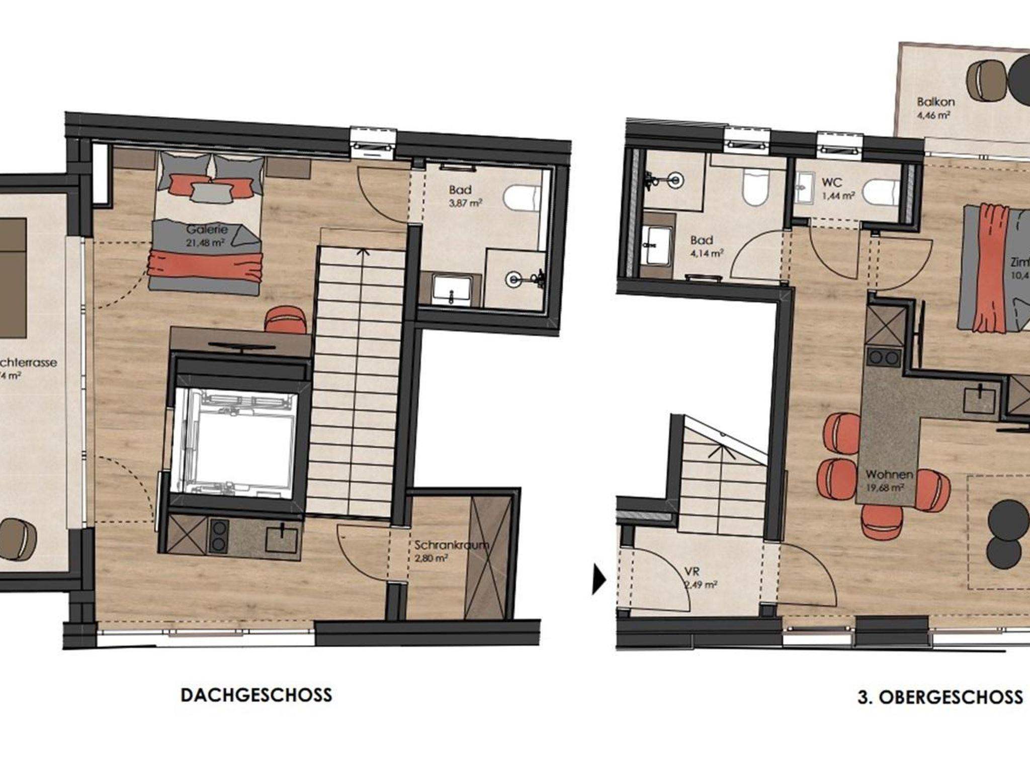 Das Apartment ist geschmackvoll eingerichtet und verfügt über 2 gemütliche Schlafzimmer sowie 2 Badezimmer. Das Wohnzimmer bietet ein ausziehbares Schlafsofa und einen tollen Blick auf die umliegende Bergwelt. Die 2 vorhandenen Küchen sind beide komplett ausgestattete und laden zum Zubereiten köstlicher Mahlzeiten ein. Eine südseitige Sonnenterrasse mit ca. 17m² bietet die Möglichkeit, die frische Bergluft zu genießen und die Schönheit der Umgebung zu bewundern.