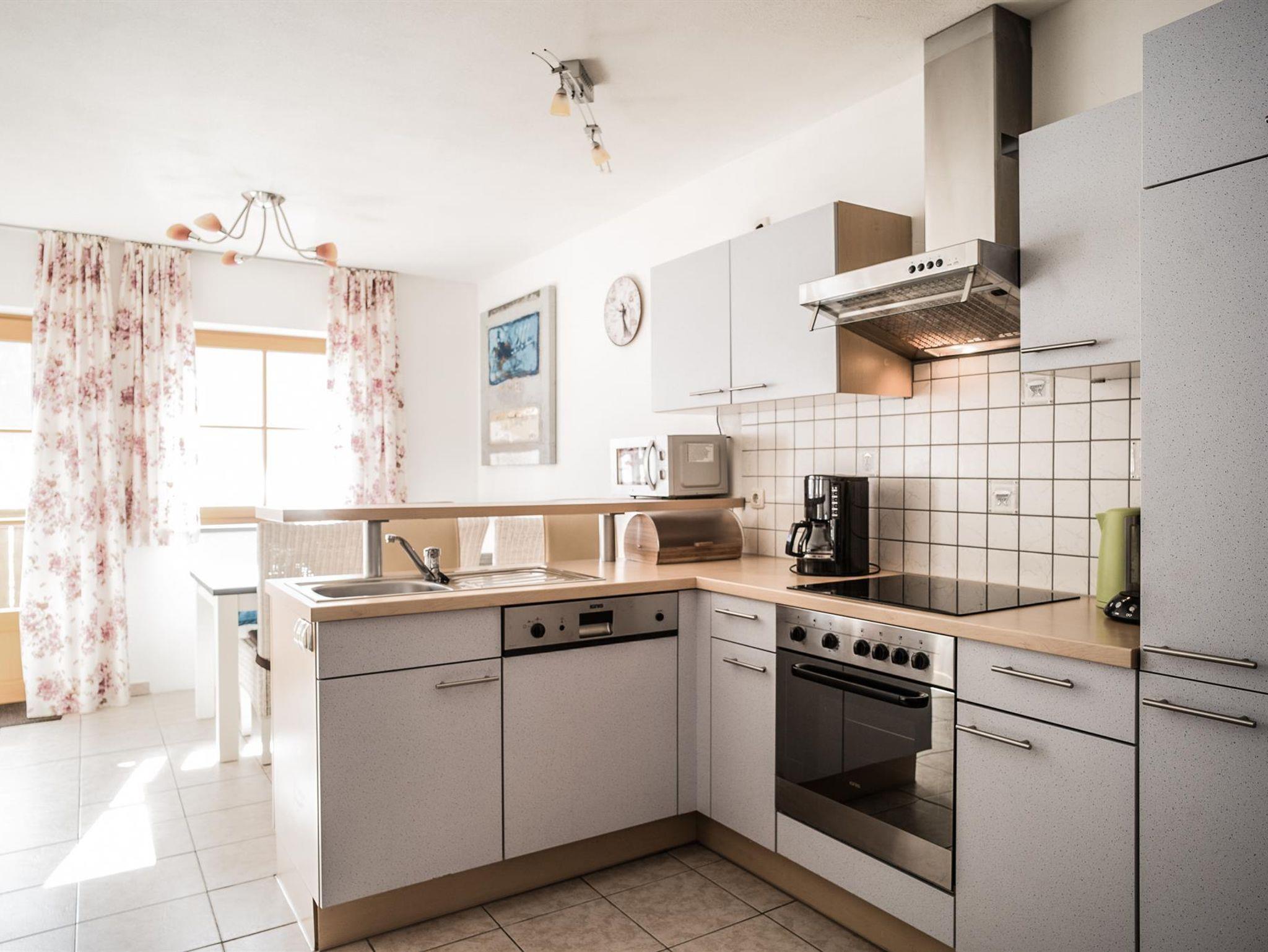 Die Küche ist ebenfalls voll ausgestattet: Ein Kochfeld mit 4 Kochstellen, eine Kühl-Gefrierkombination, eine Mikrowelle, ein Backofen, eine Spülmaschine, sowie Geschirr/Besteck und Kochutensilien mit einer Kaffeemaschine, einen Toaster und einem Wasserkocher. Die Unterkunft verfügt weiter über eine allgemeine Waschmaschine, sowie ein Bügeleisen/-brett.