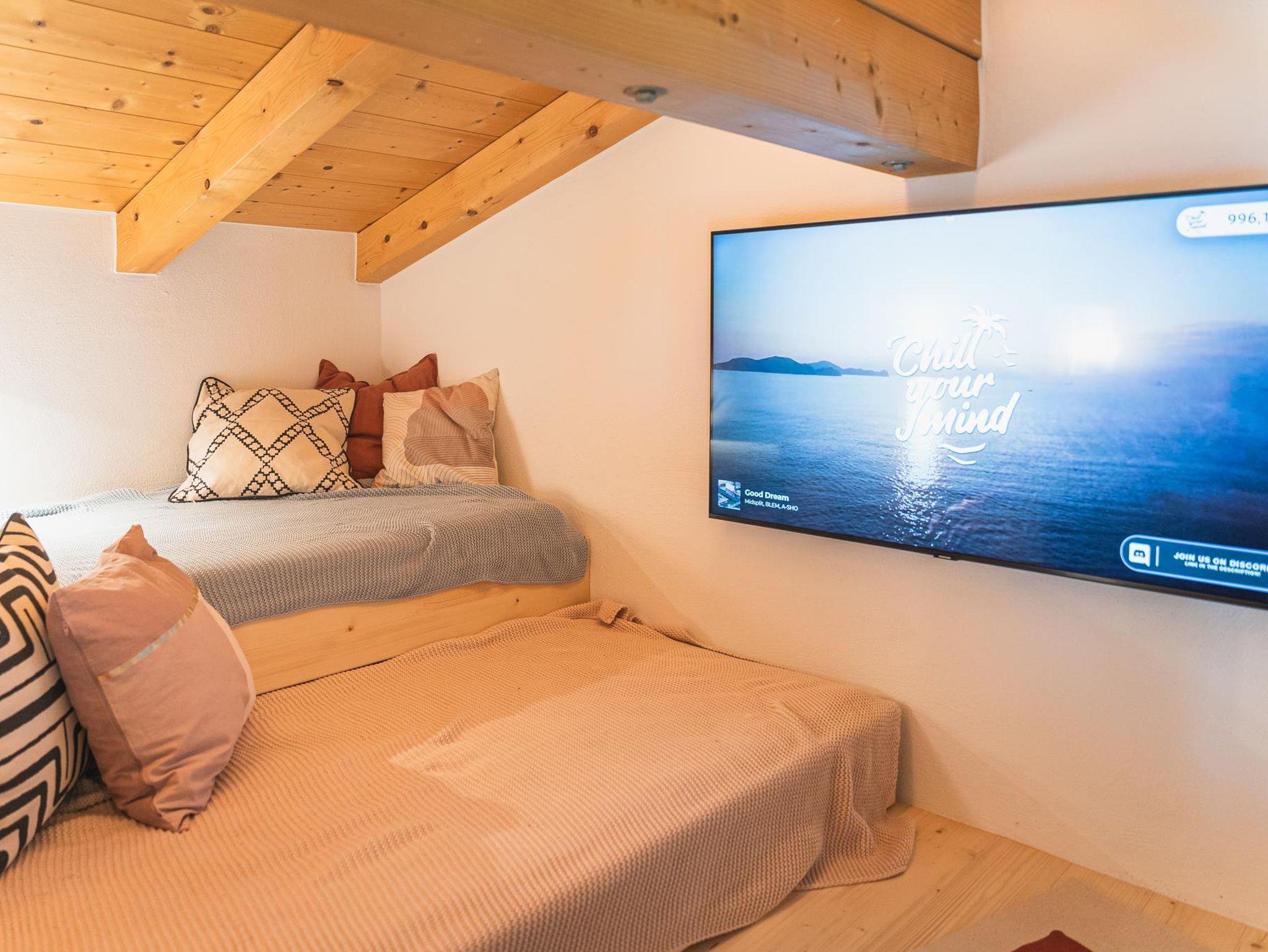 Loftfeeling und das in einem Chalet? Unsere Alma bietet neben zwei Schlafzimmern auch über einen gemütlichen Loftbereich mit Schlafmöglichkeit für eine Person oder als gemütlichen Wohnbereich mit Flat TV. Gesamt finden also 5 Personen perfekt Platz im Chalet. Es verfügt über ein Badezimmer, ein separates WC und vor allem viel Gemütlichkeit. Die Küche ist top eingerichtet mit E-Herd, Kaffemaschinen, Wasserkocher, Toaster und und und. Der dänische Ofen sorgt für das gewisse extra und bei Sonnenschein erwartet euch eine super schöne Sonnenterrasse. Unser Alma ist super für Familien und Freunde geeignet.