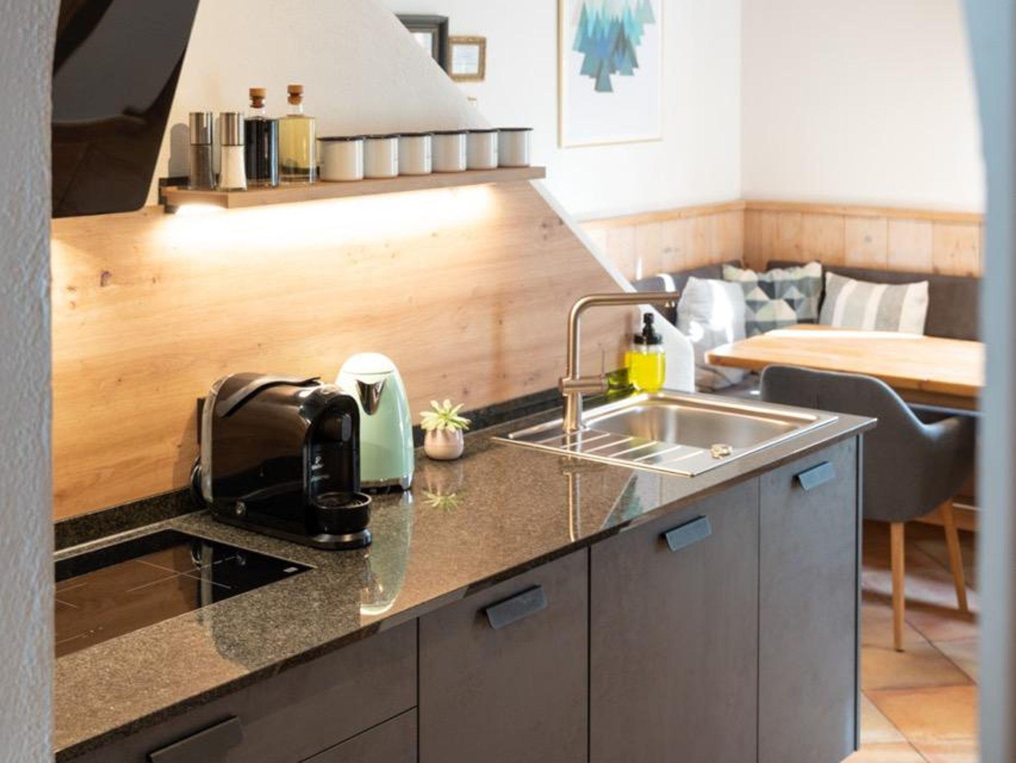 Ihr befindet euch quasi mitten im Blumen- und Kräutergarten von den Dorfchalets. Also zumindestens die Terrasse und der schöne Ausblick unserer Berta. Mit 3 Schlafzimmern mit je einem Doppelbett, 2 Bädern und 2 separaten Toiletten und das auf 2 Etagen ist für genügend Rückzugsort für bis zu 6 Personen gesorgt. Die im Landhausstil erstrahlende Küche bietet einen E-Herd, Kaffeemaschinen, Toaster, Wasserkocher, Geschirrspüler und noch vieles mehr. Neben einem großen Esstisch und einen Dänischen Ofen im Wohnbereich gibt's als Besonderheit für euch auch noch einen Schreibtisch, falls die Arbeit dann doch einmal ruft.